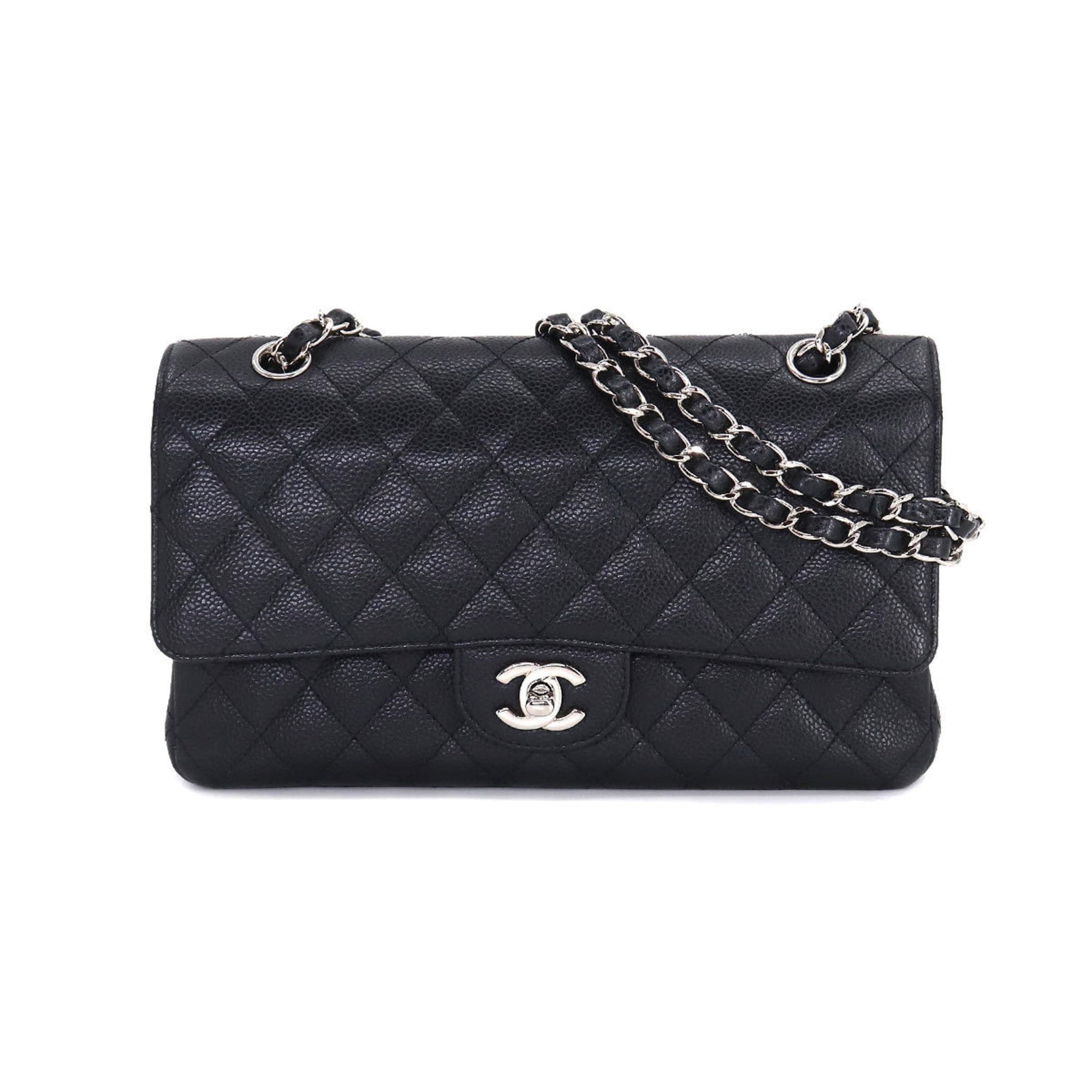 Chanel Matelasse 25 Chain Shoulder Bag Caviar Skin Black A01112 Silver Hardware Coco Mark