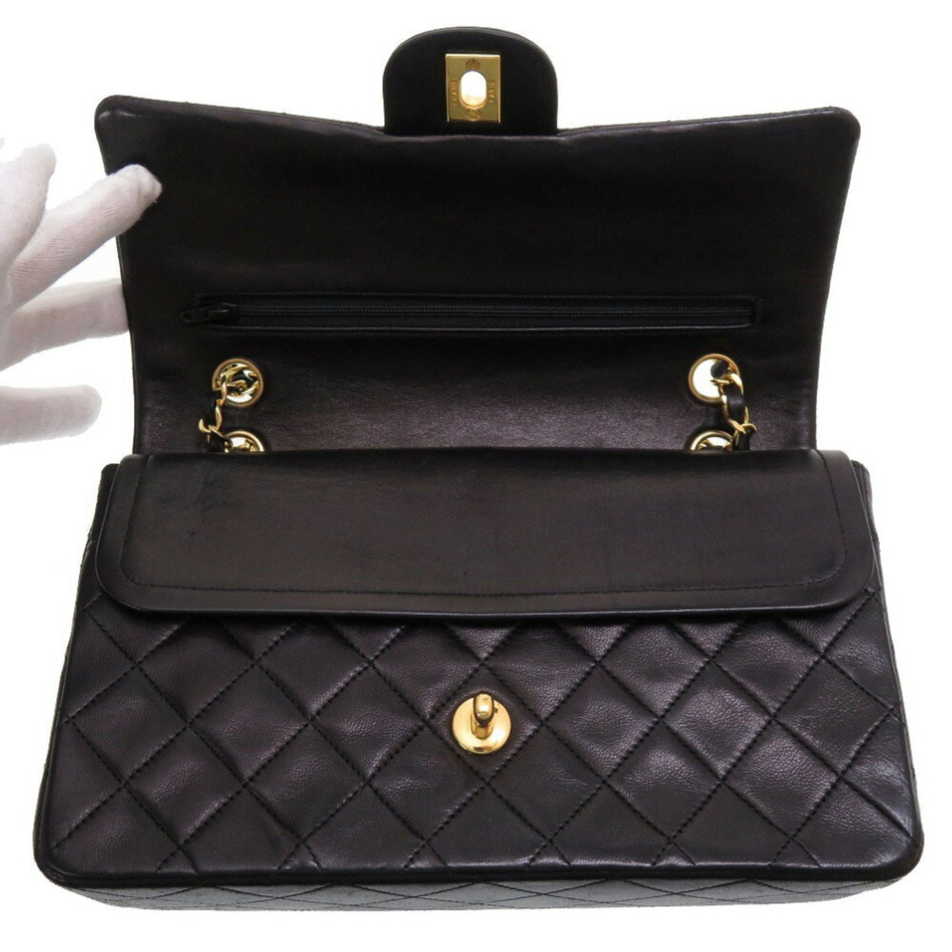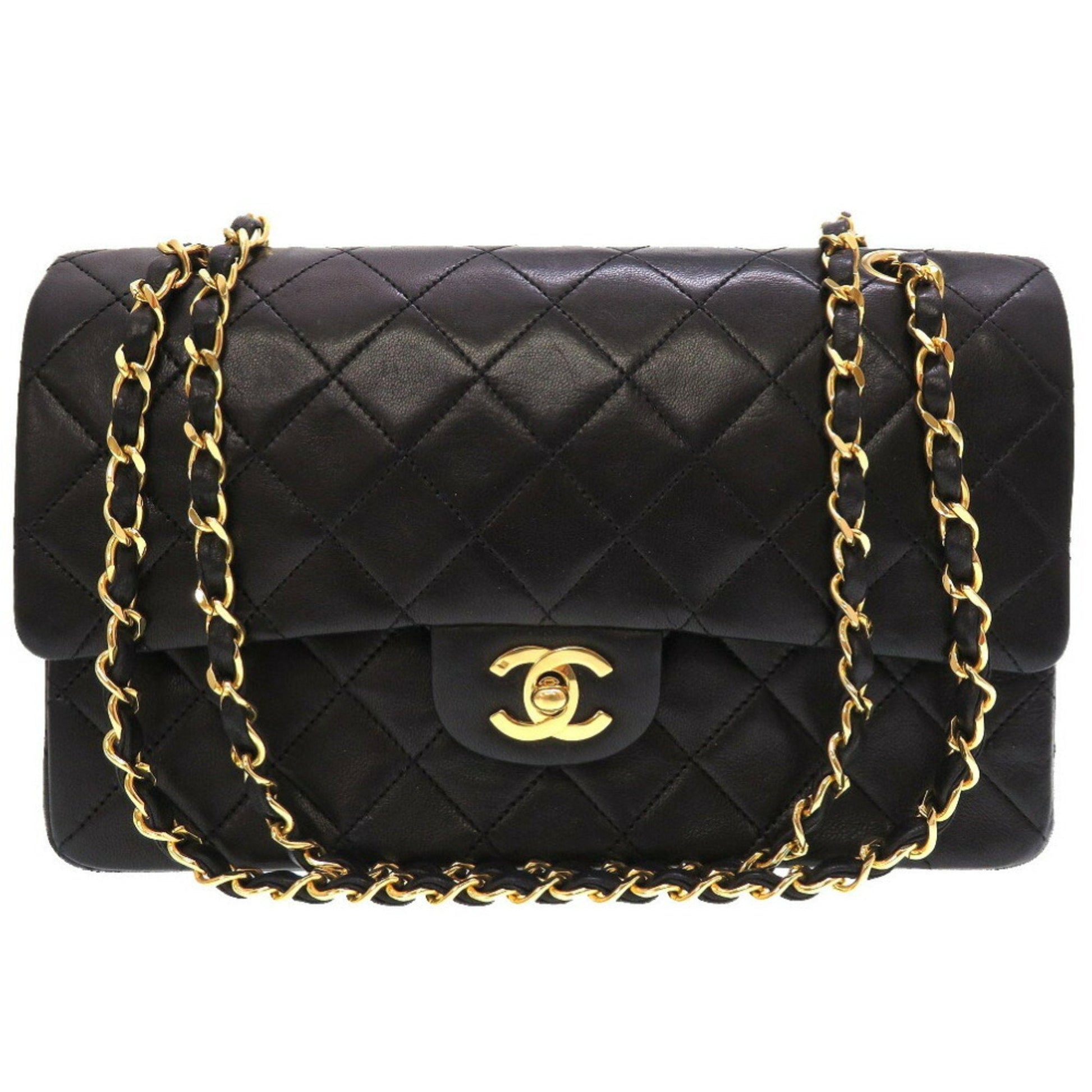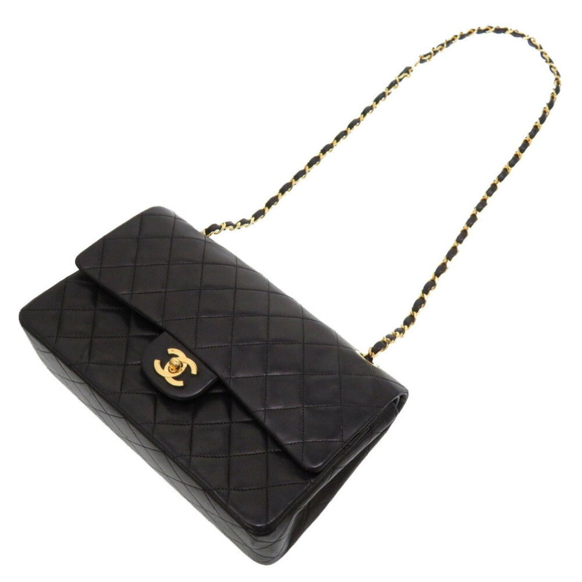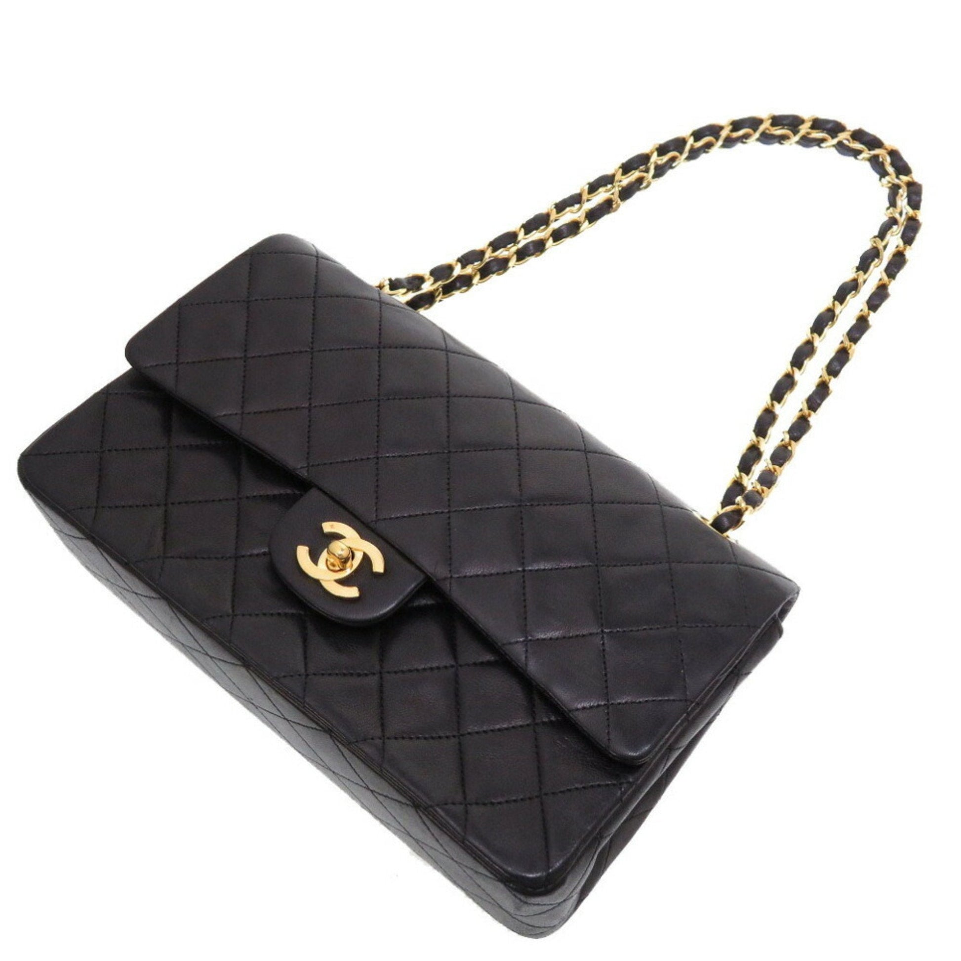 Chanel Matelasse 25 Lambskin Black 0 Series W Flap Gold Chain Shoulder Bag Double Lid