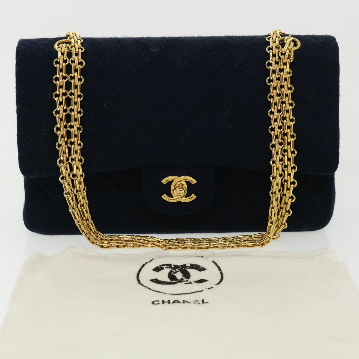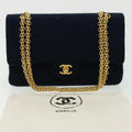 Chanel Matelasse 25 Shoulder Bag cotton Black CC Auth 33162