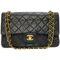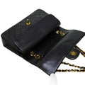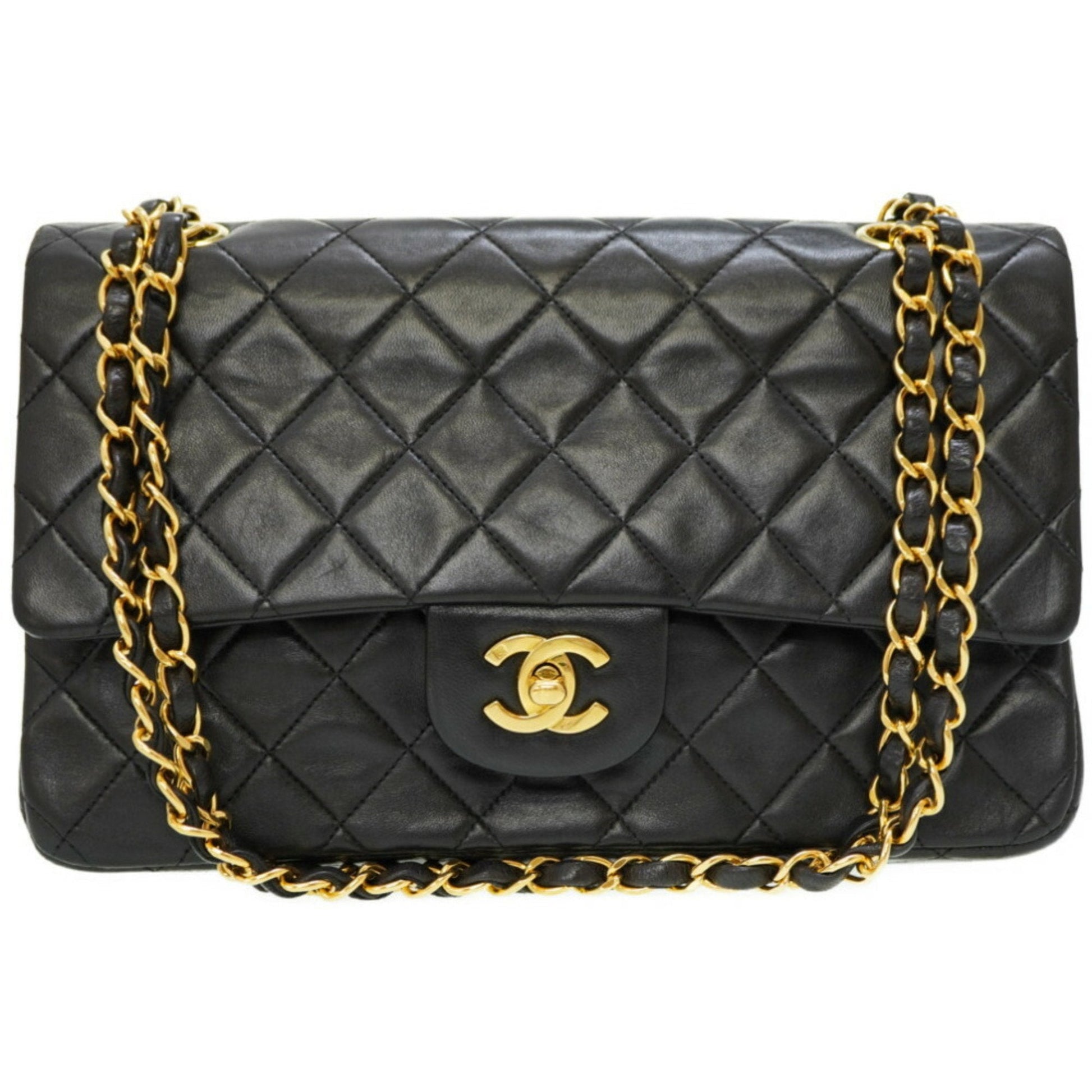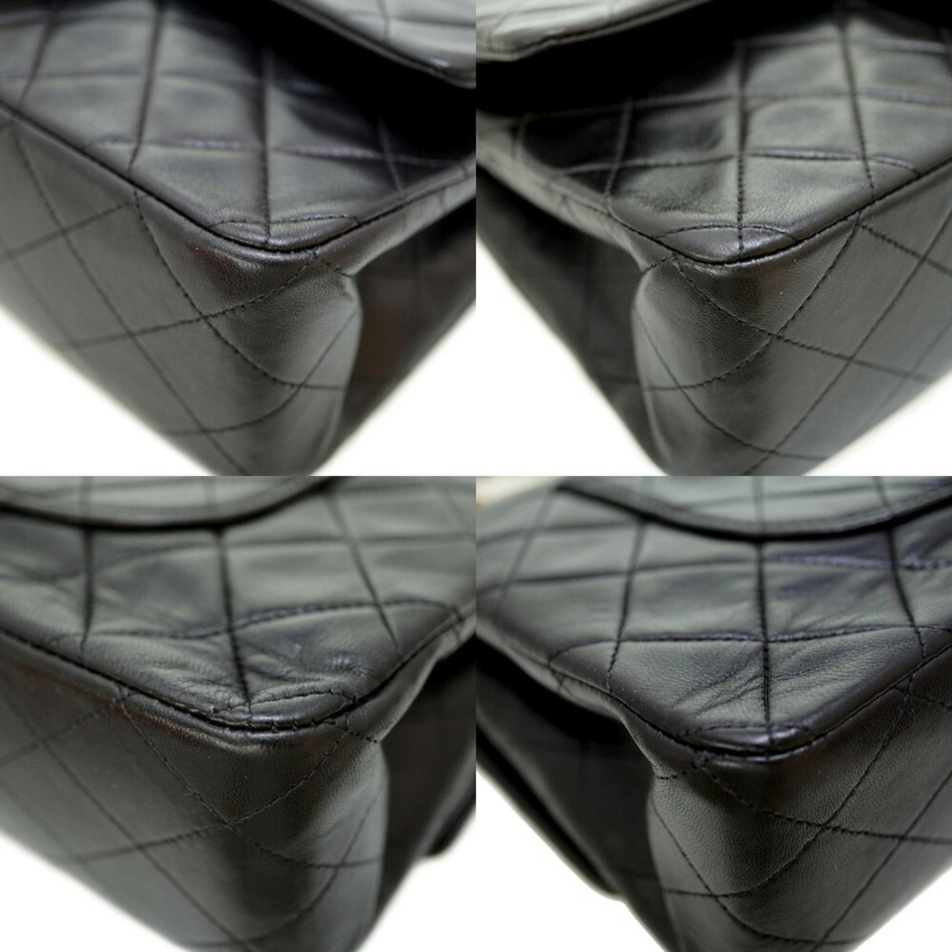 Chanel Matelasse 25 W Flap Chain Shoulder Bag Lambskin Leather Black