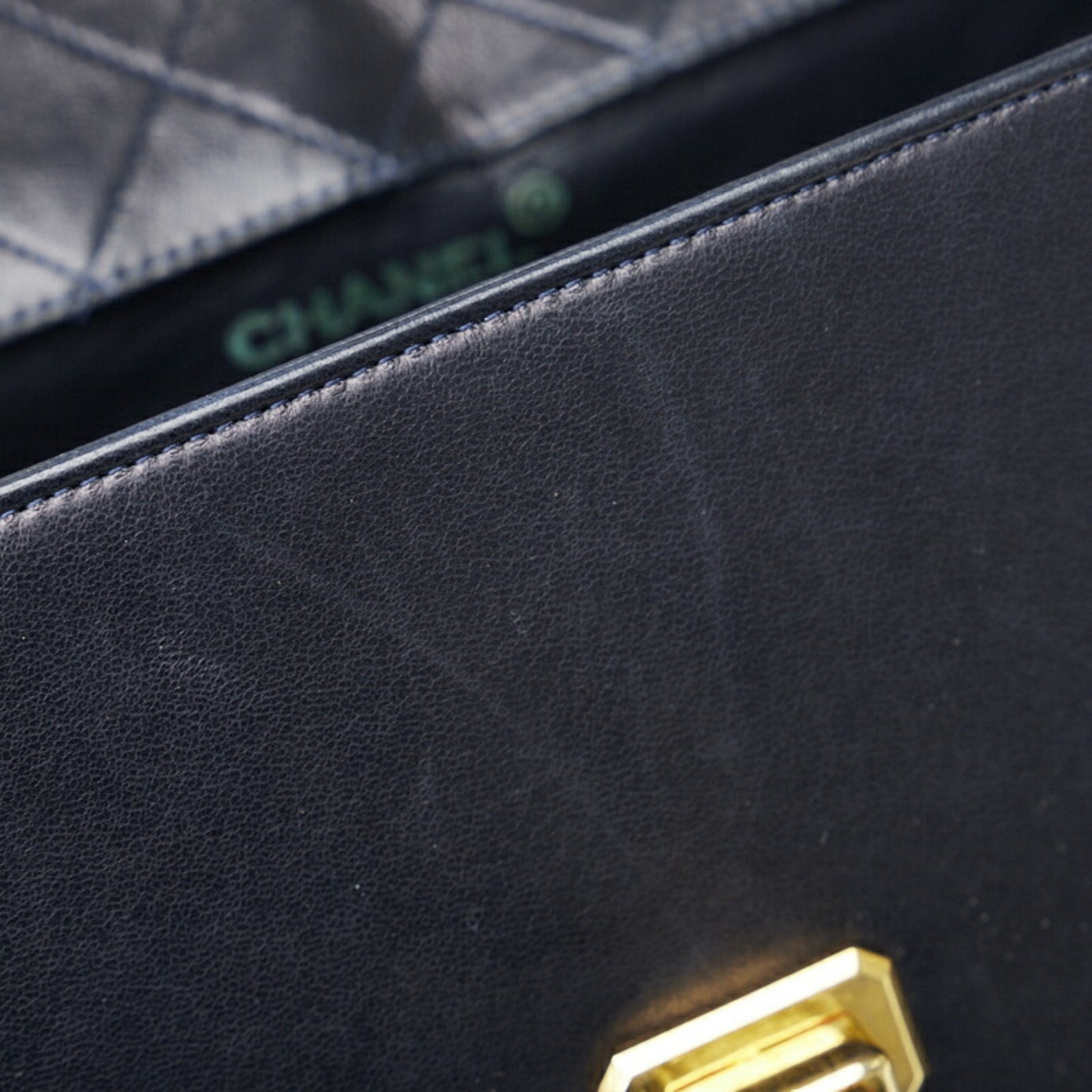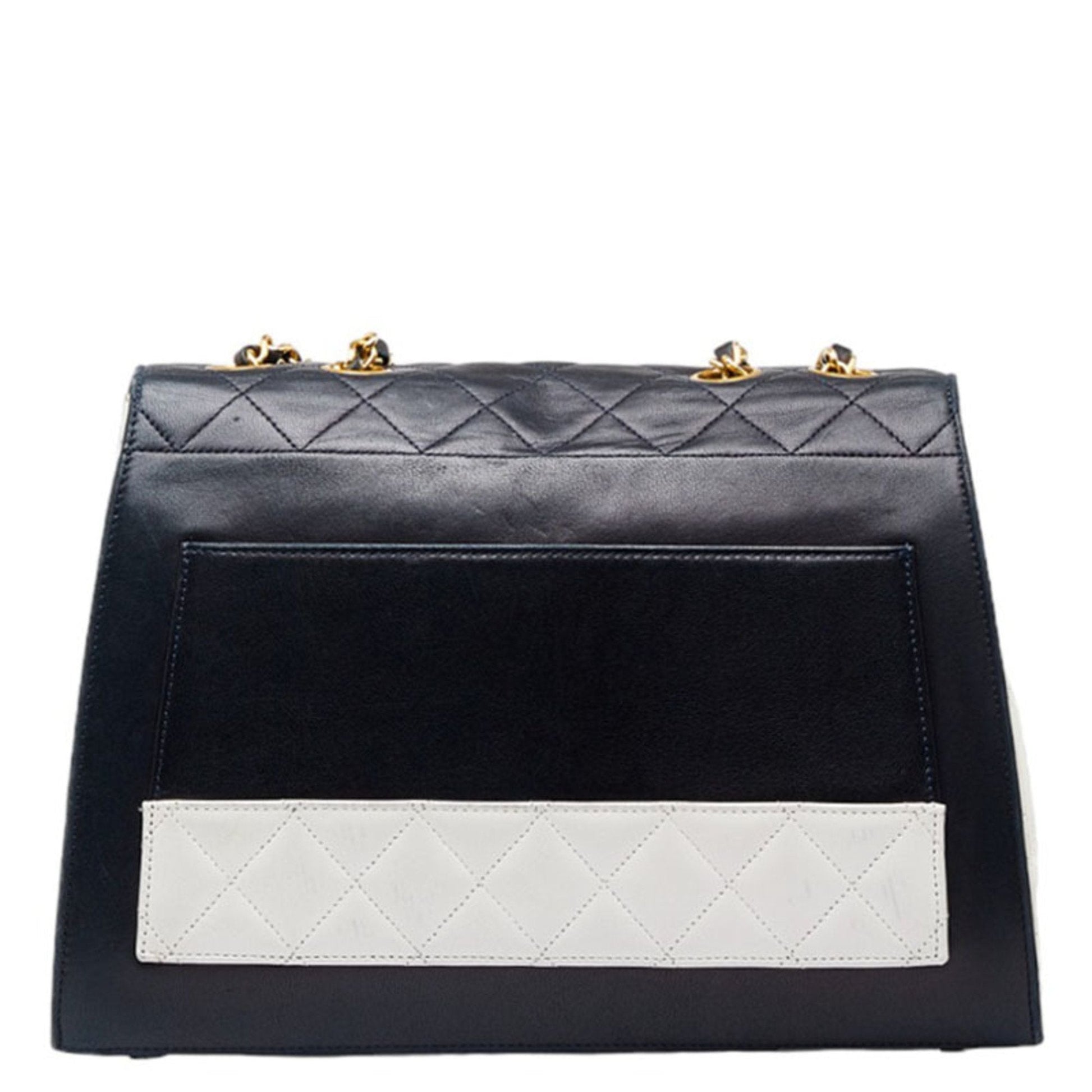 Chanel matelasse bicolor chain shoulder Bag navy white lambskin ladies