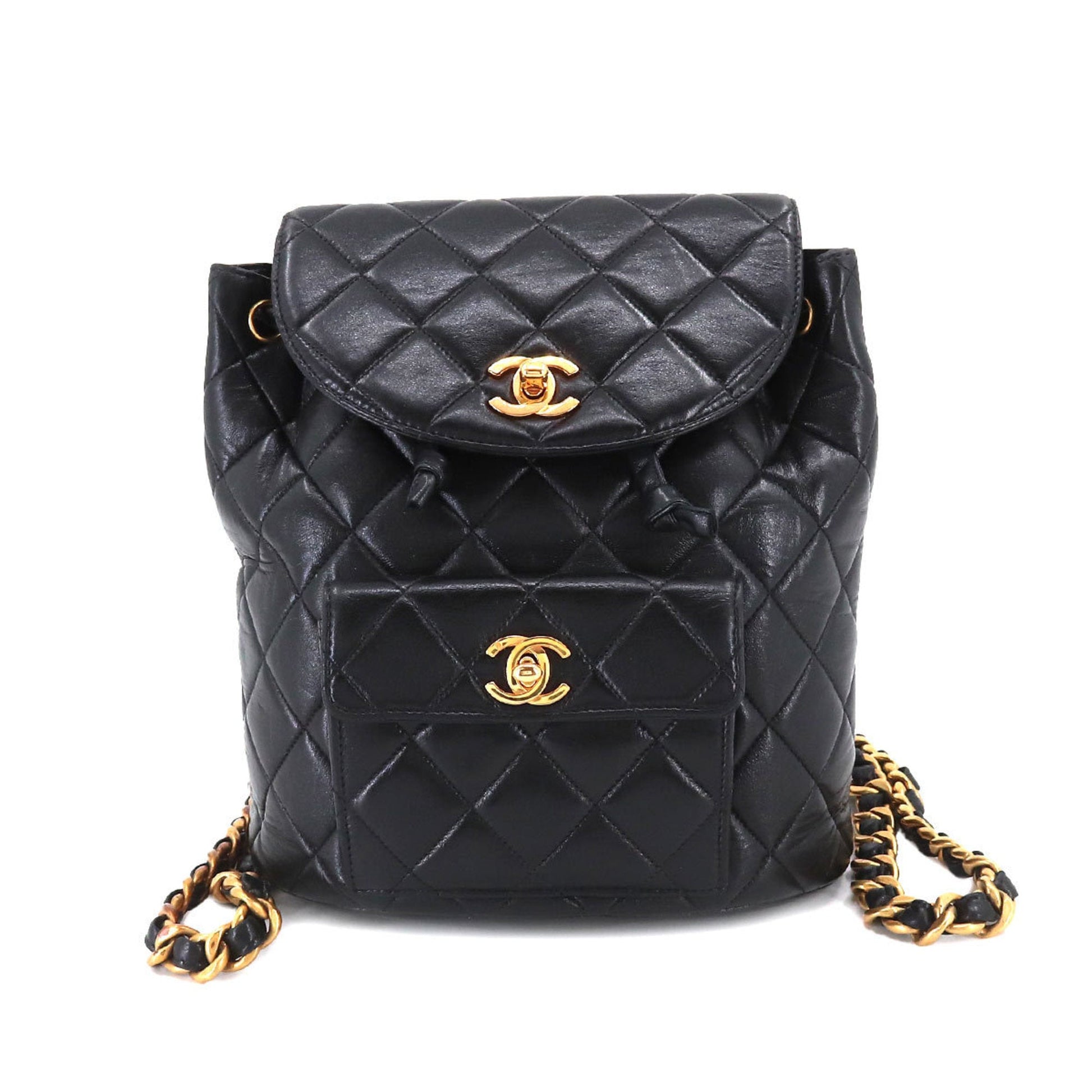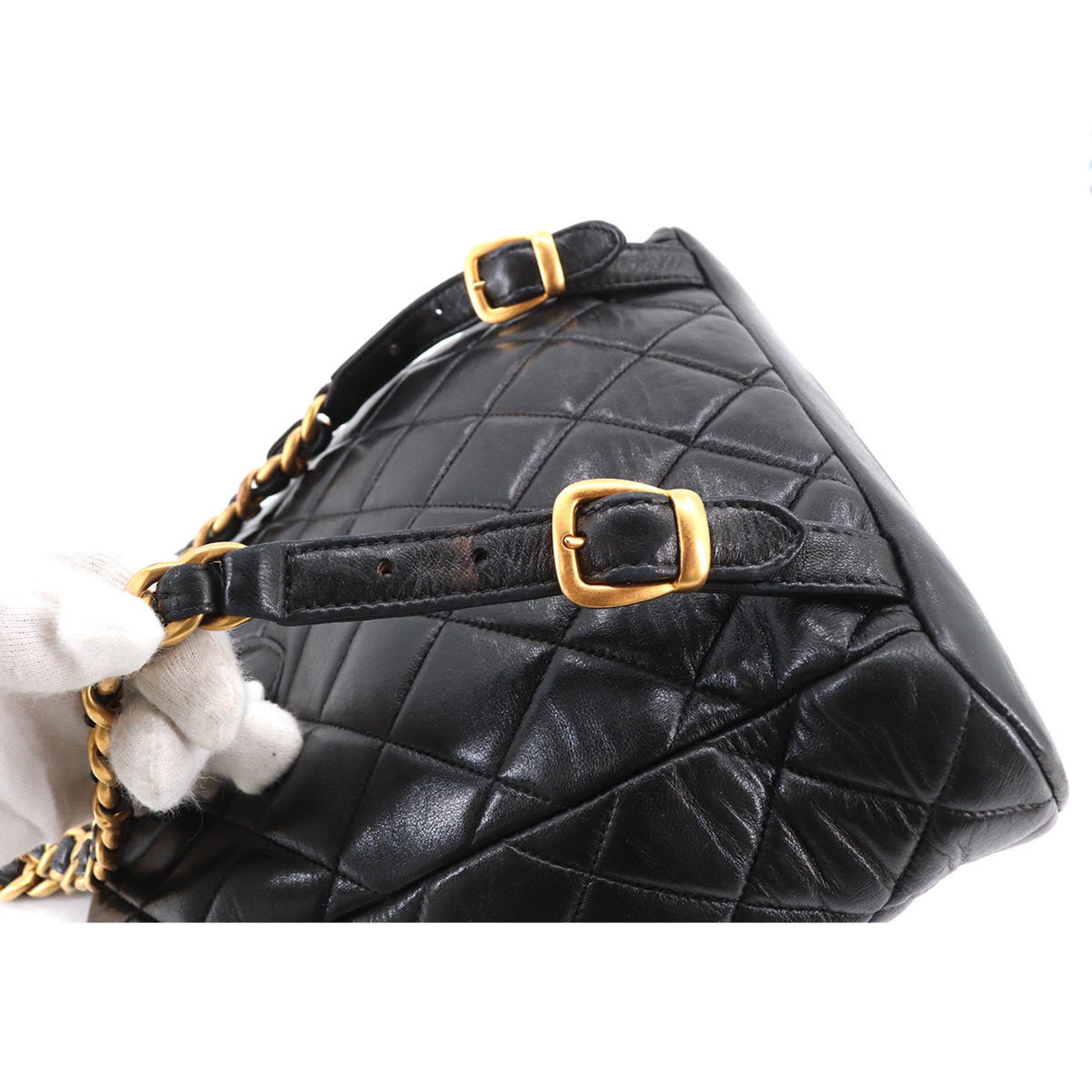 Chanel Matelasse Chain Backpack Rucksack Leather Black Vintage Gold Hardware duma