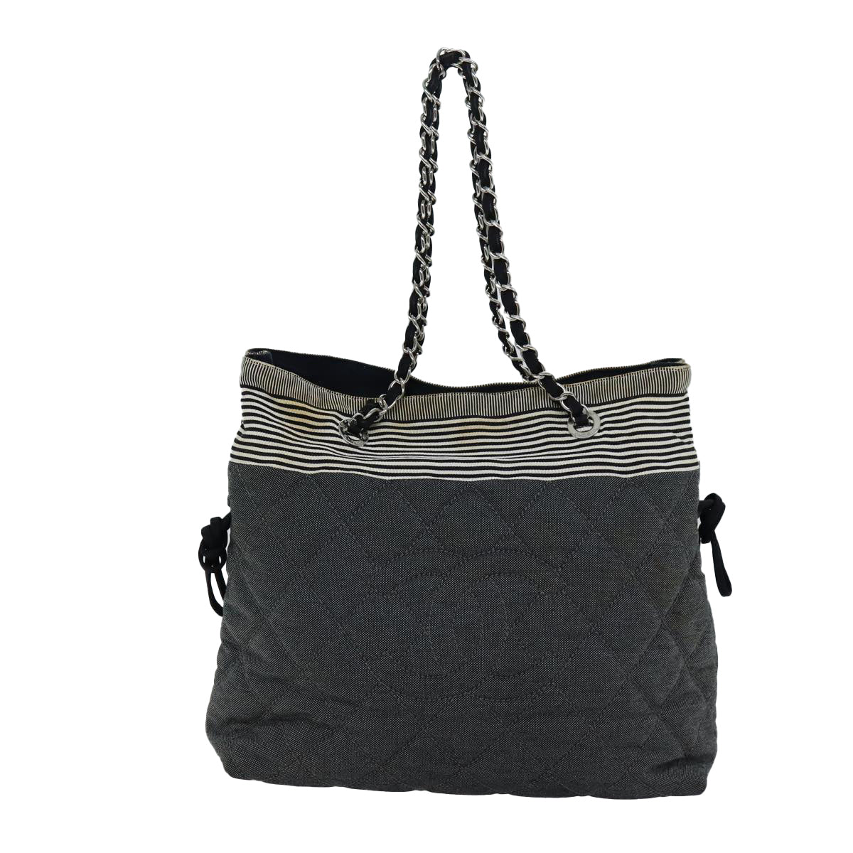 CHANEL Matelasse Chain COCO Mark Tote Bag Canvas Gray CC Auth ac2943