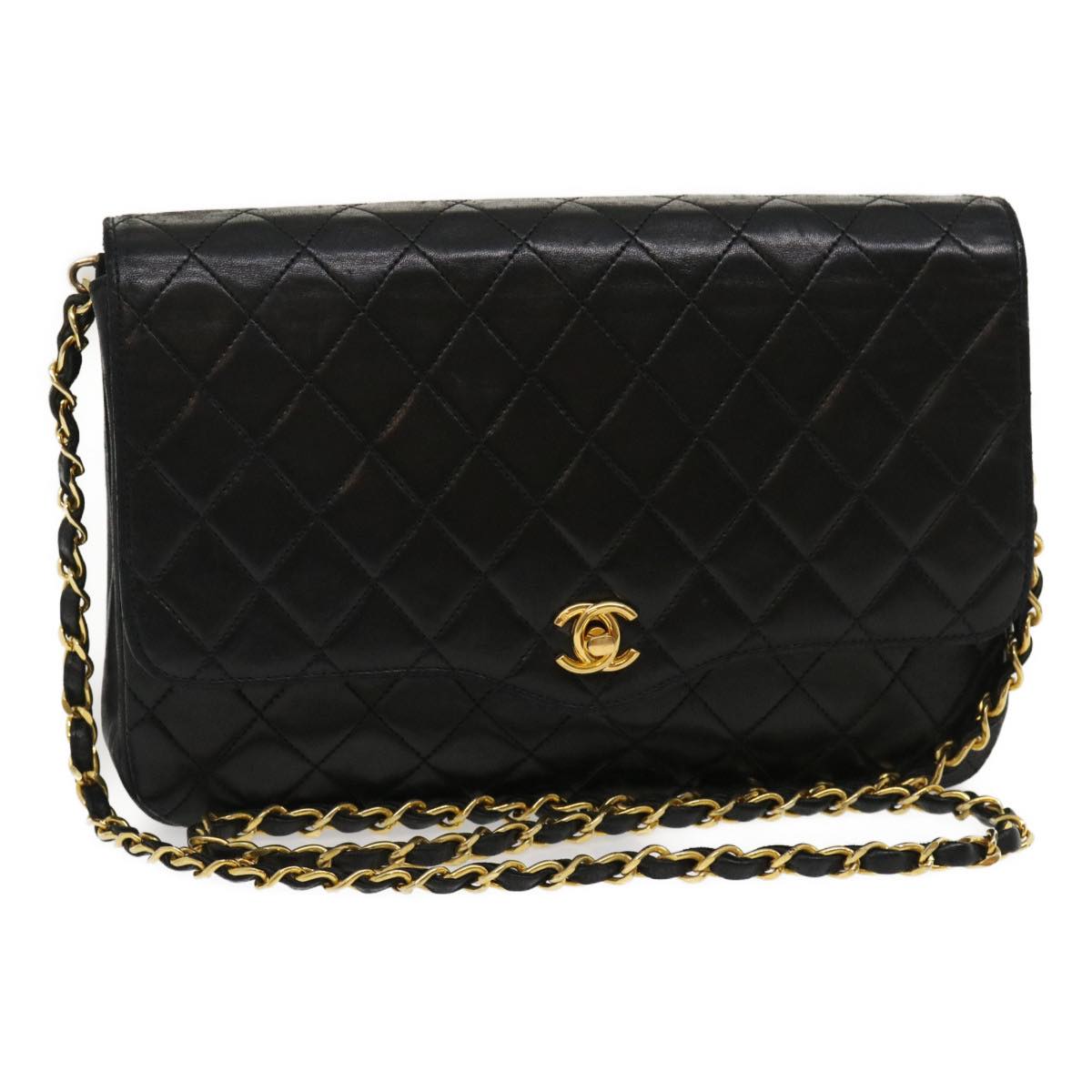 Chanel Matelasse Chain Flap Shoulder Bag Lamb Skin Black CC bs1447A