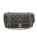 Chanel Matelasse Chain Flap Shoulder Bag Lamb Skin Black Gold CC 27027A