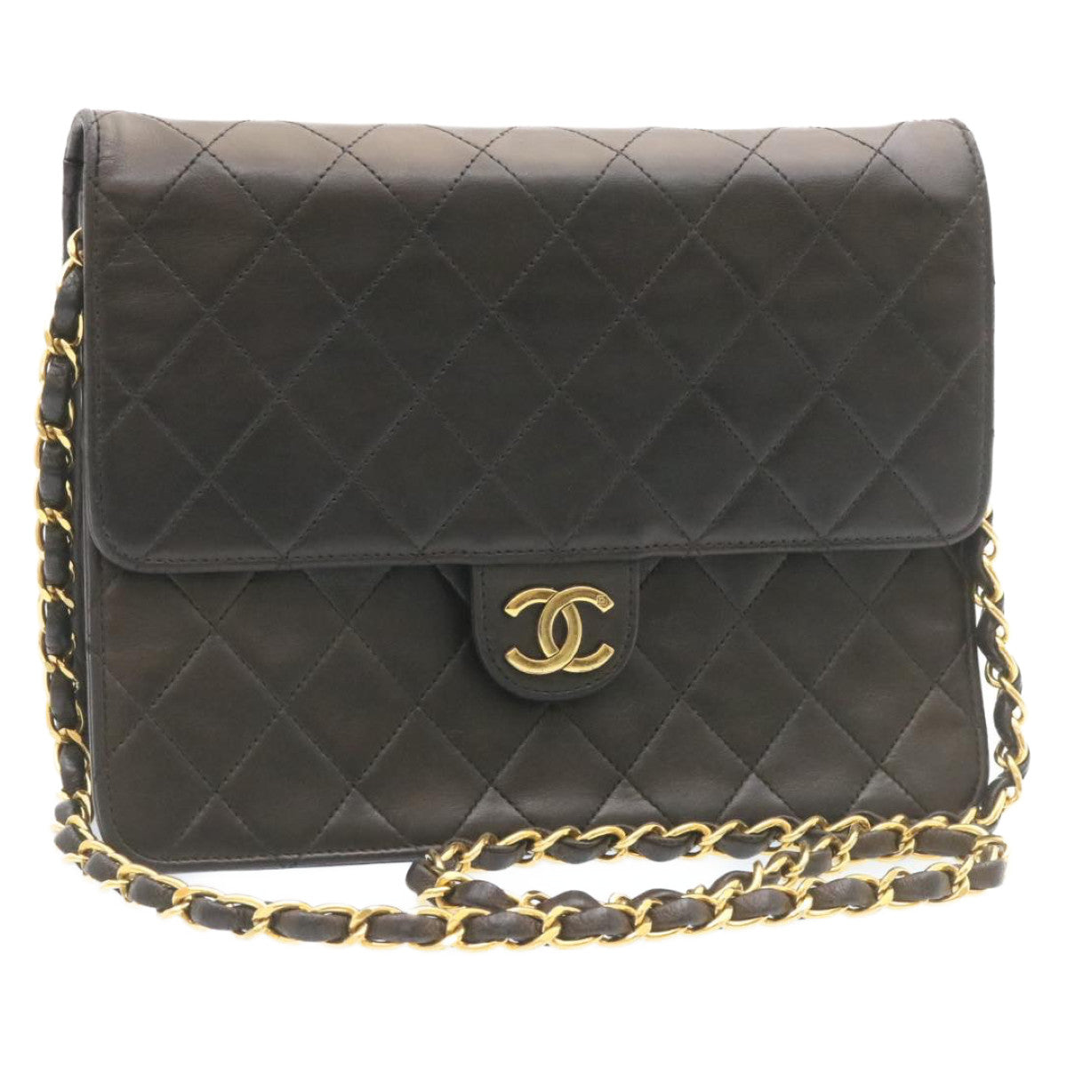 Chanel Matelasse Chain Flap Shoulder Bag Lamb Skin Black Gold CC am1708gA