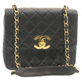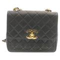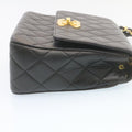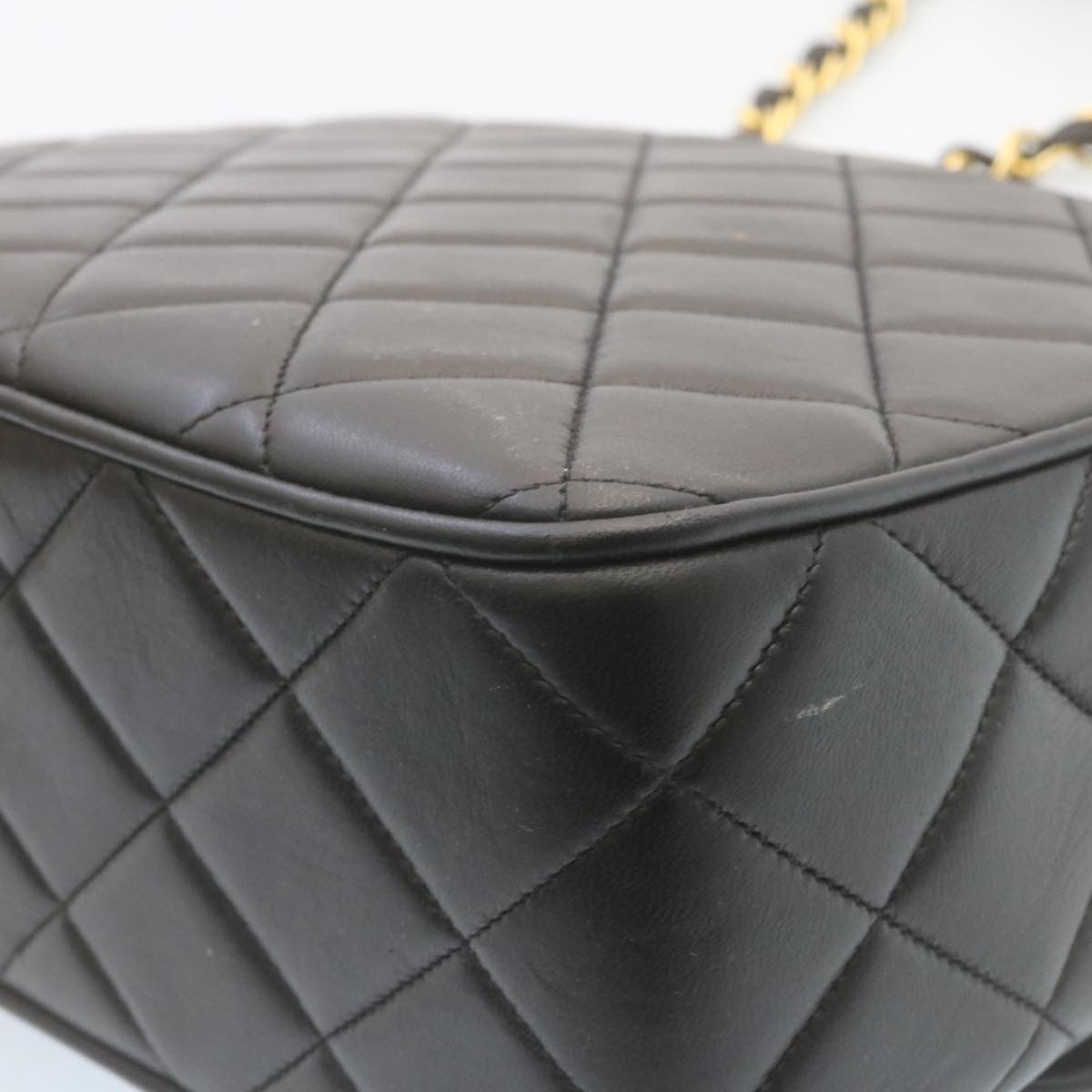 Chanel Matelasse Chain Flap Shoulder Bag Lamb Skin Black Gold CC Auth 28632A