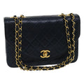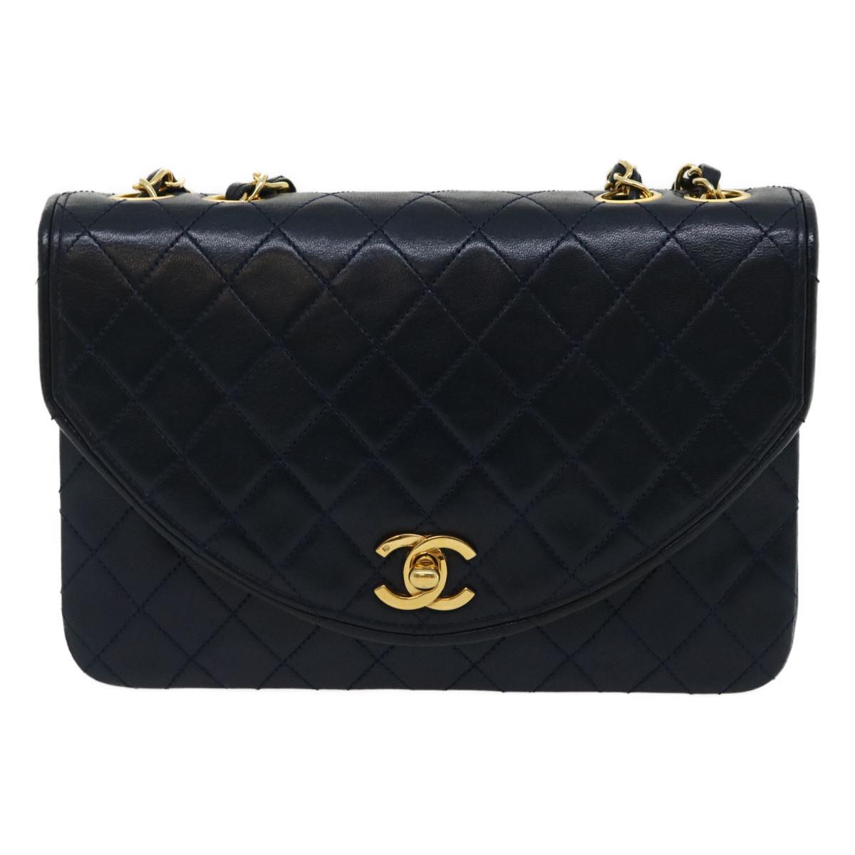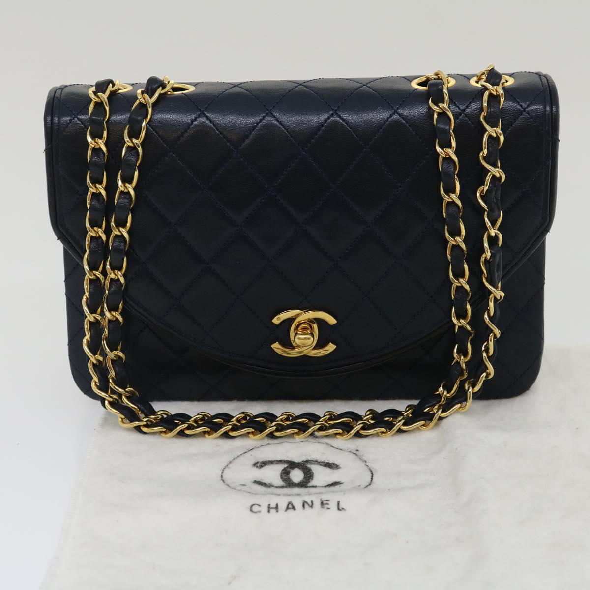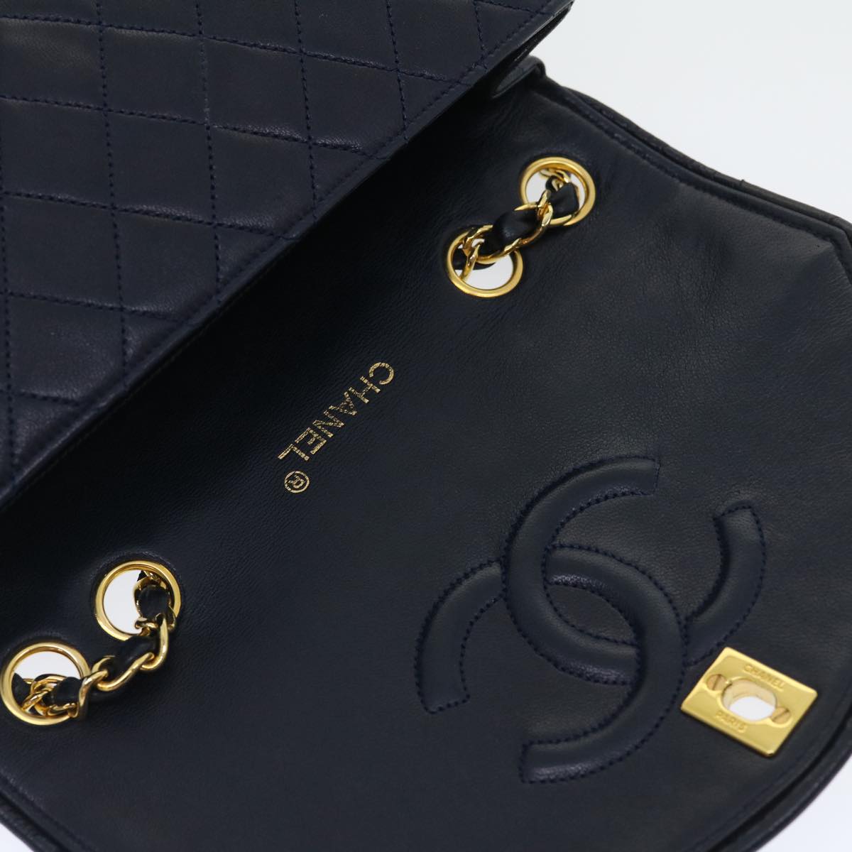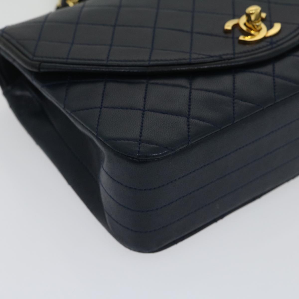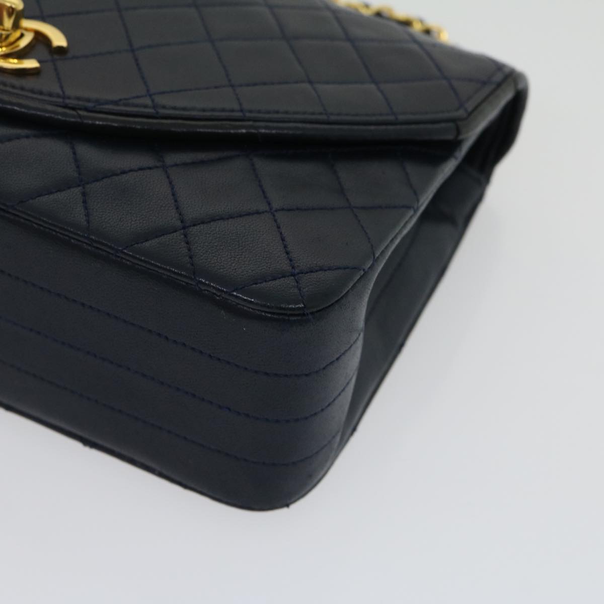 Chanel Matelasse Chain Flap Shoulder Bag Lamb Skin Navy Gold CC am2602gA