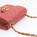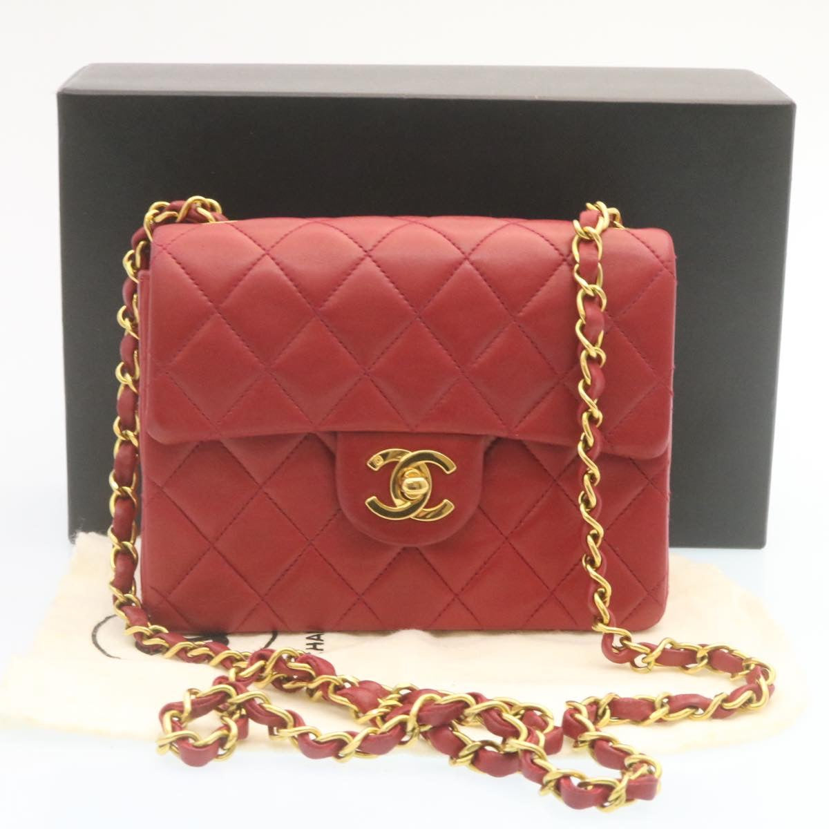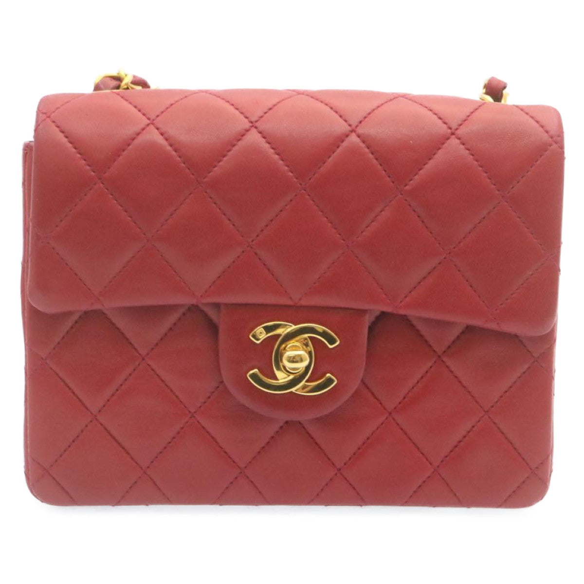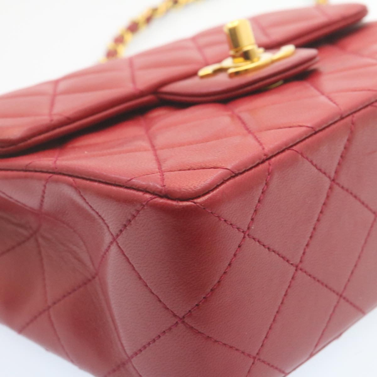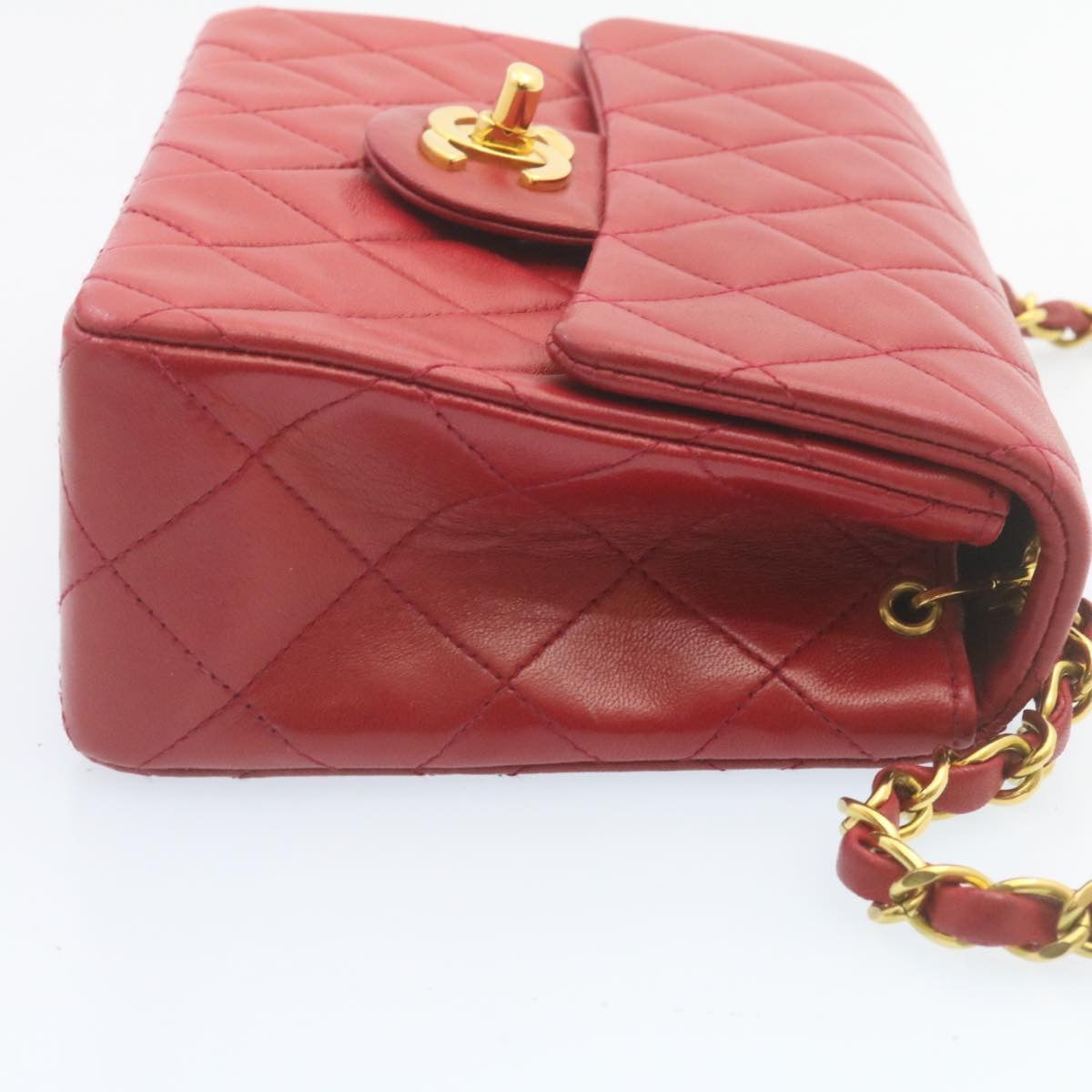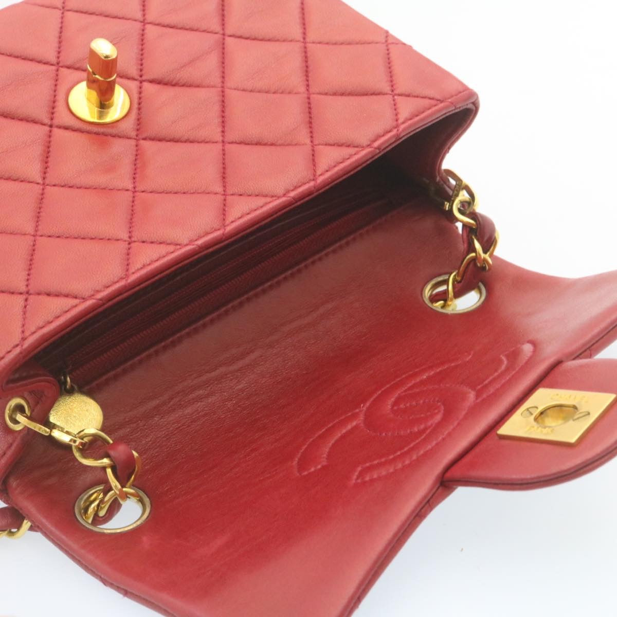 Chanel Matelasse Chain Flap Shoulder Bag Lamb Skin Turn Lock Red CC Auth 28661A