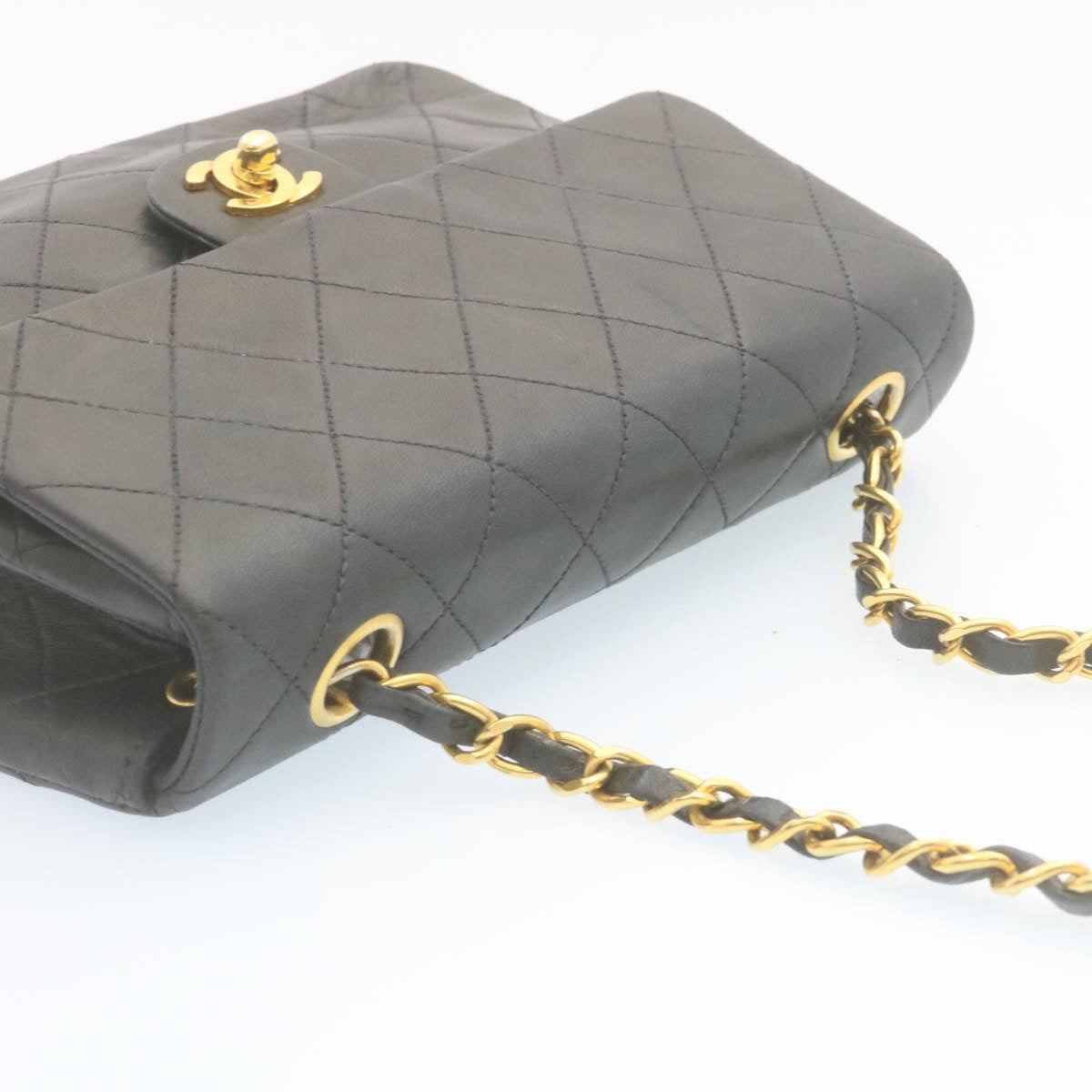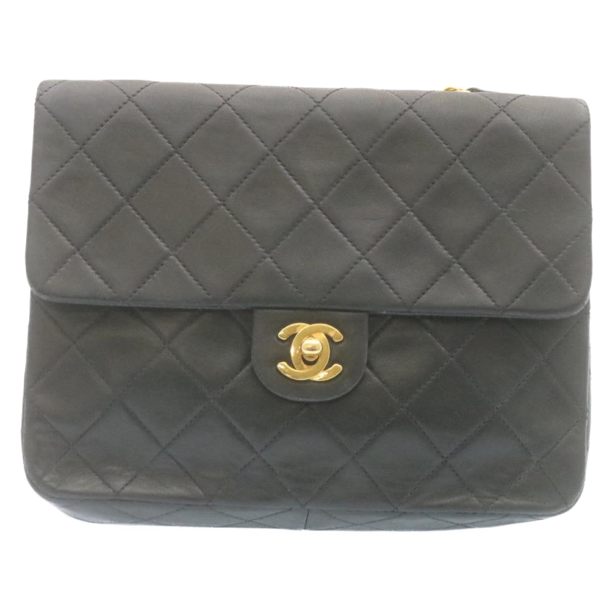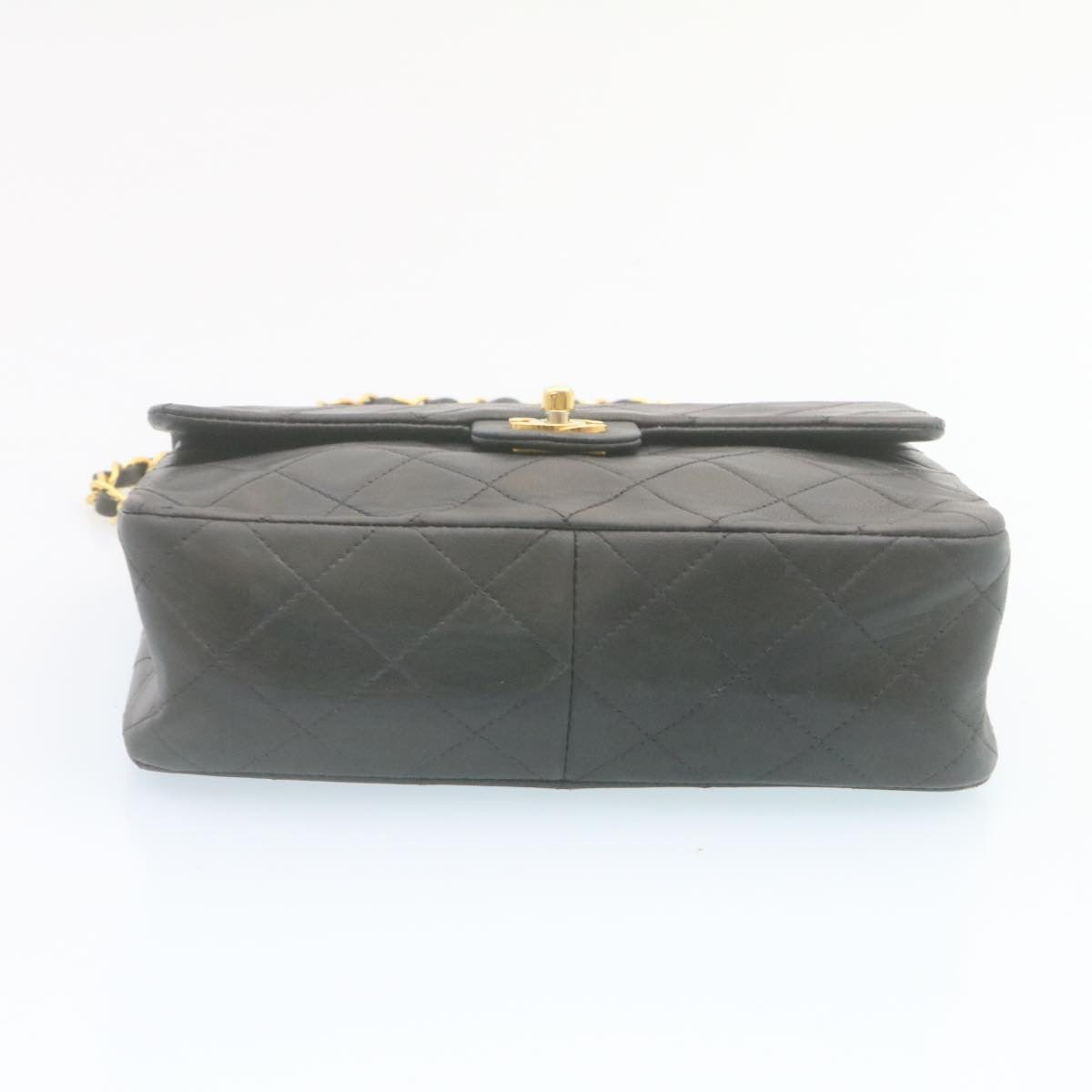 Chanel Matelasse Chain Flap Turn Lock Shoulder Bag Lamb Skin Black 34659A