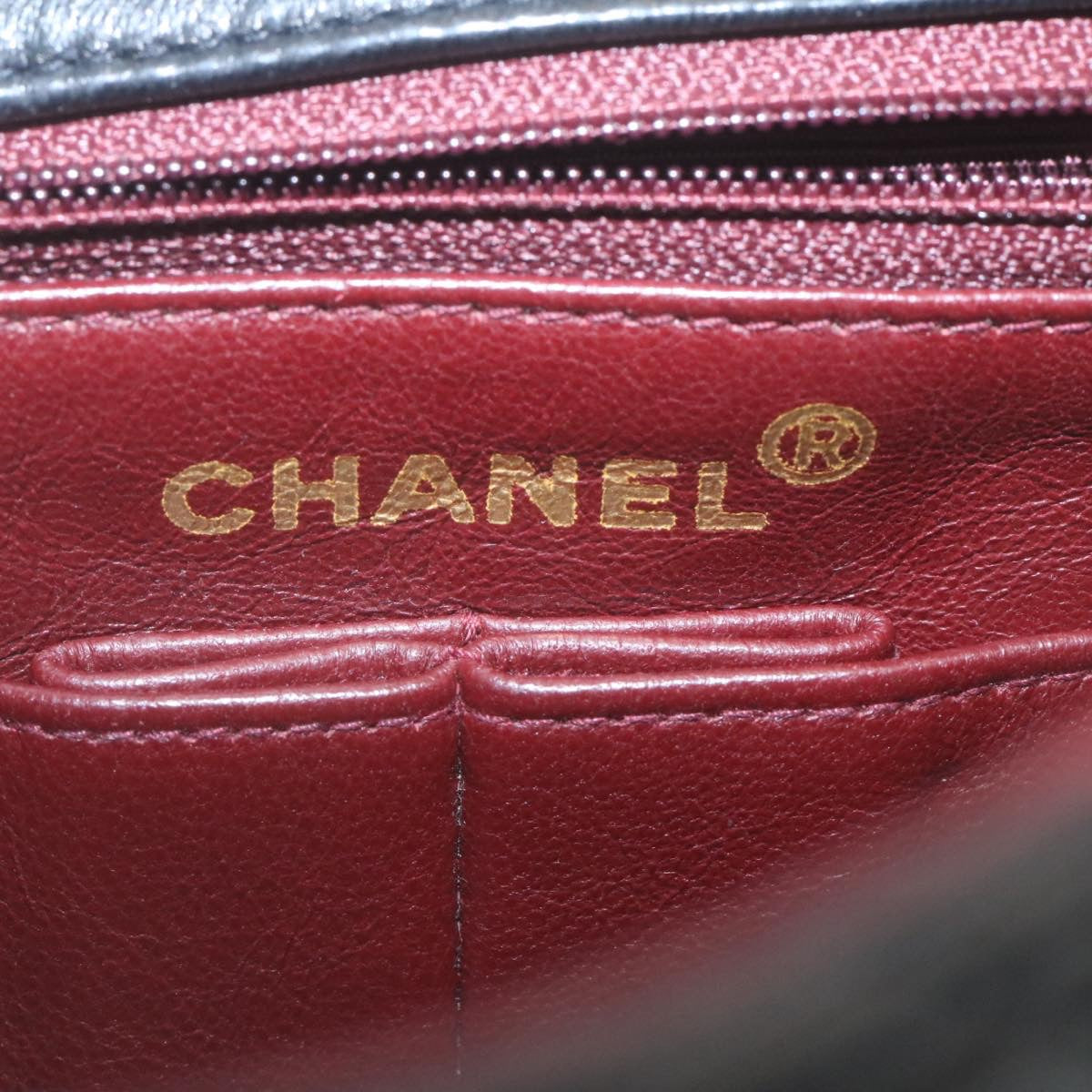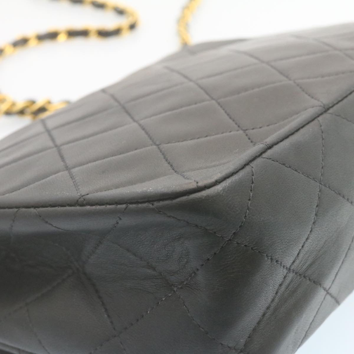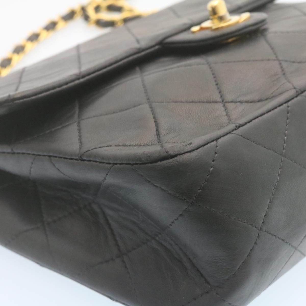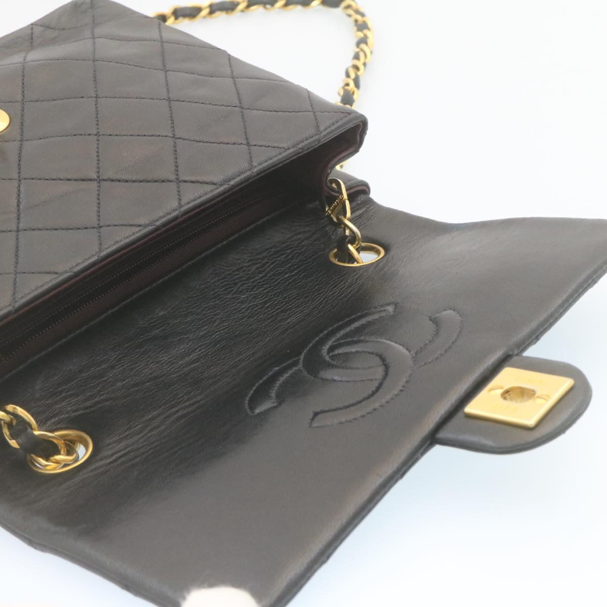 Chanel Matelasse Chain Flap Turn Lock Shoulder Bag Lamb Skin Black 34659A