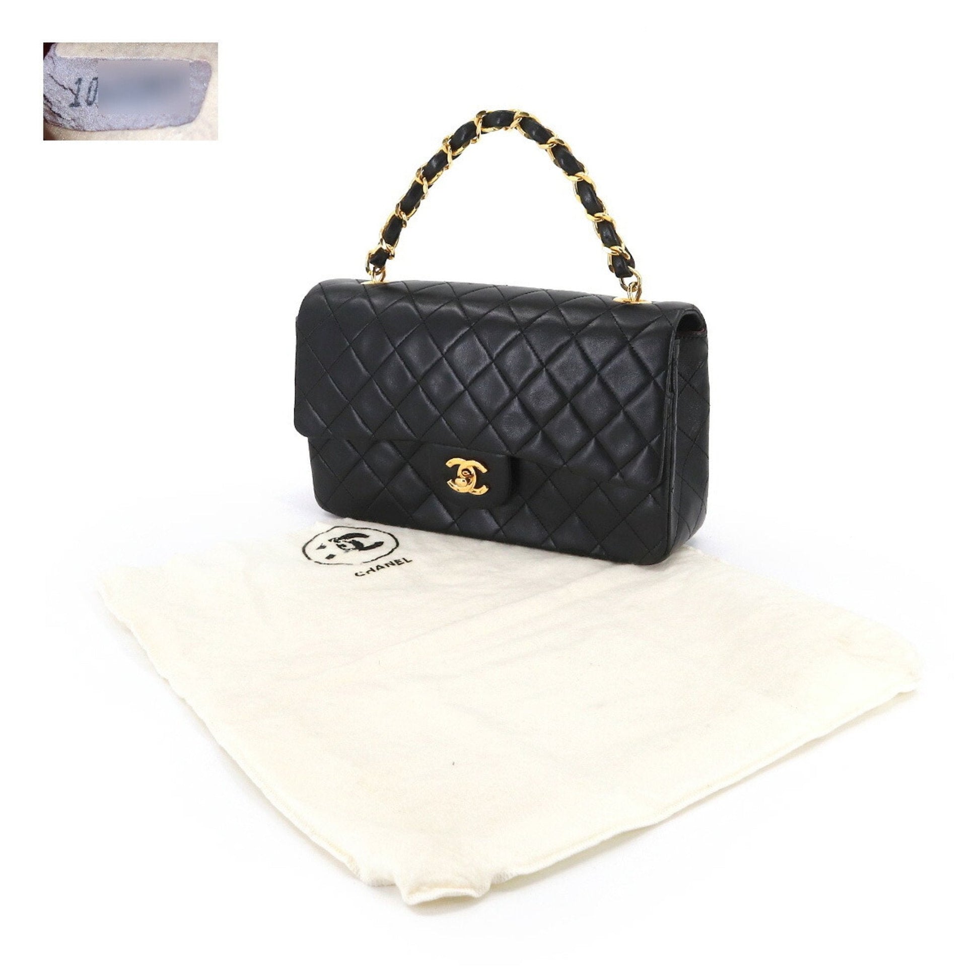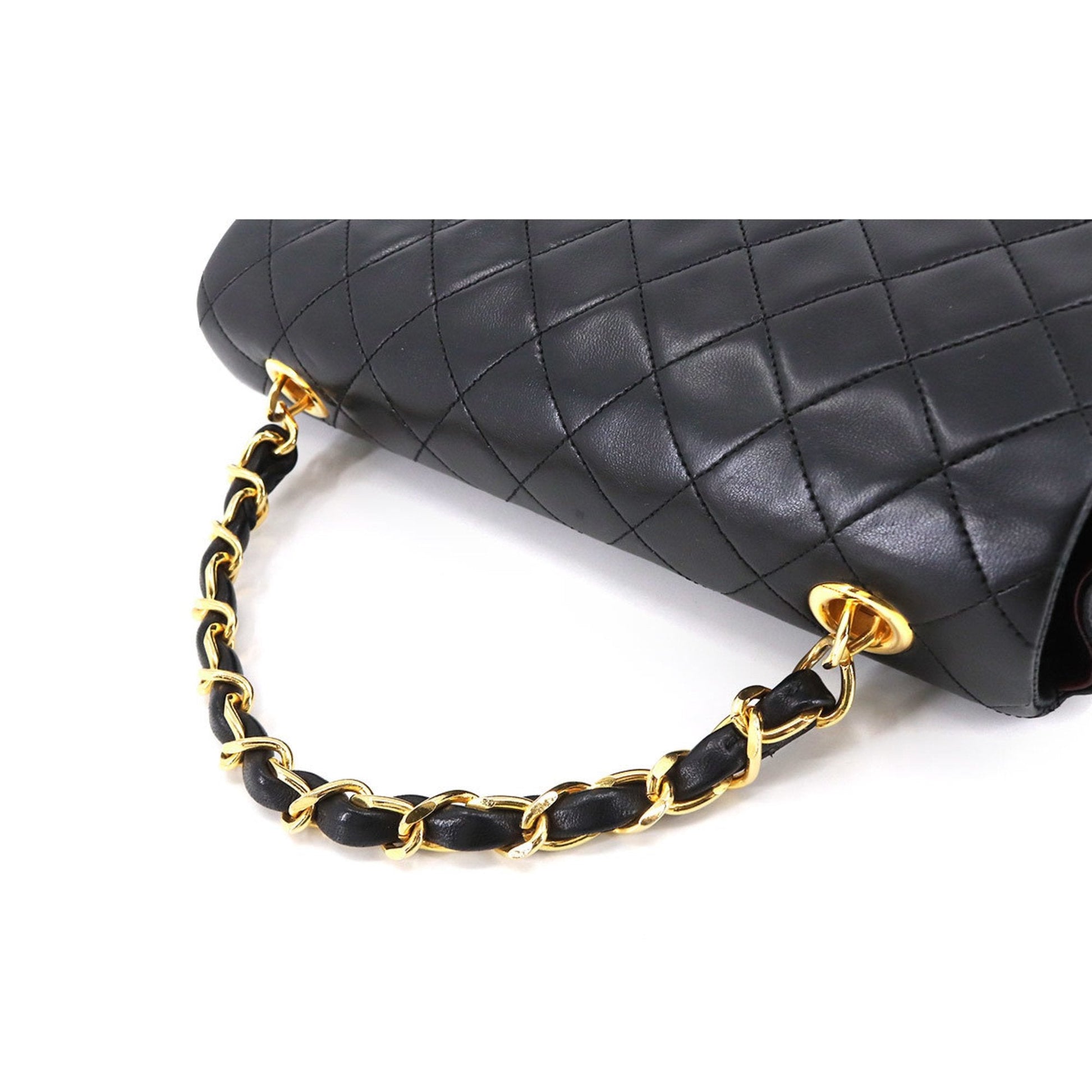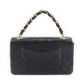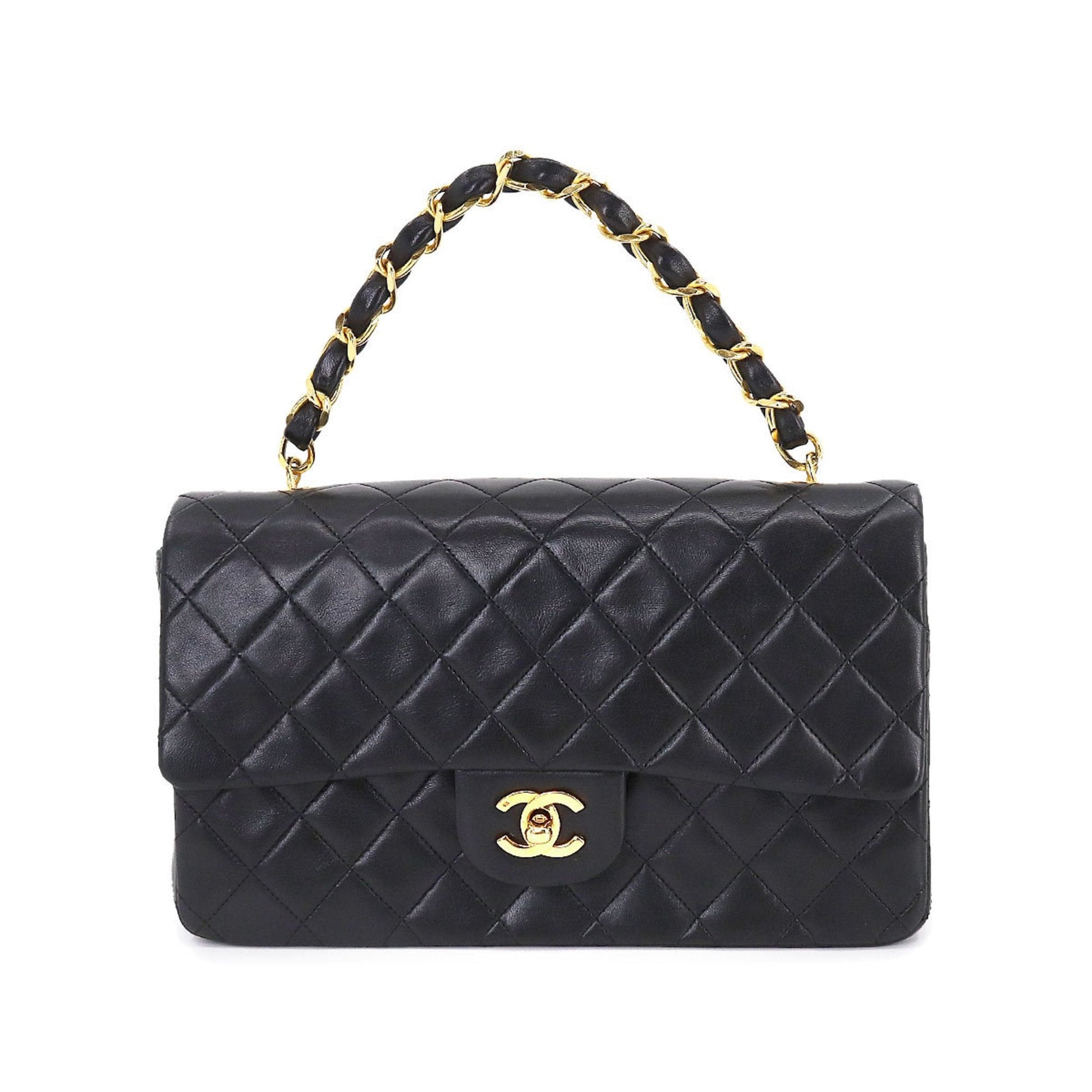 Chanel Matelasse Chain Hand Bag Leather Black Gold Hardware Vintage