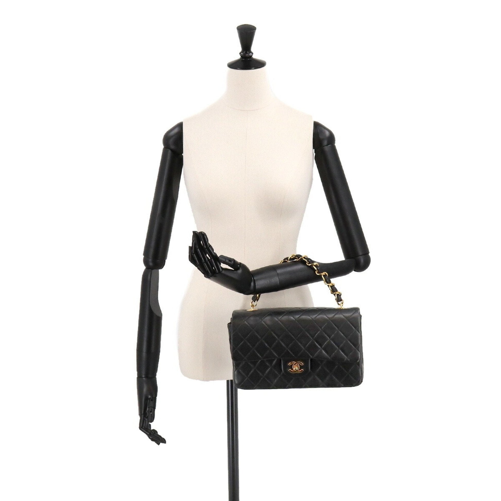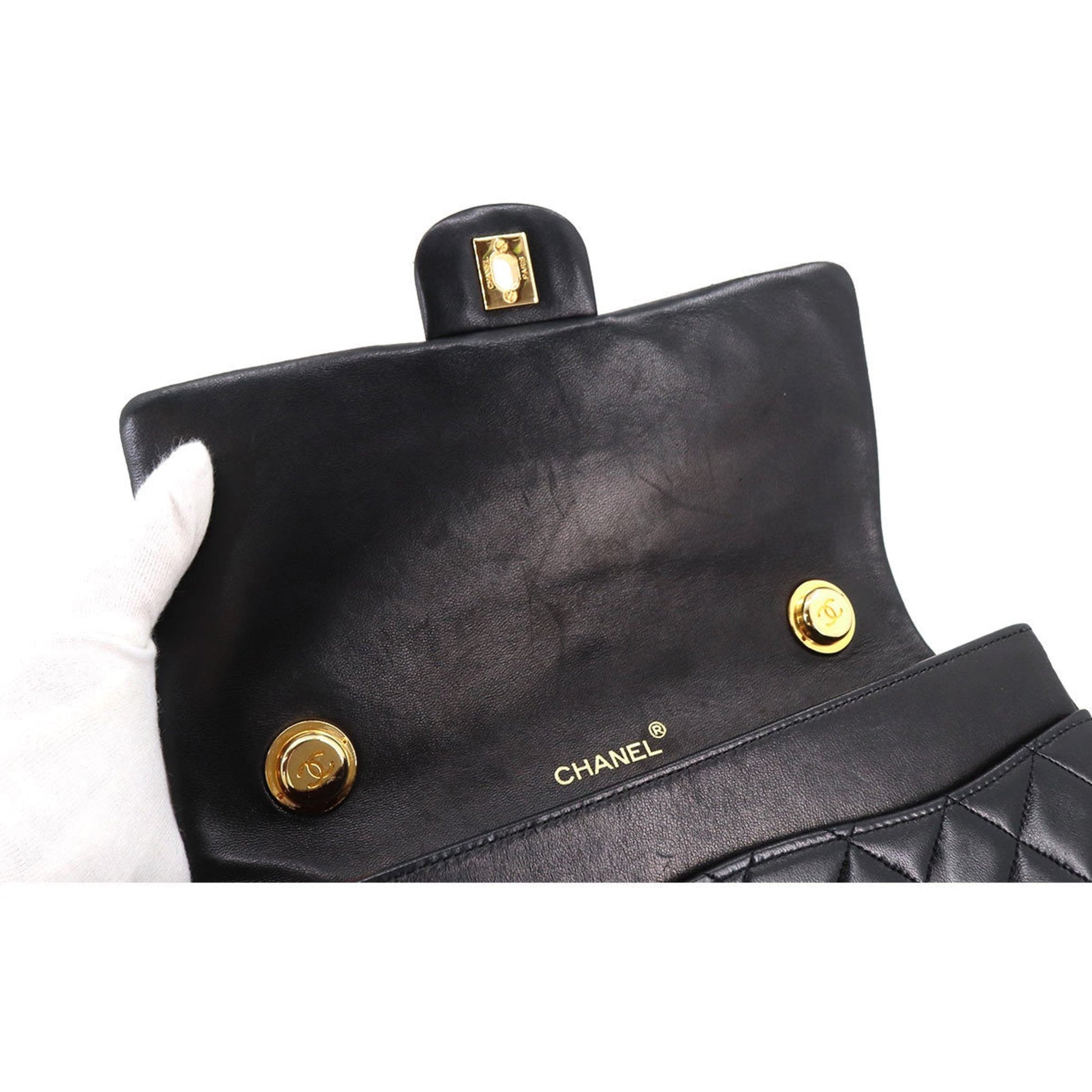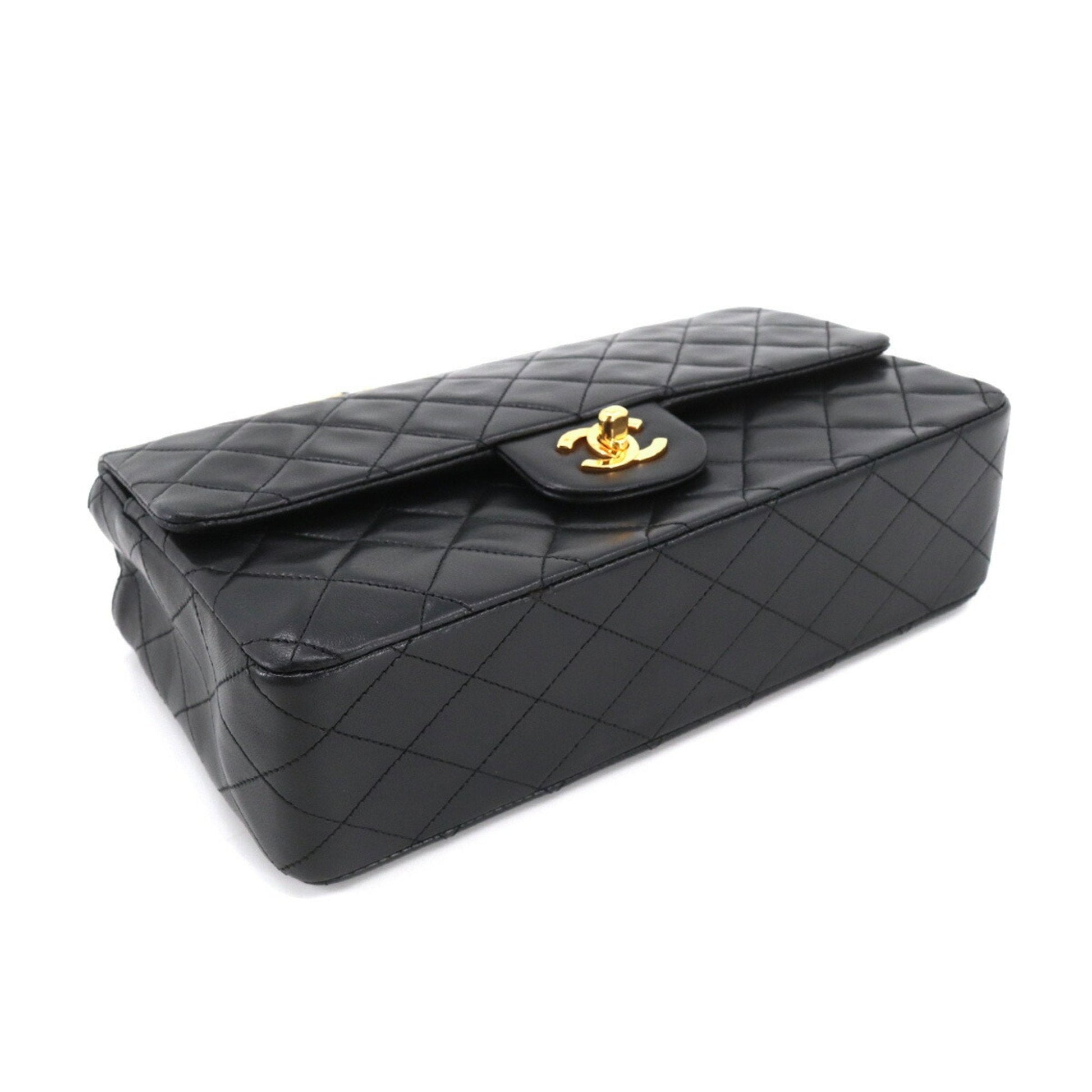 Chanel Matelasse Chain Hand Bag Leather Black Gold Hardware Vintage