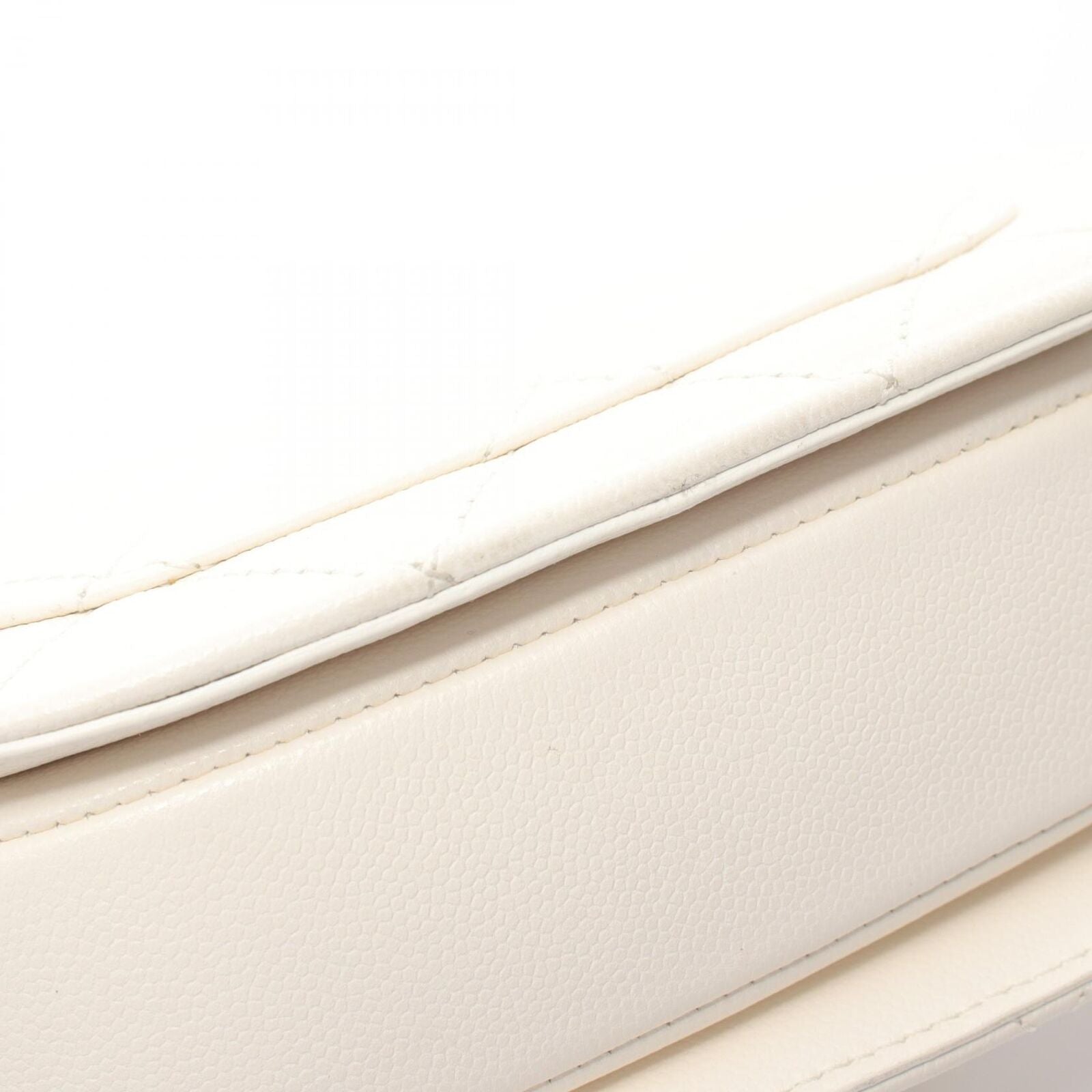 Elevate your style with the timeless elegance of the Chanel Matelasse Chain Shoulder Crossbody Bag. Crafted from luxurious grained calfskin in a sophisticated white hue, this gem is adorned with glamorous gold-tone hardware featuring the iconic CC logo. The versatile chain strap allows for effortless wear, making it a chic companion for any occasion. Embrace luxury and sophistication with this exquisite Chanel piece that exudes both class and charm.