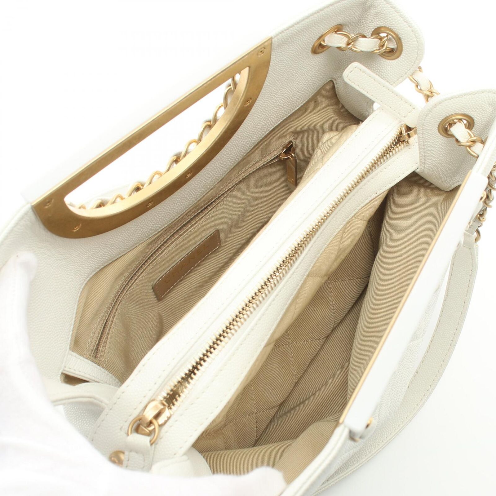 Introducing the exquisite Chanel Matelasse Chain Shoulder Bag in Grained Calfskin White, a timeless piece for sophisticated women. Crafted with precision and elegance, this bag features gold-tone hardware and the iconic CC logo. The luxurious white calfskin leather exudes opulence, making it a versatile accessory for any occasion. Elevate your style with this chic and classic Chanel shoulder bag, a must-have in every fashion enthusiast's collection.