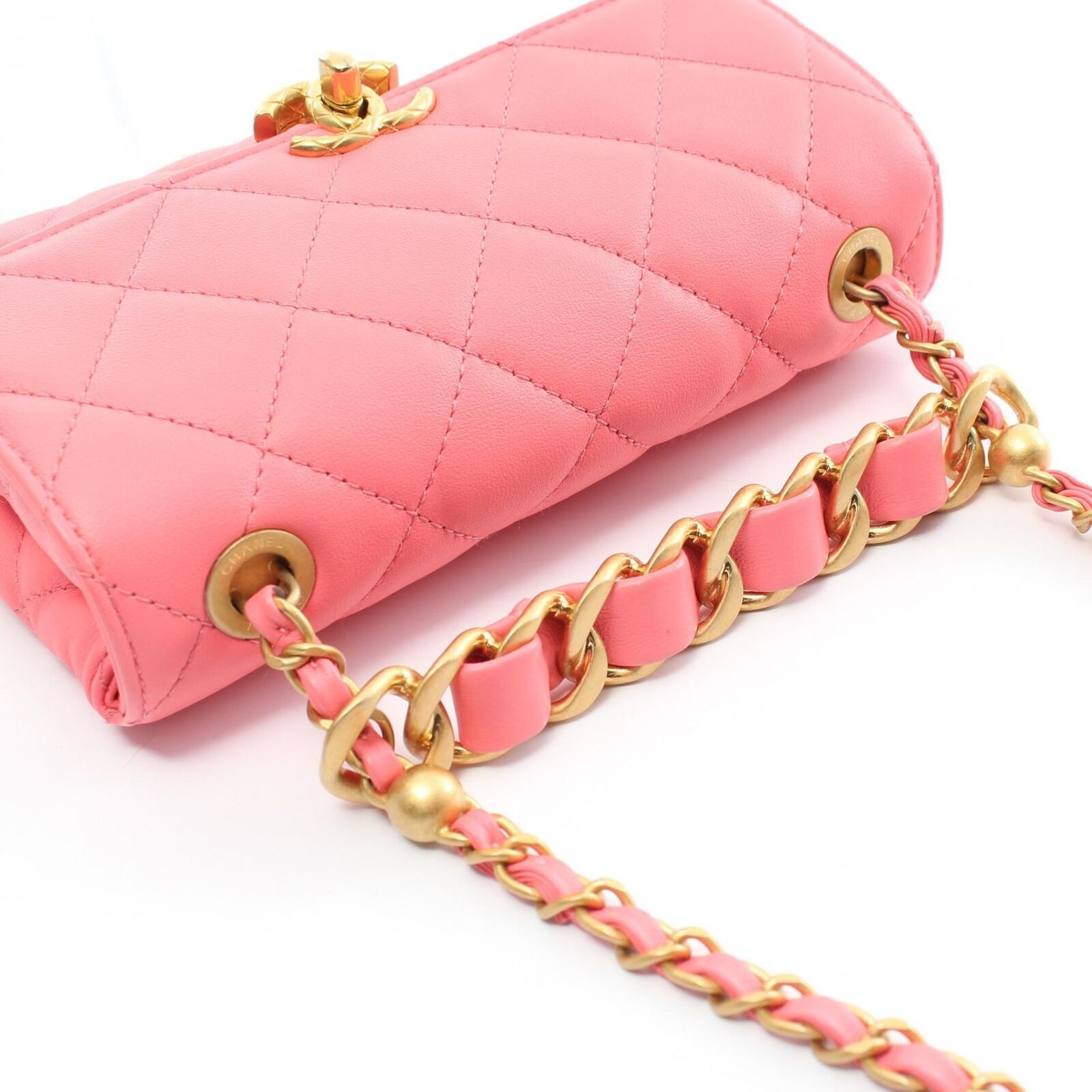 Elevate your style with the iconic Chanel Matelasse Chain Shoulder Bag. Crafted from luxurious lambskin sheep leather in a stunning pink hue, this piece exudes elegance and sophistication. The gold-tone hardware adds a touch of glamour, making it a versatile accessory for any outfit.