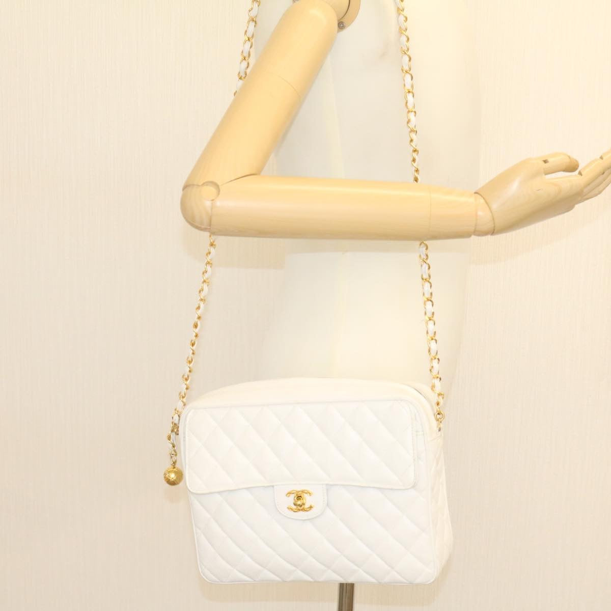 Chanel Matelasse Chain Shoulder Bag Caviar Skin Gold White CC Auth am1370gA