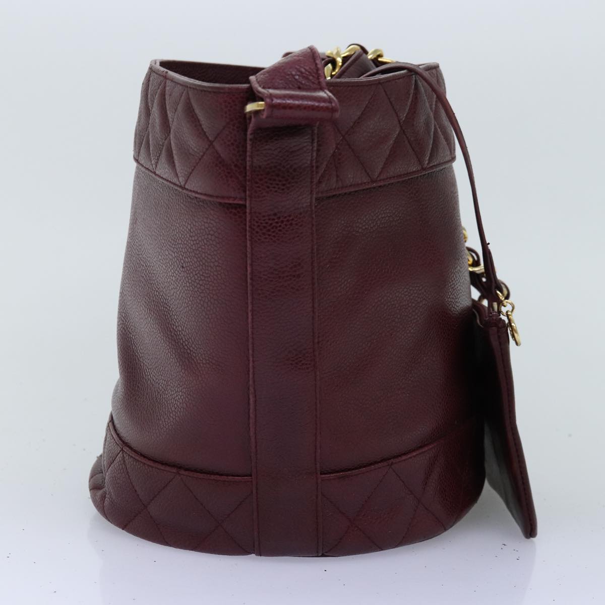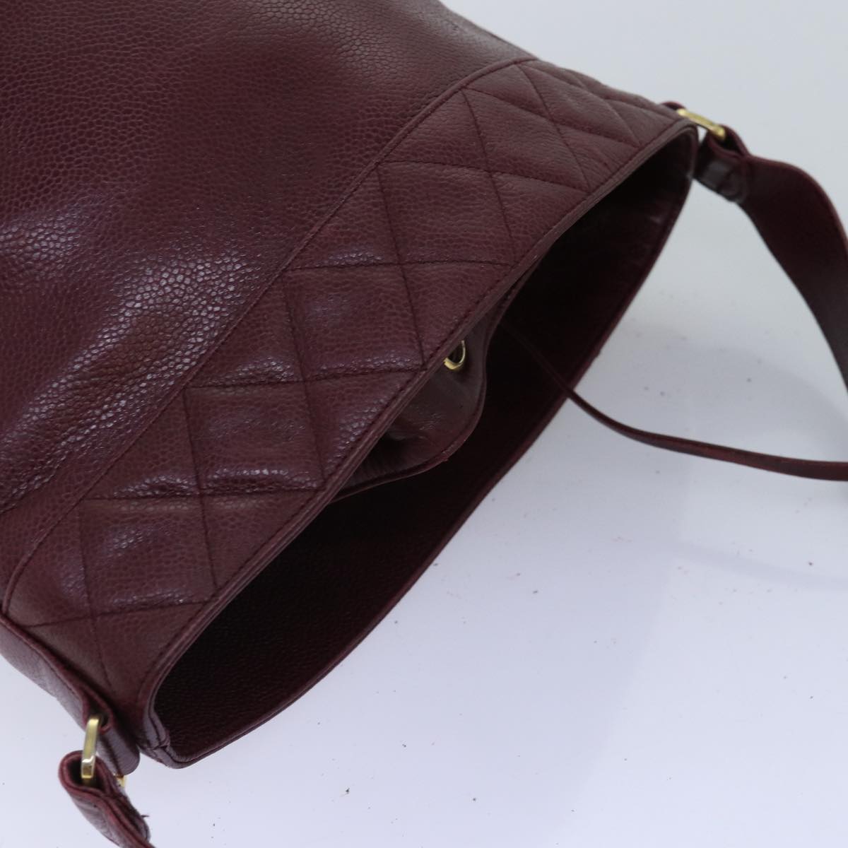 CHANEL Matelasse Chain Shoulder Bag Caviar Skin Red CC Auth bs13246
