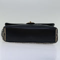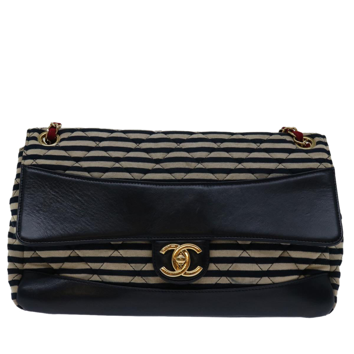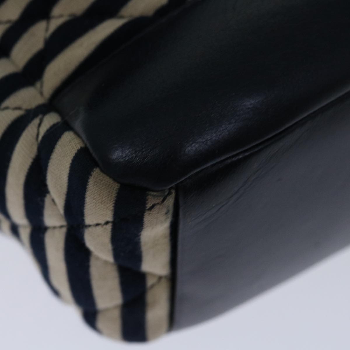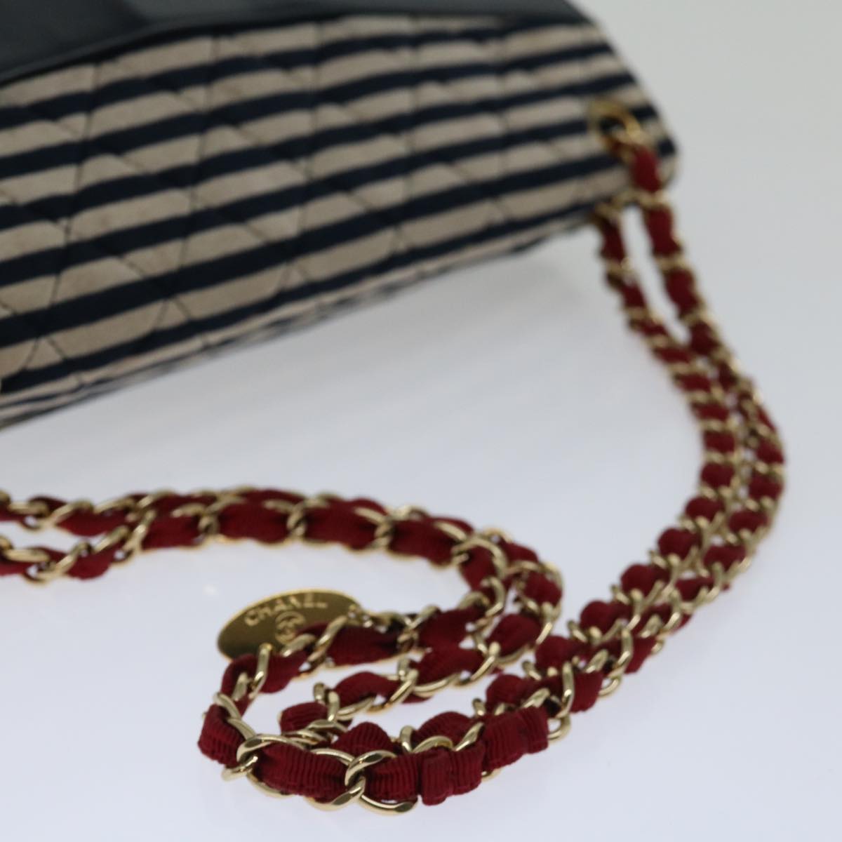 CHANEL Matelasse Chain Shoulder Bag Cotton White Navy CC Auth 69062A