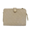 CHANEL Matelasse Chain Shoulder Bag Lamb Skin Beige CC Auth bs14983