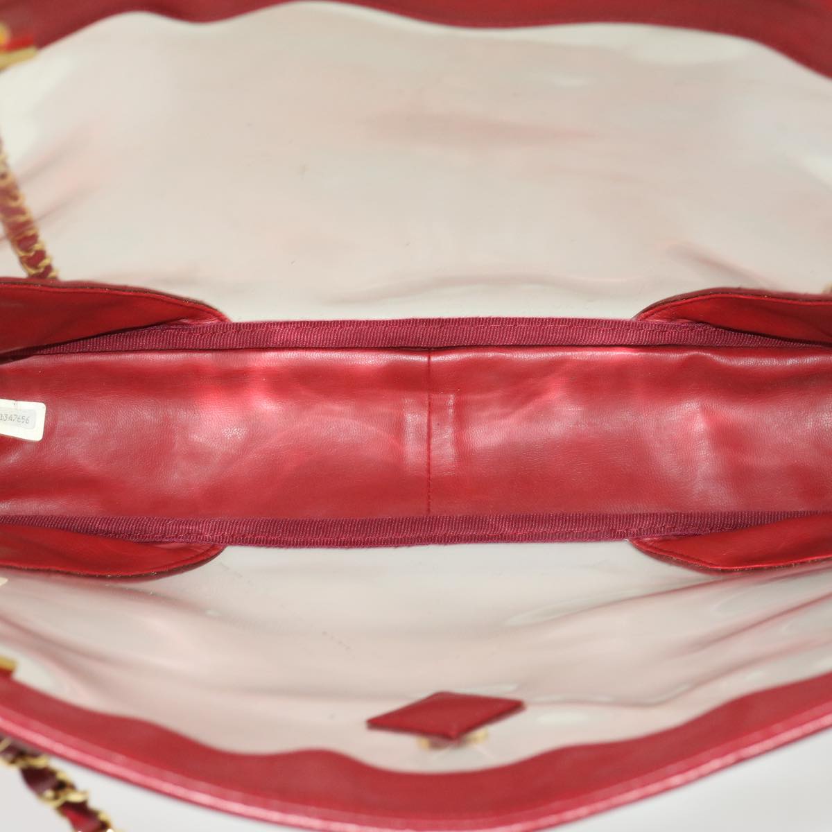 Chanel Matelasse Chain Shoulder Bag Lamb Skin Enamel Red Clear CC Auth 29894A