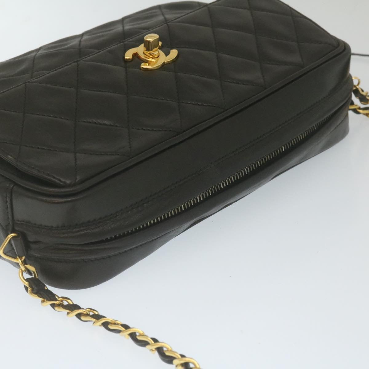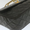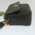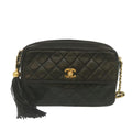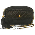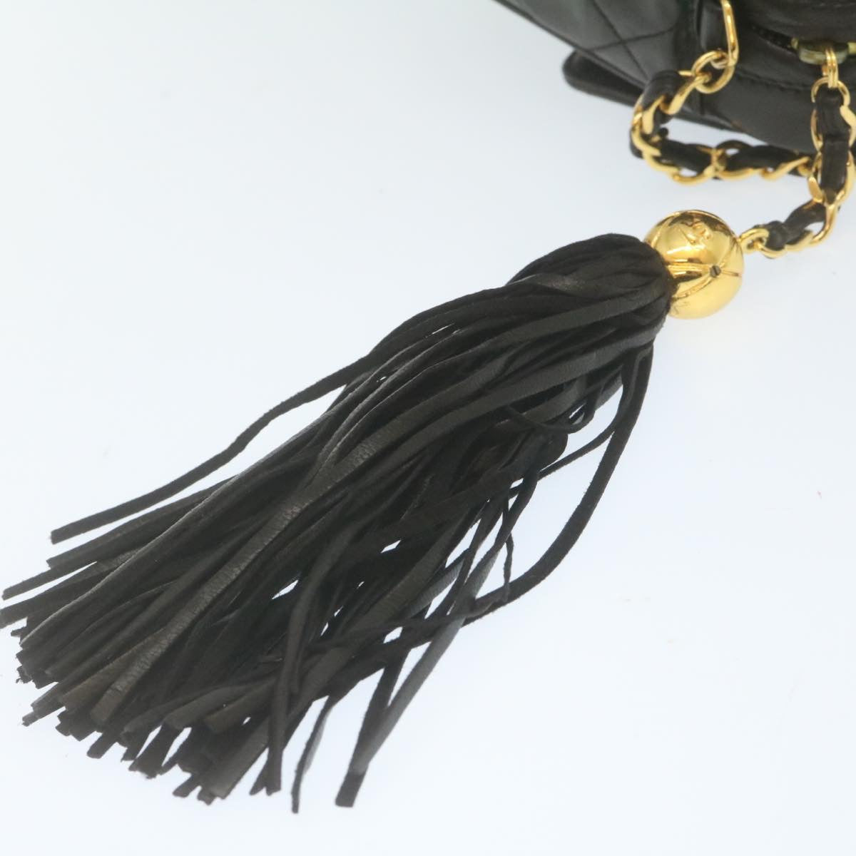 Chanel Matelasse Chain Shoulder Bag Lamb Skin Fringe Black Gold CC Auth hs691A