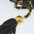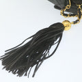 Chanel Matelasse Chain Shoulder Bag Lamb Skin Fringe Black Gold CC hs691A