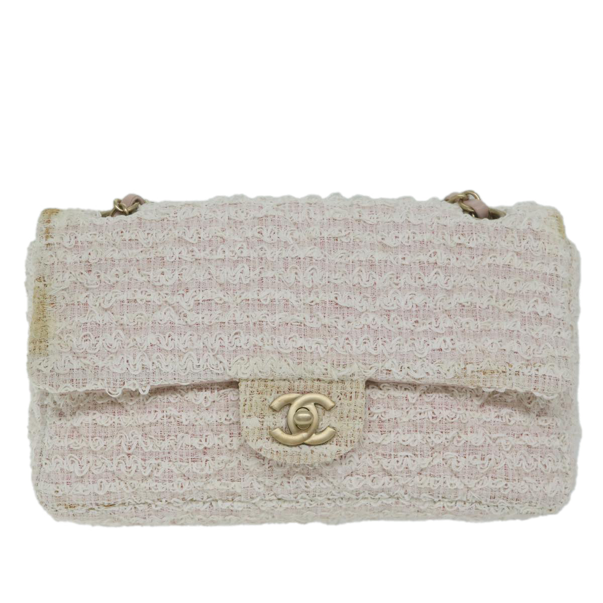 CHANEL Matelasse Chain Shoulder Bag Tweed Pink CC Auth 60753A
