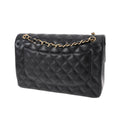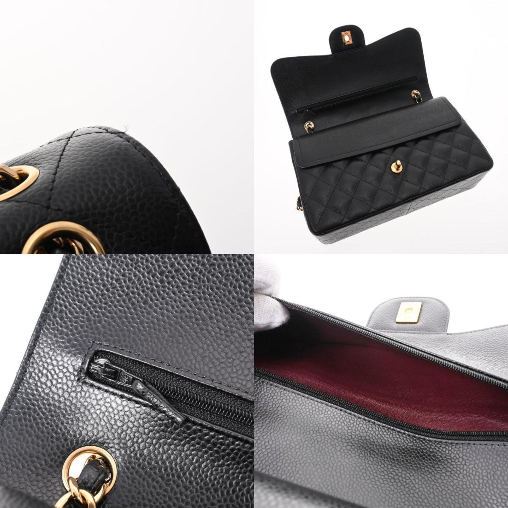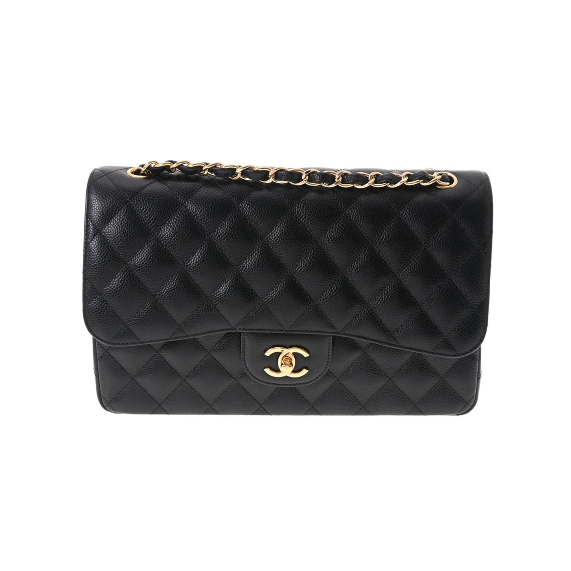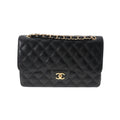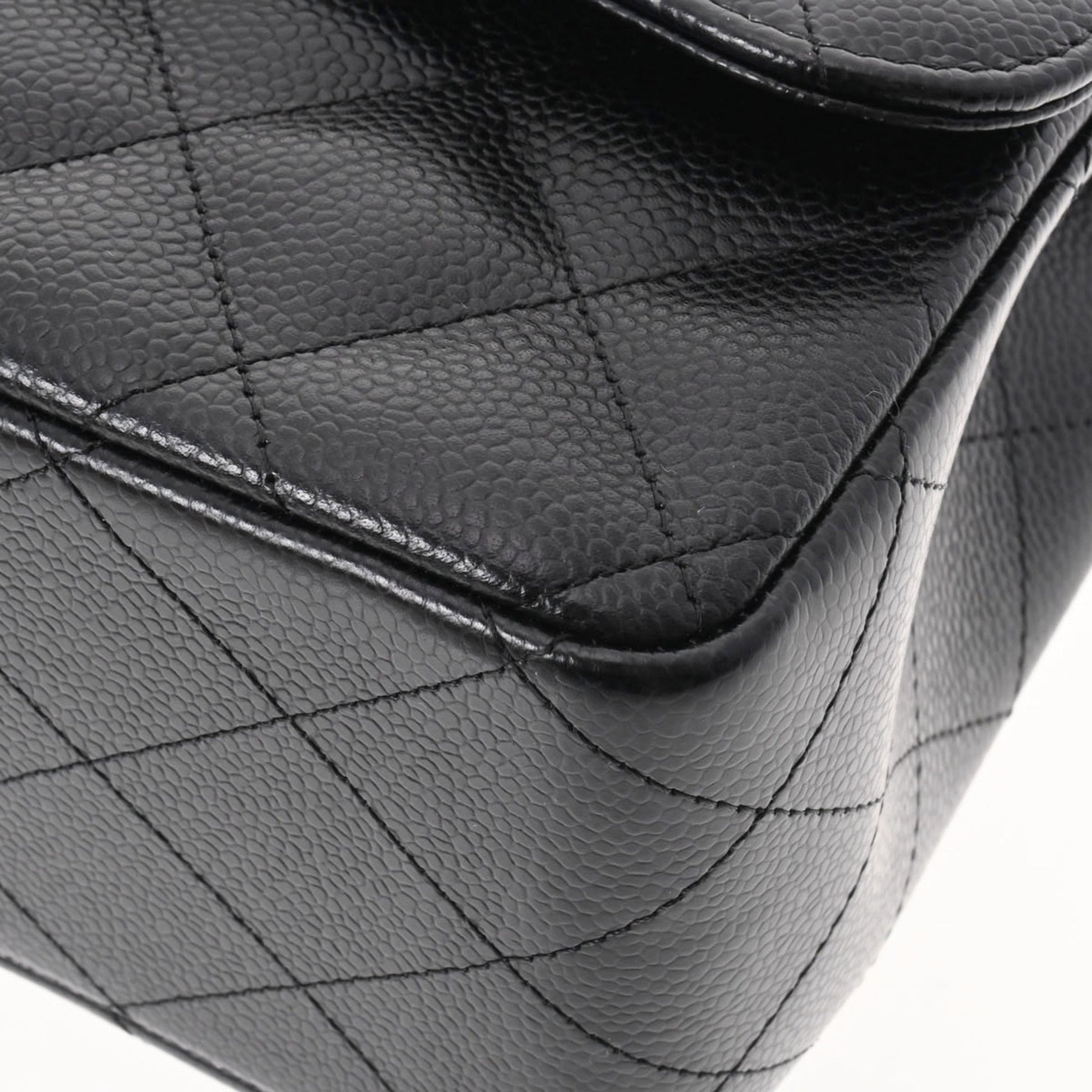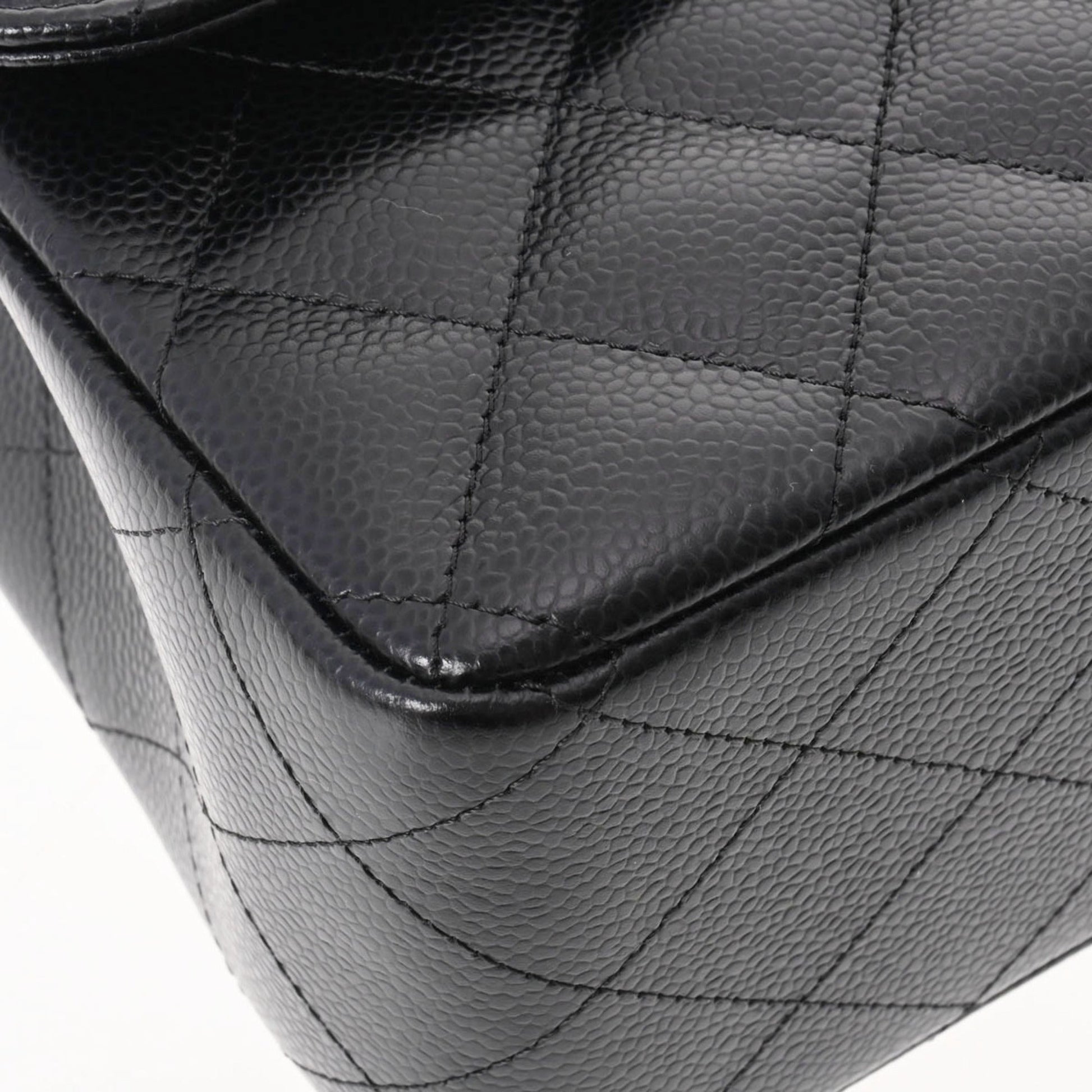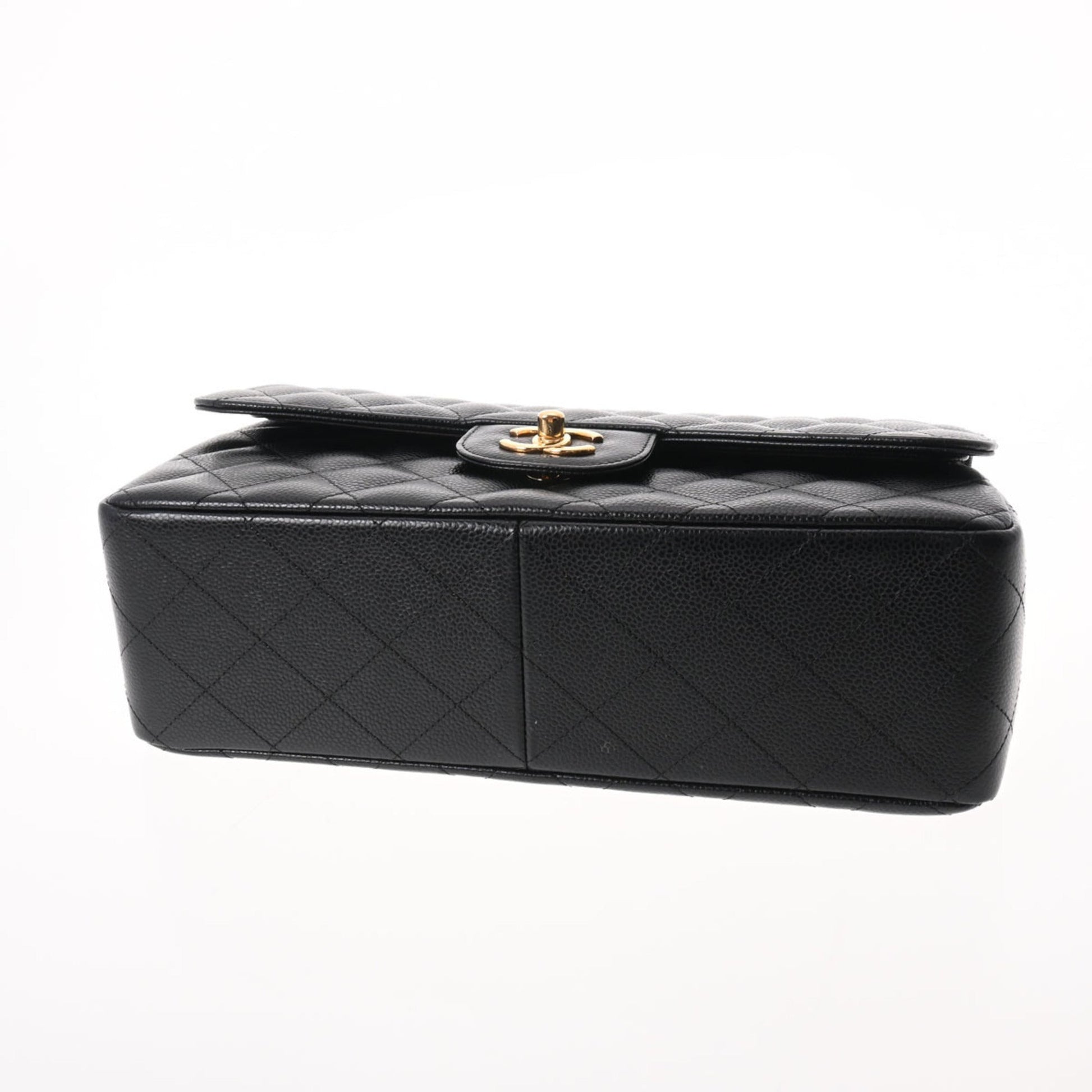 Chanel matelasse chain shoulder W flap 30cm black ladies caviar skin Bag