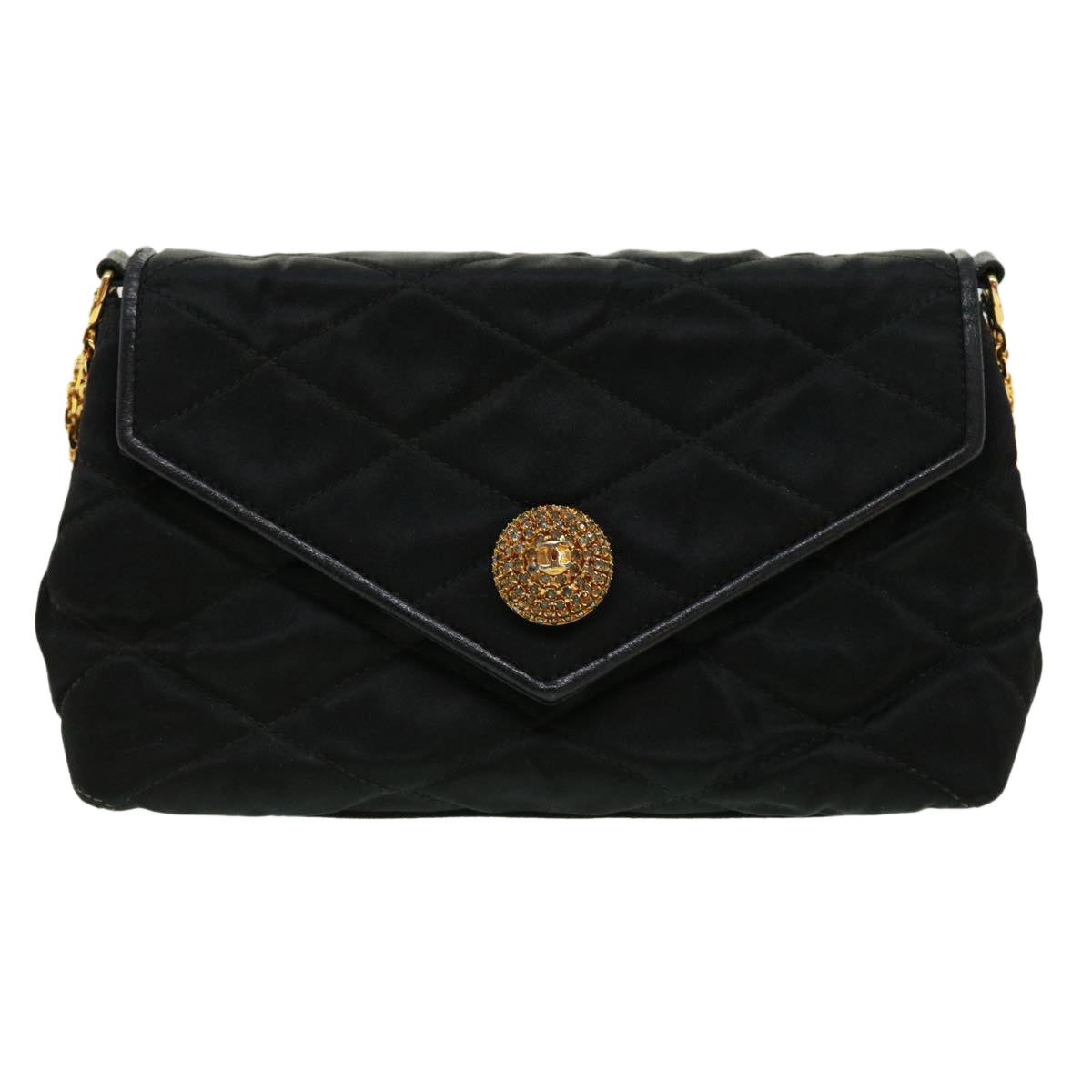 Chanel Matelasse Chain stone Shoulder Bag Black CC Auth 32695A