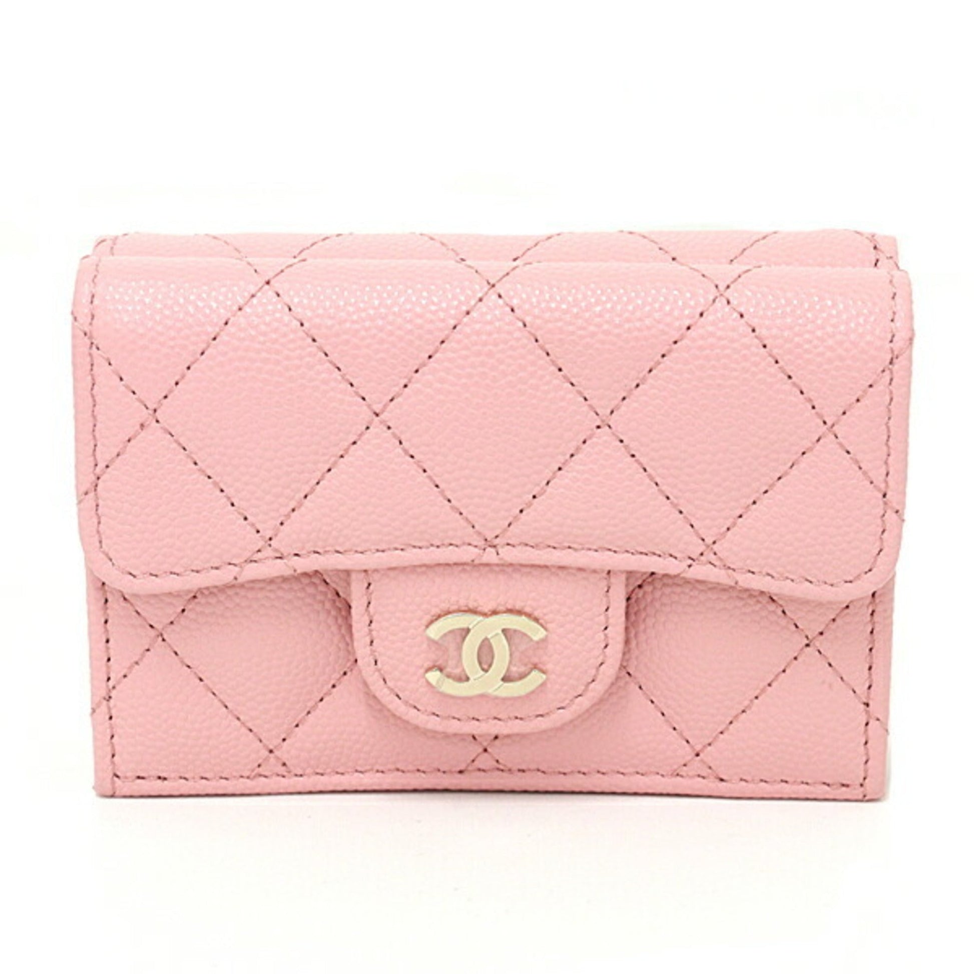 Chanel Matelasse Classic Small Flap Caviar Skin Trifold Wallet AP0230 Pink