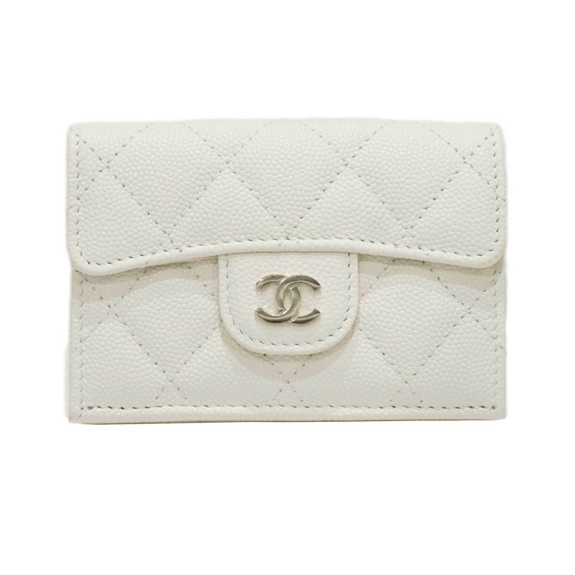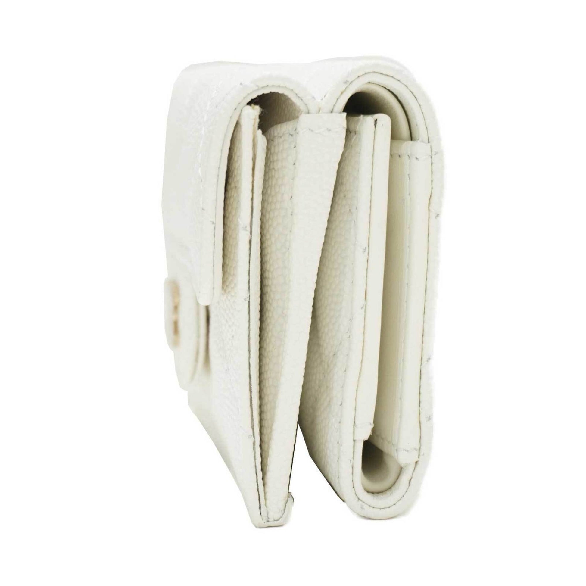 Chanel Matelasse Classic Small Flap AP0230 Fold Wallet White Caviar Skin Men Women