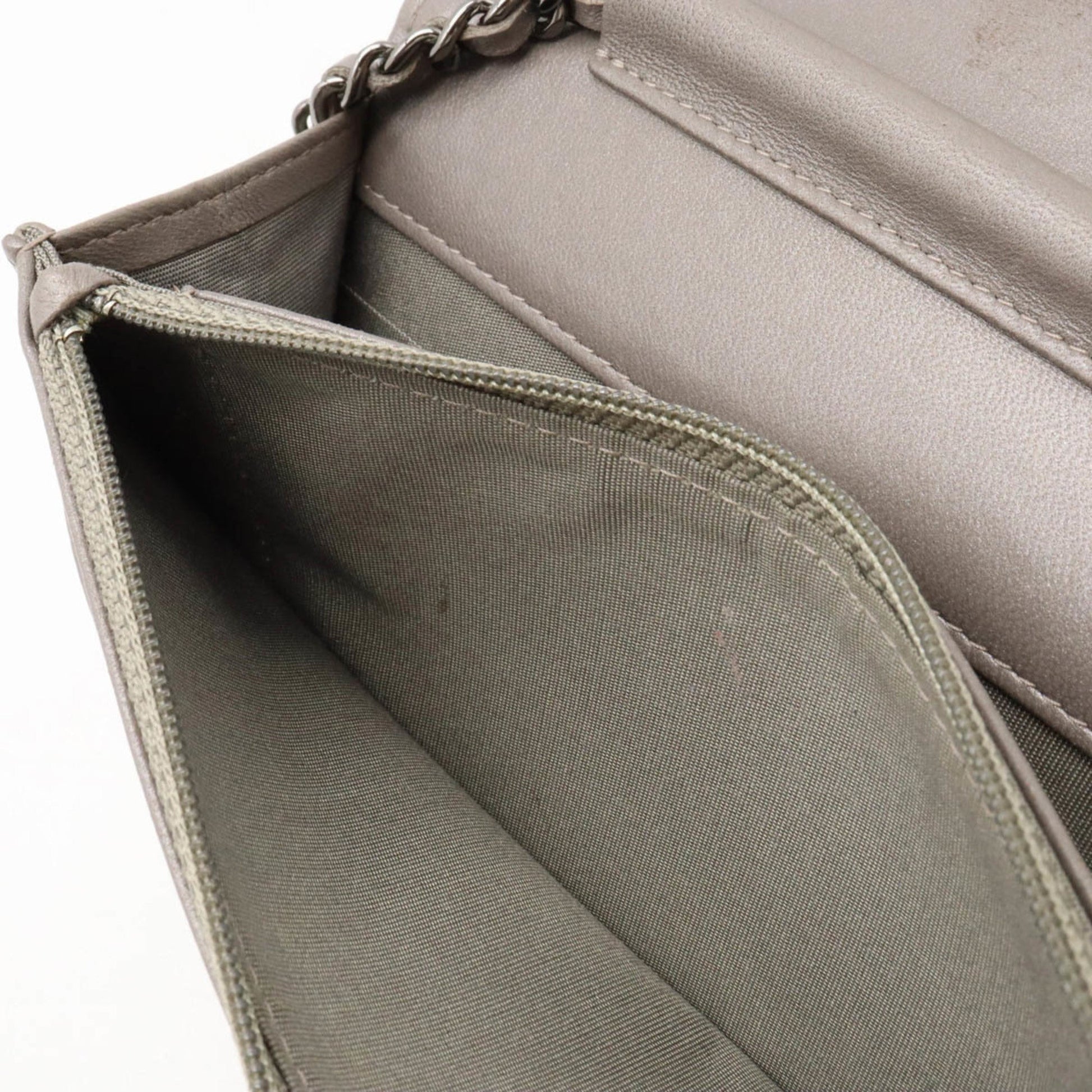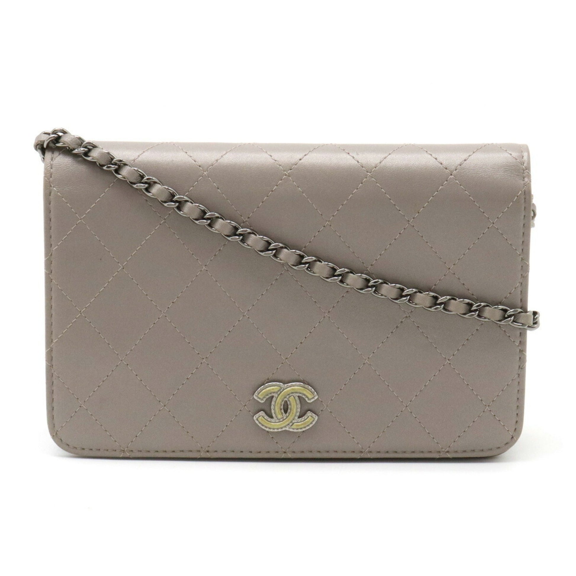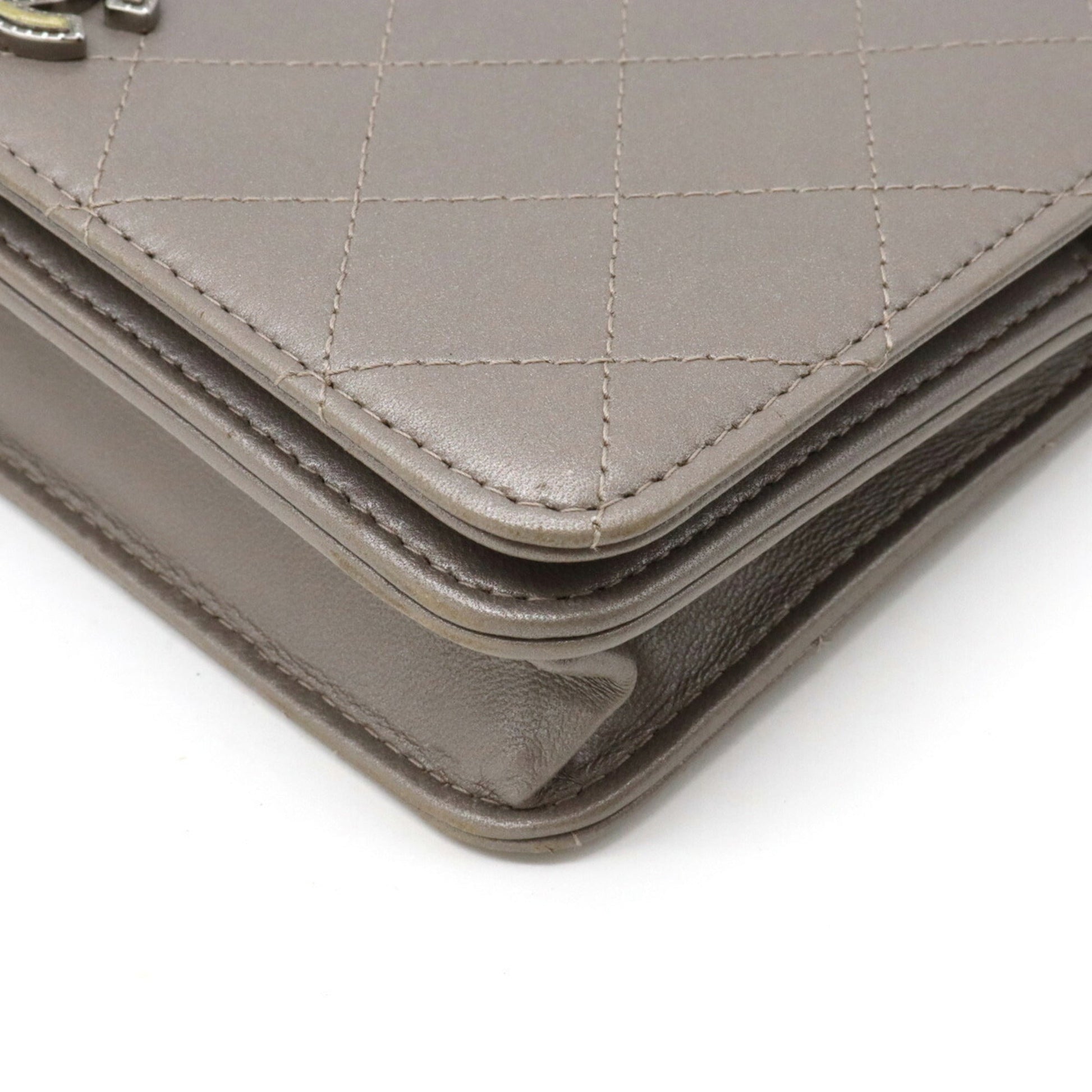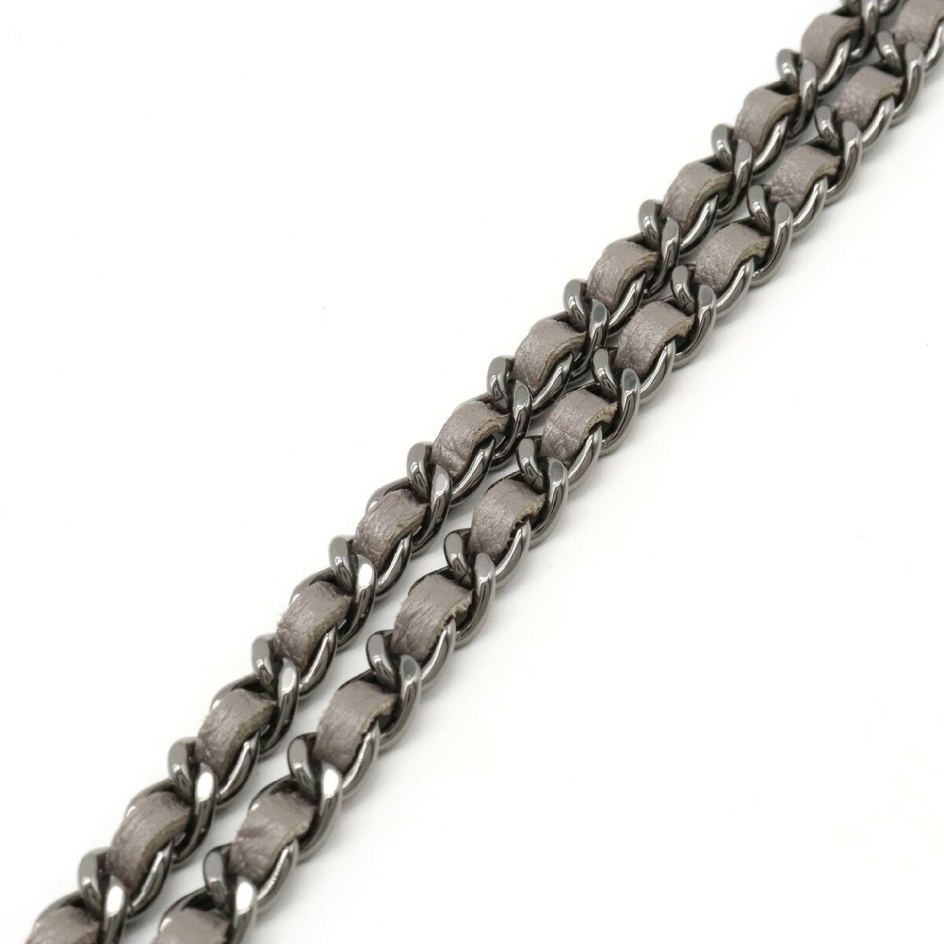 Chanel Matelasse Coco Mark Chain Shoulder Bag Pochette Metallic Leather Gray