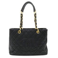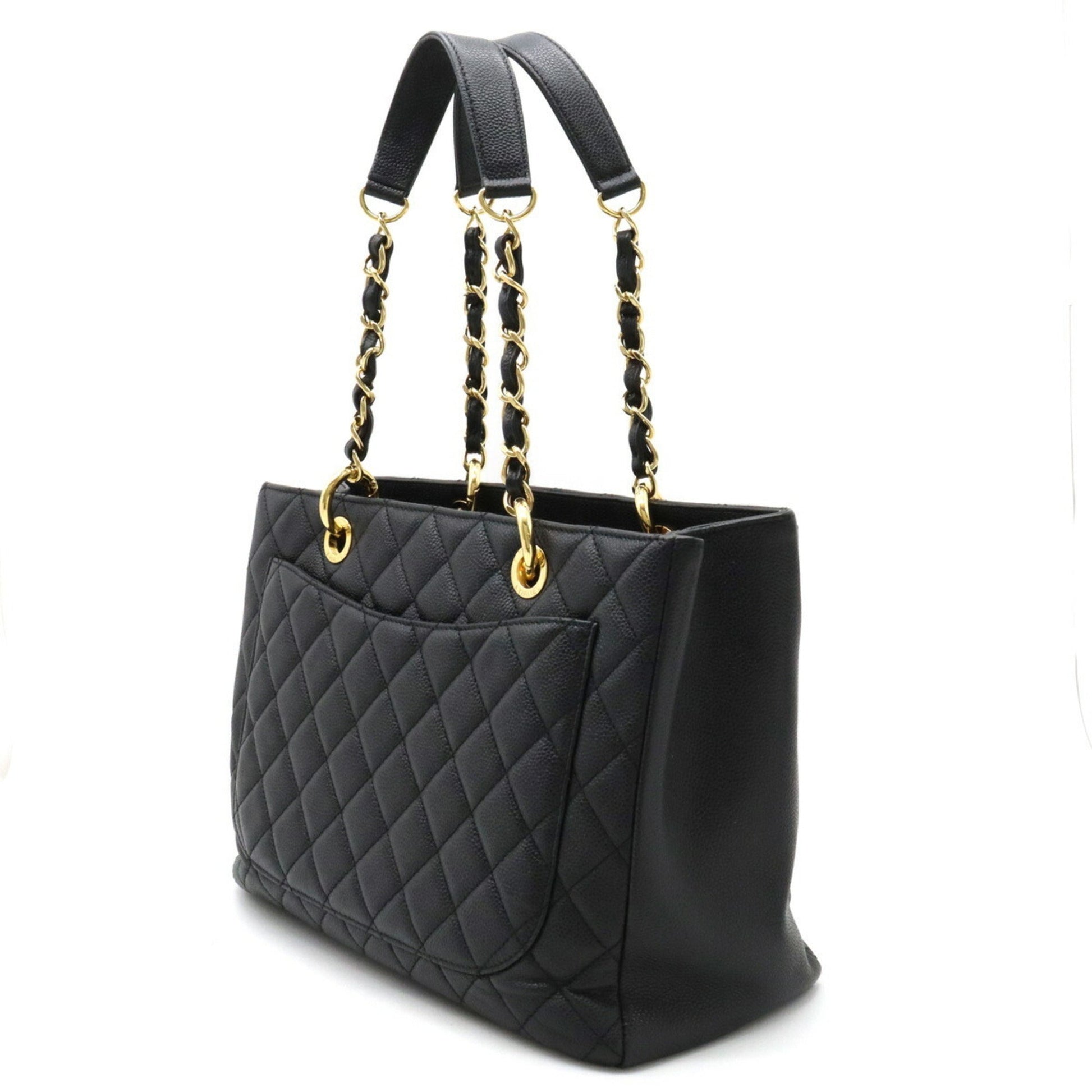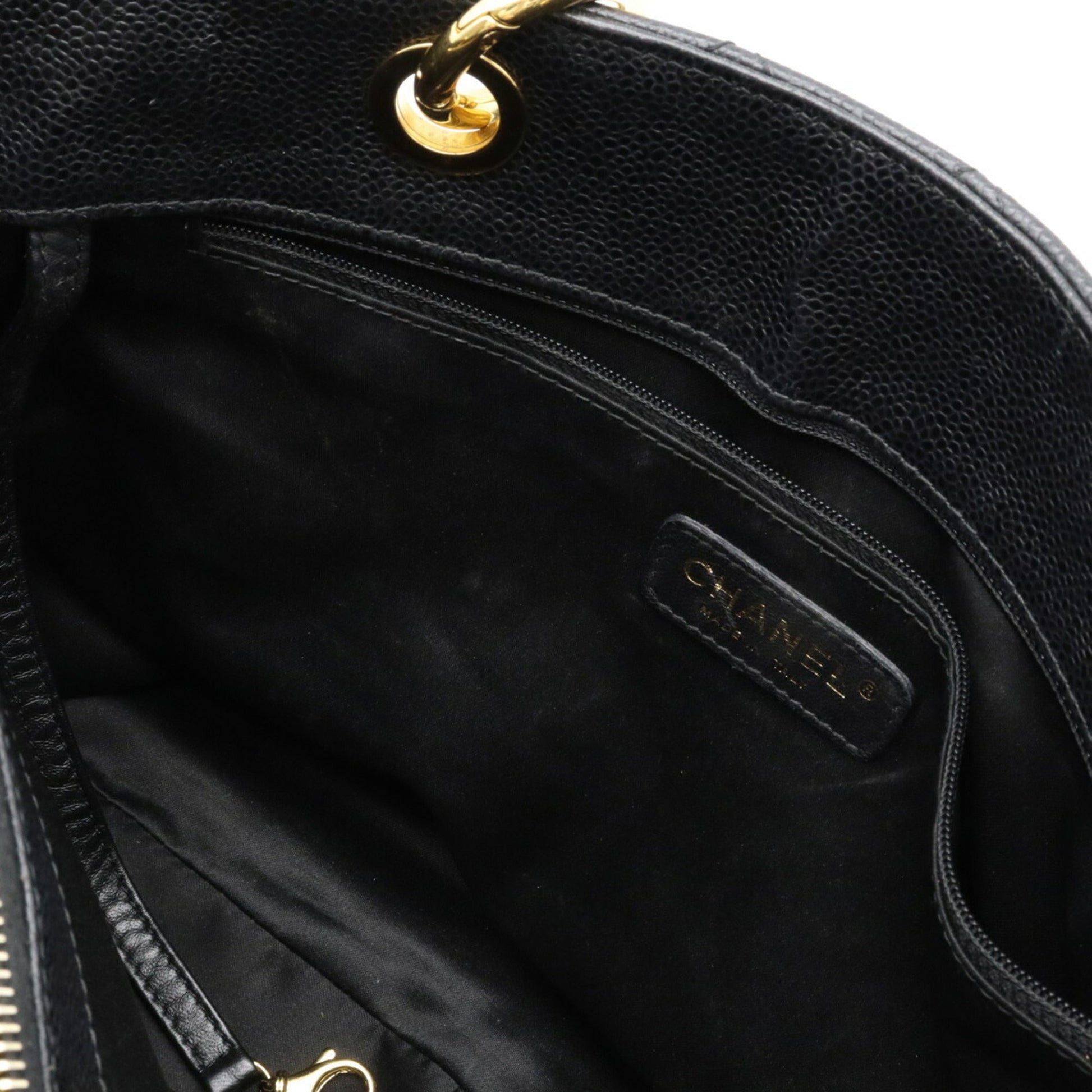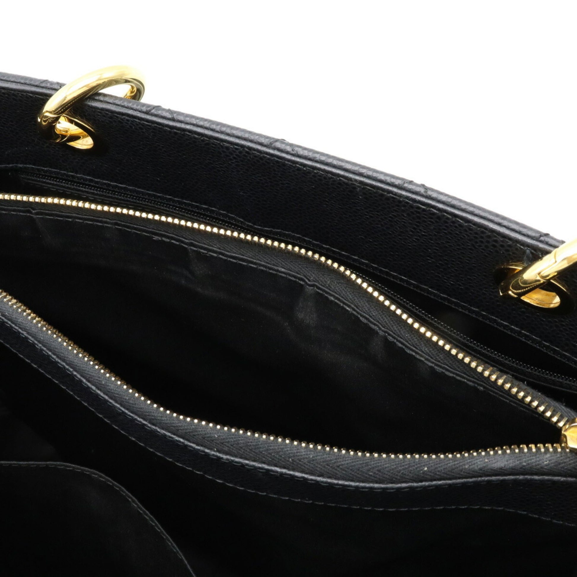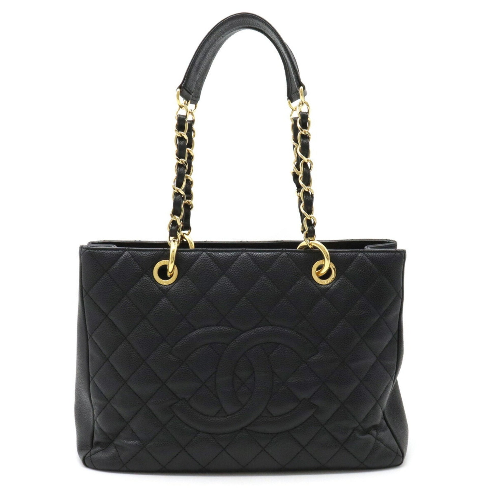 Chanel Matelasse Coco Mark Chain Tote Bag Shoulder Caviar Skin Leather Black A50995