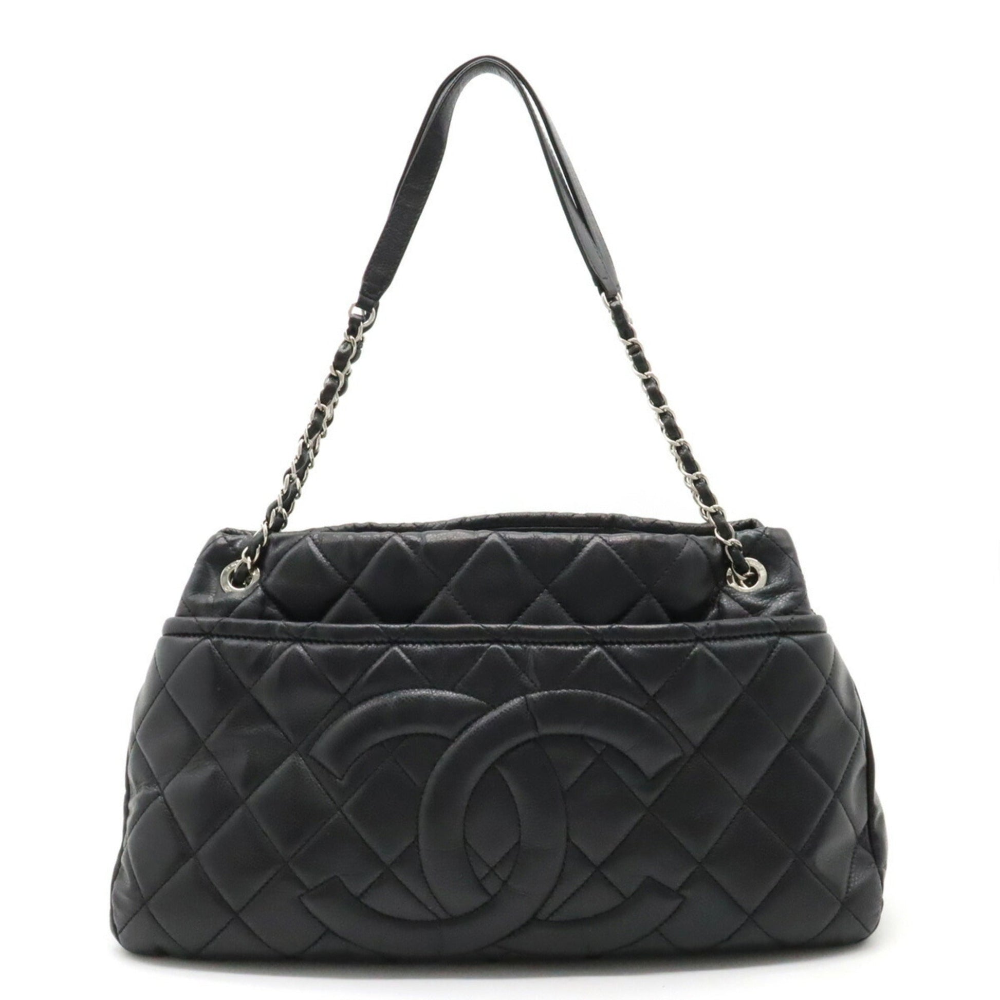 Chanel Matelasse Coco Mark Chain Tote Bag Shoulder Caviar Skin Leather Black A67292