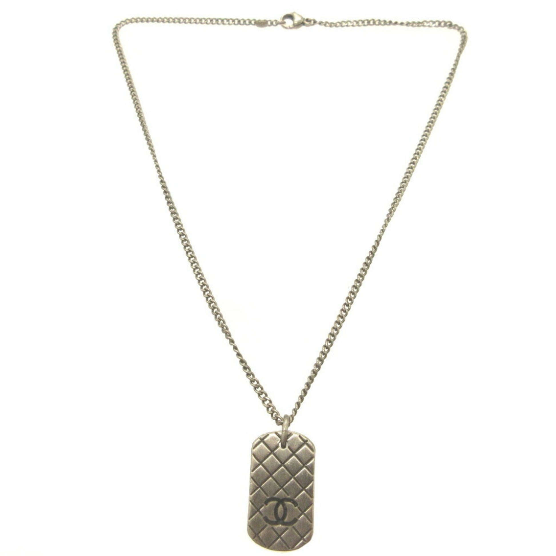 Chanel Matelasse Coco Mark Plate 05P Metal Silver Necklace