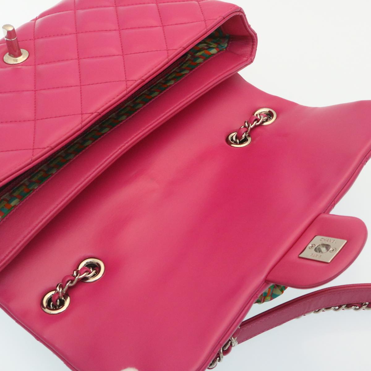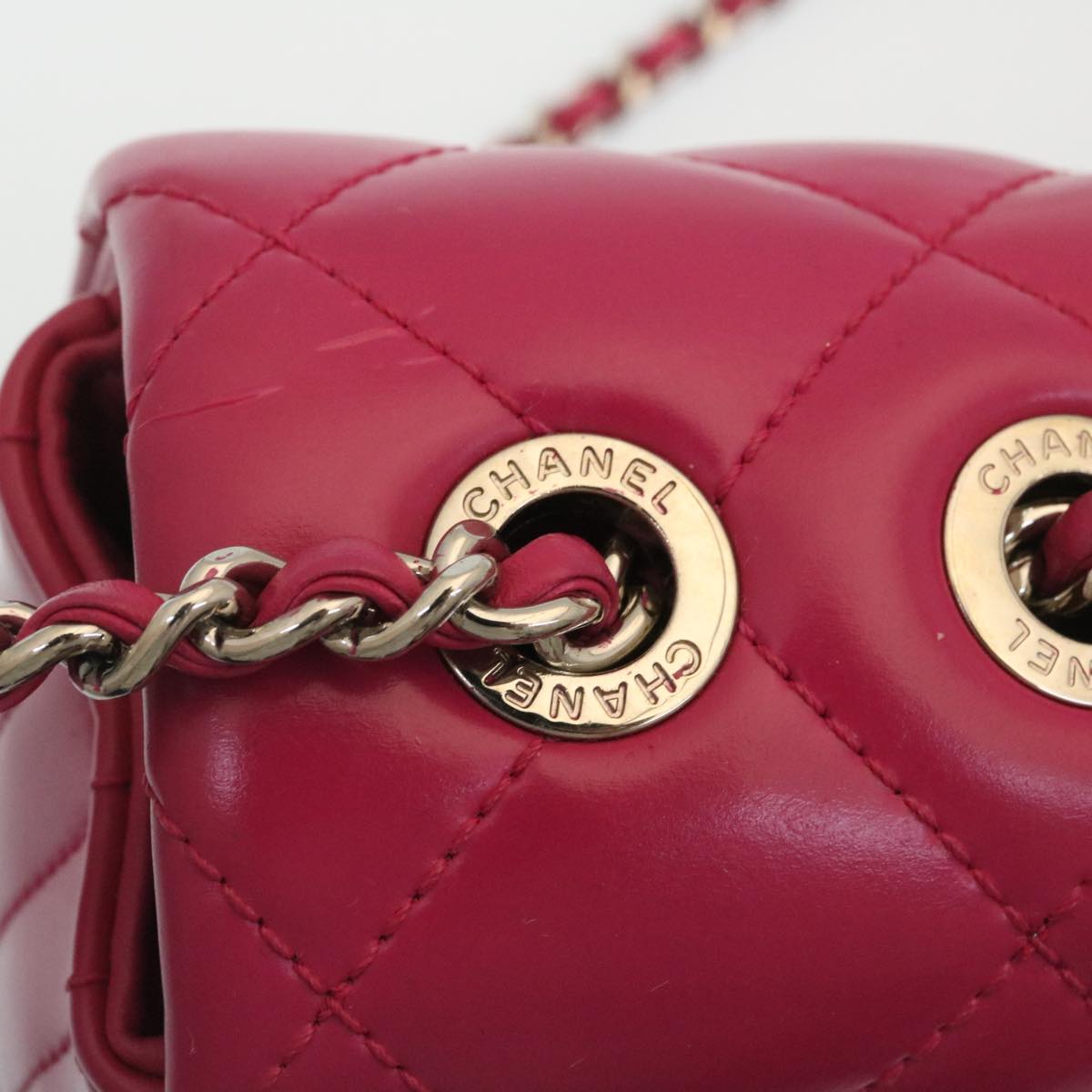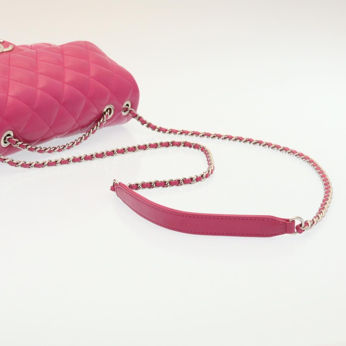 Chanel Matelasse Coco Rain Double Chain Shoulder Bag Lamb Skin Pink Auth 29191A