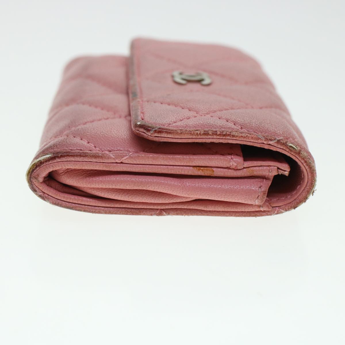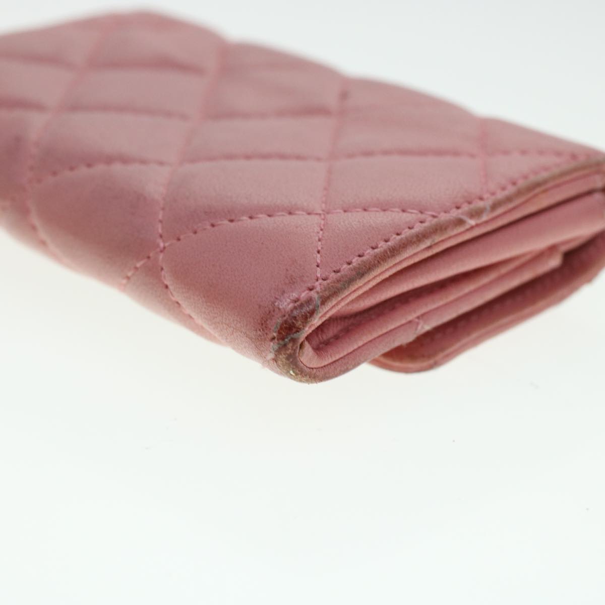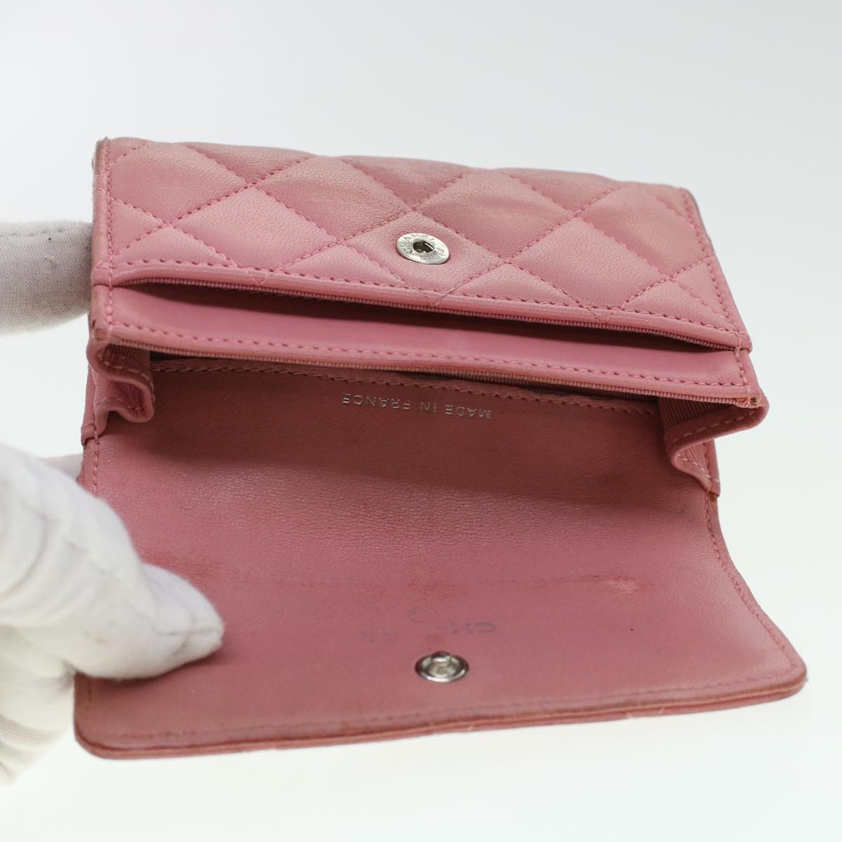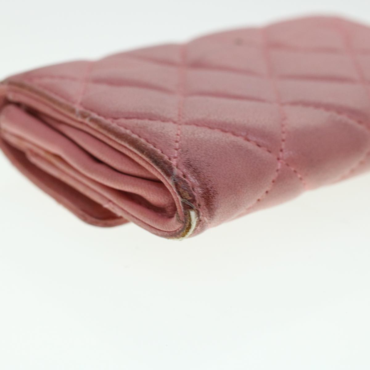 Chanel Matelasse Coin Purse Lamb Skin Pink CC Auth bs5967