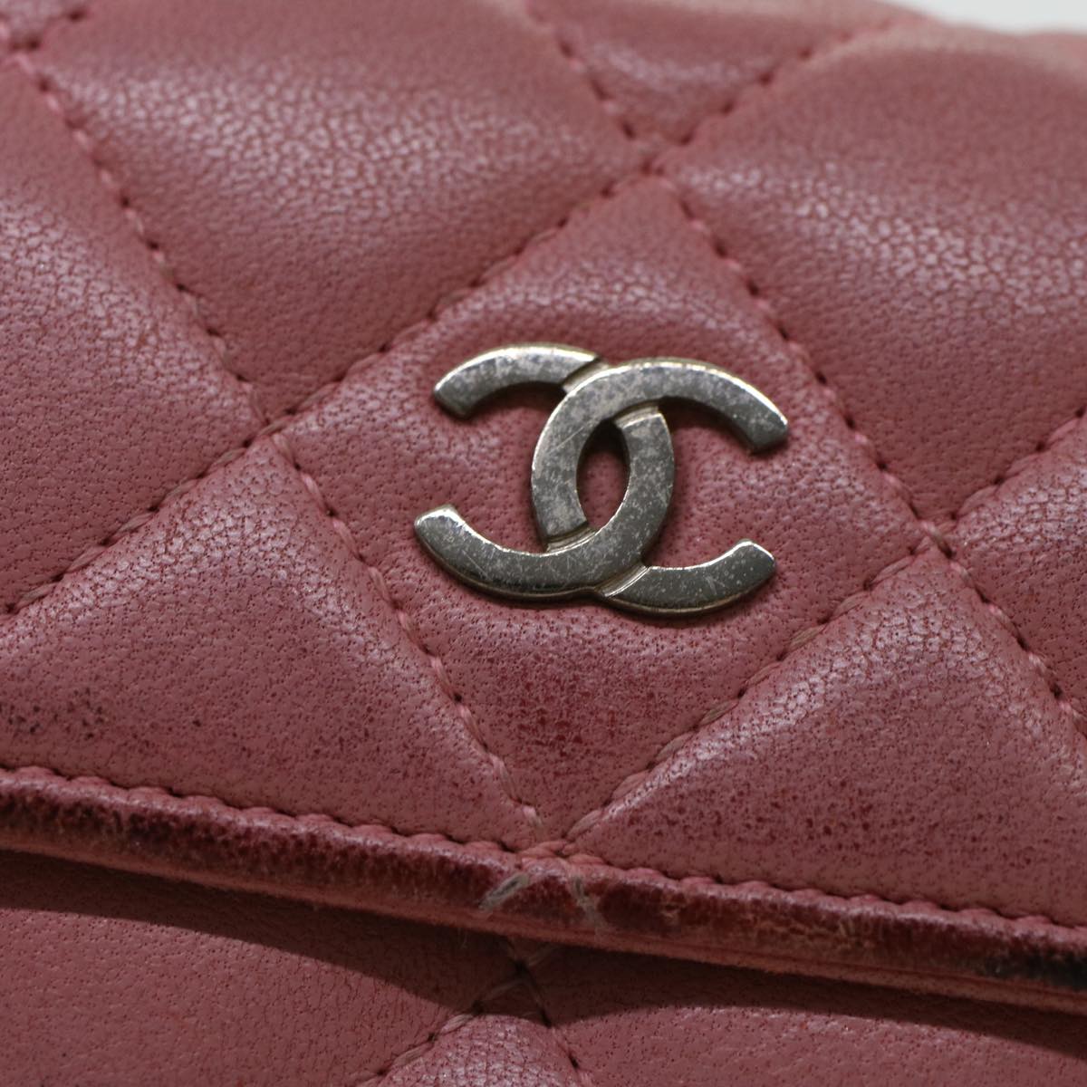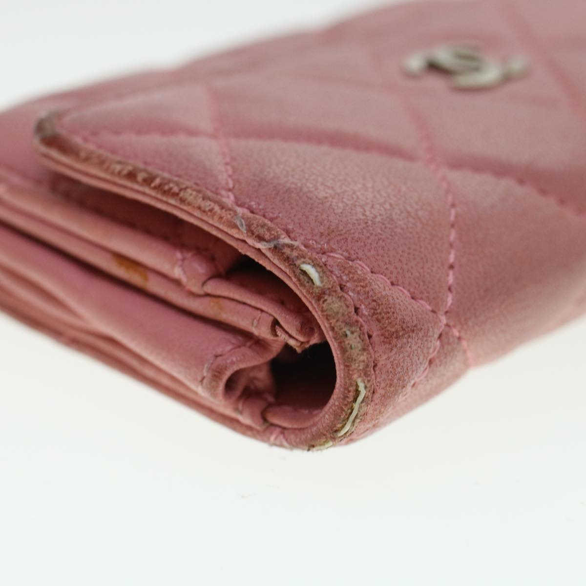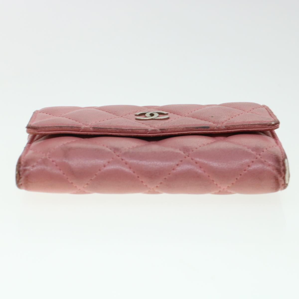 Chanel Matelasse Coin Purse Lamb Skin Pink CC Auth bs5967