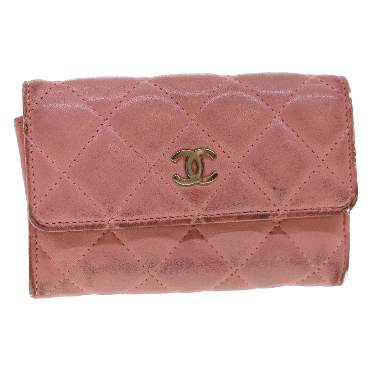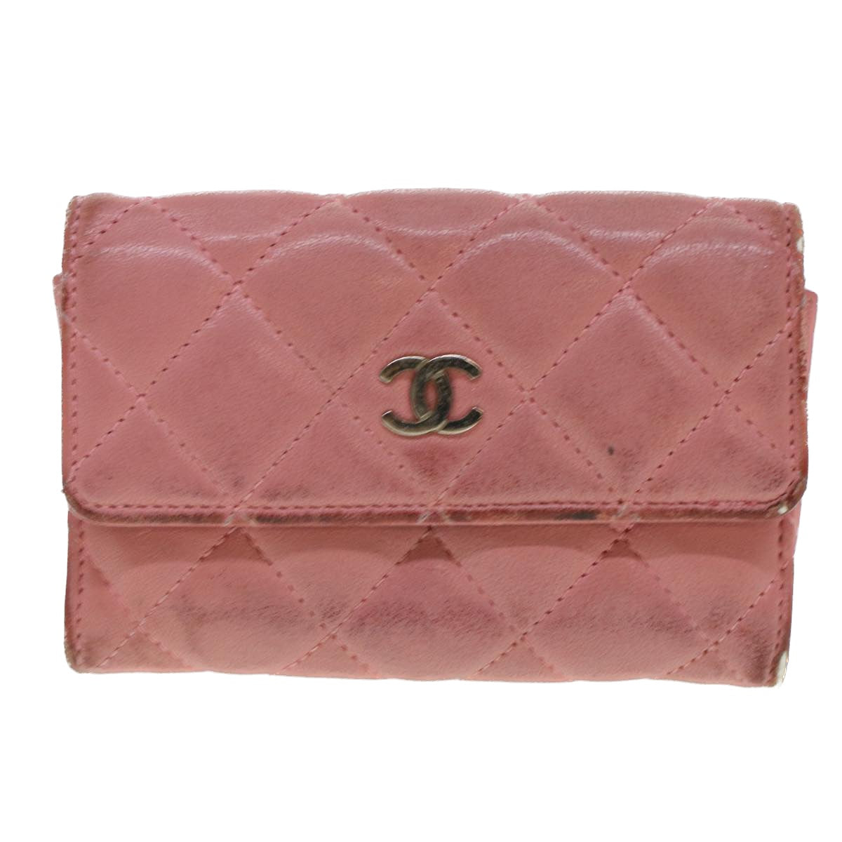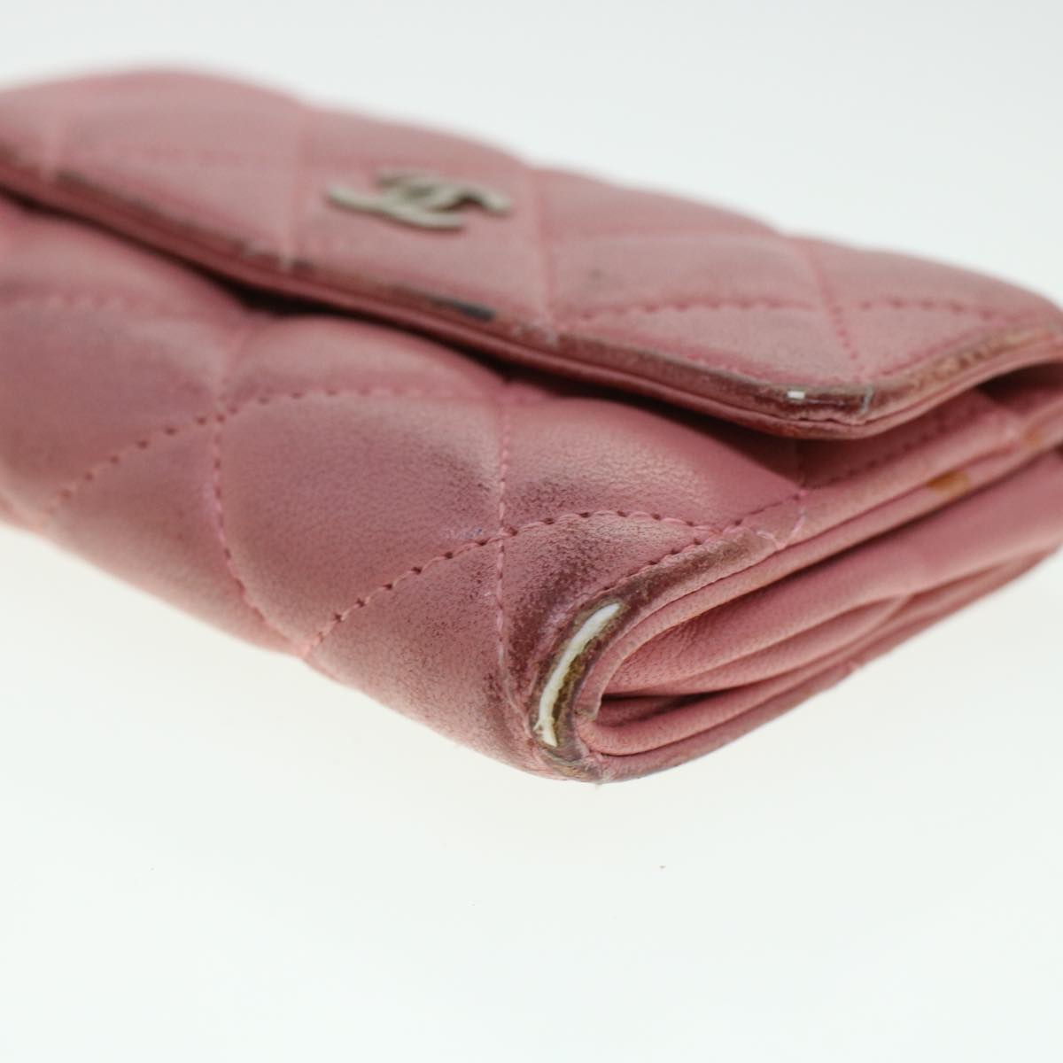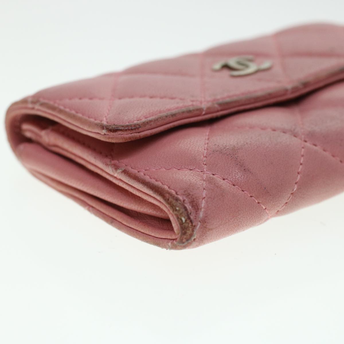 Chanel Matelasse Coin Purse Lamb Skin Pink CC Auth bs5967