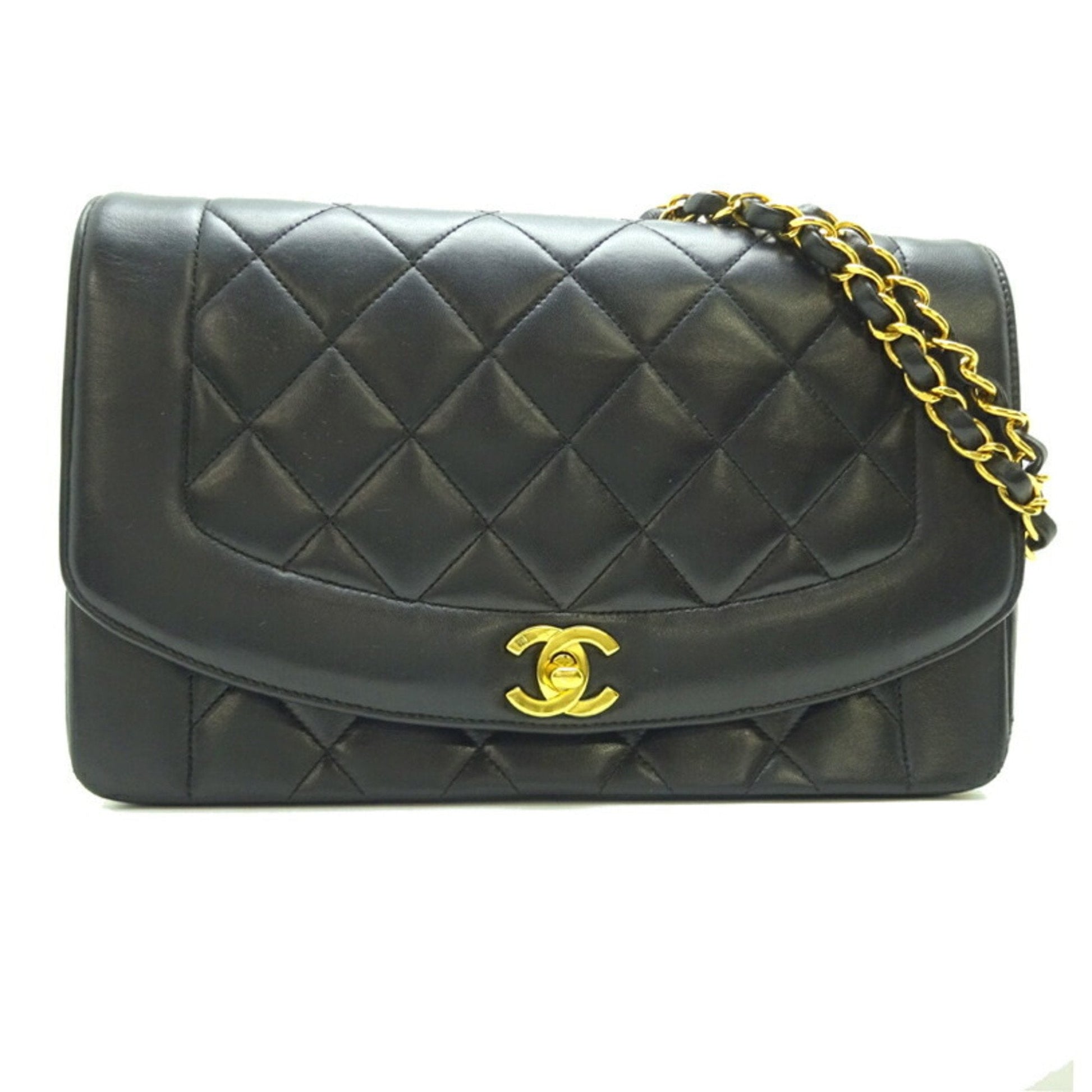 Chanel Matelasse Diana 25 Chain Shoulder Women's Bag A01165 Lambskin Noir [Black]