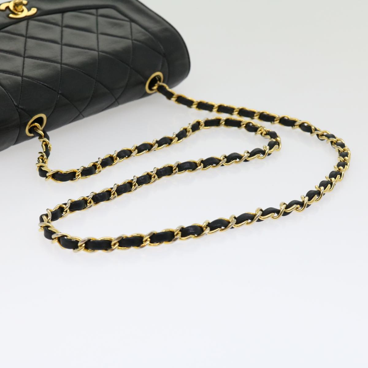 Chanel Matelasse Diana Turn Lock Chain Shoulder Bag Lamb Skin Black Auth ar7368A