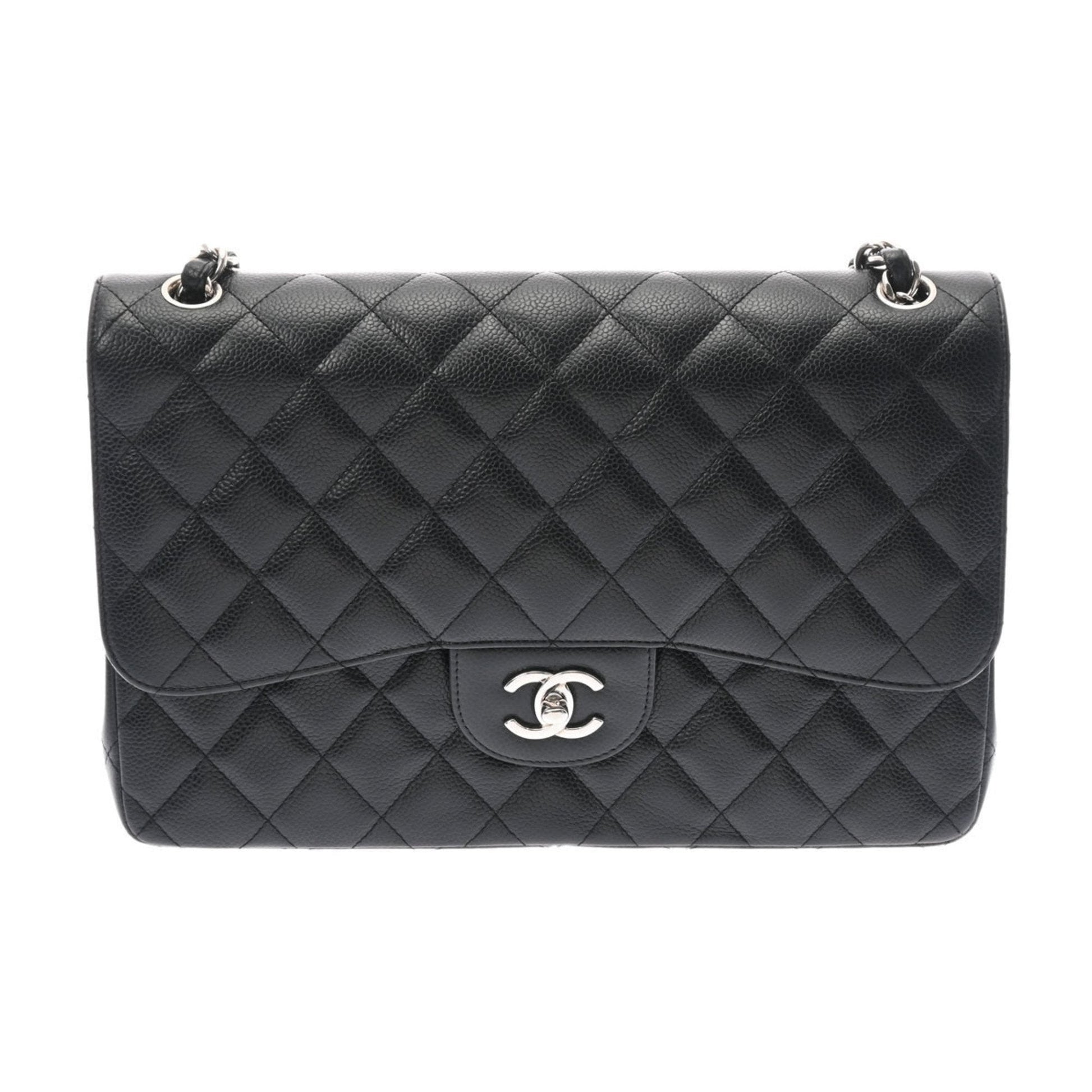 Chanel matelasse double flap 30 black ladies caviar skin shoulder Bag
