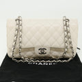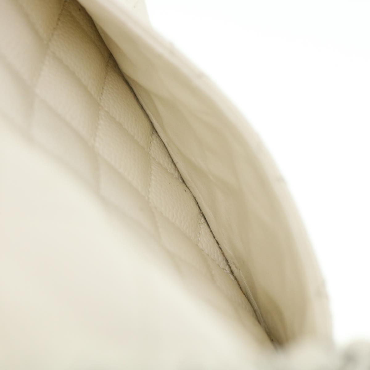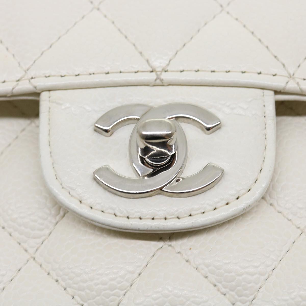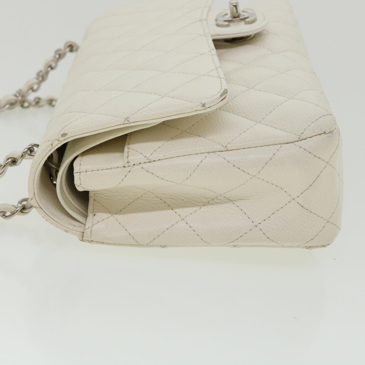 Chanel Matelasse Double Flap Chain Shoulder Bag Caviar Skin White CC Auth knn085