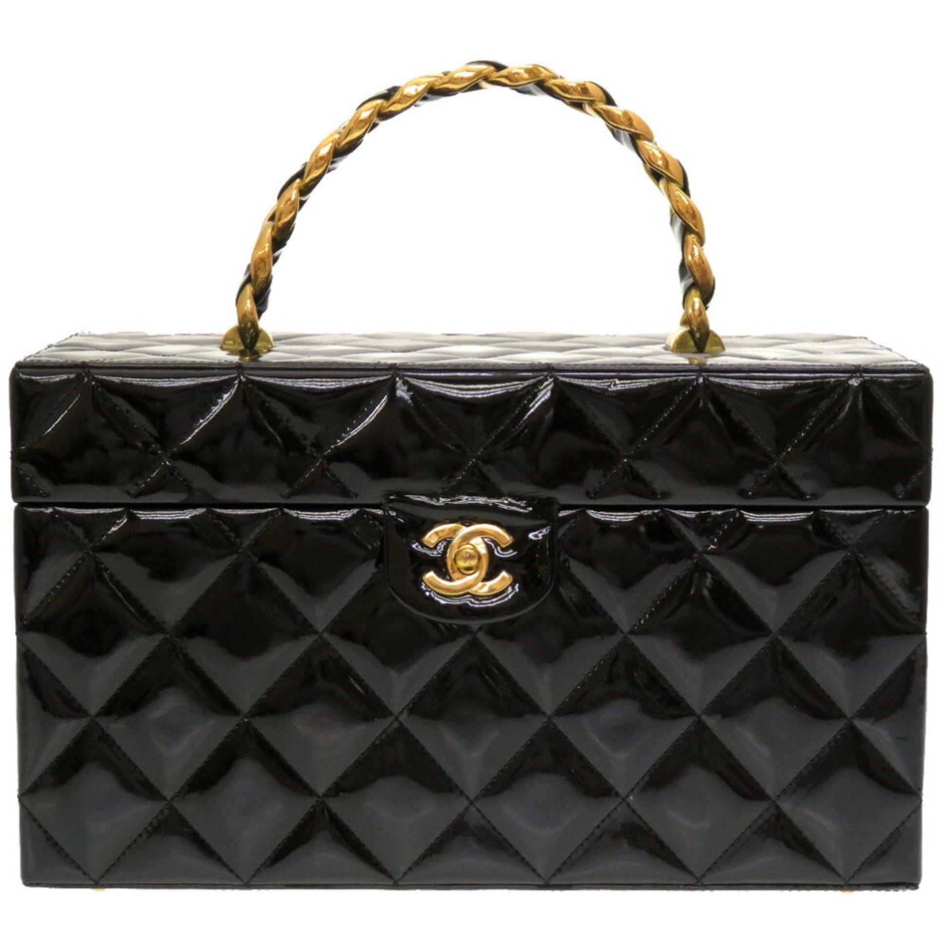 Chanel Matelasse Enamel Black Cocomark Turnlock Vanity Bag