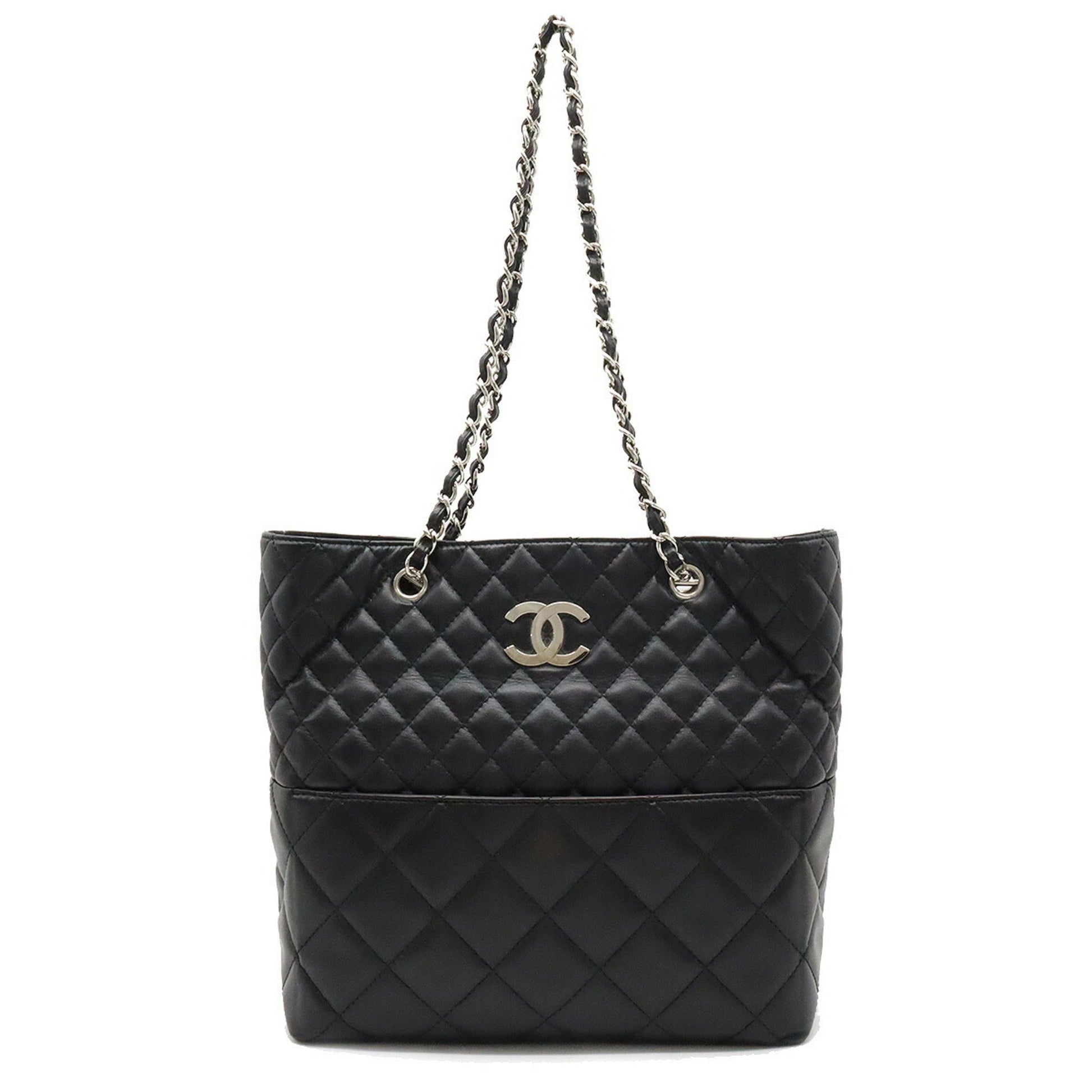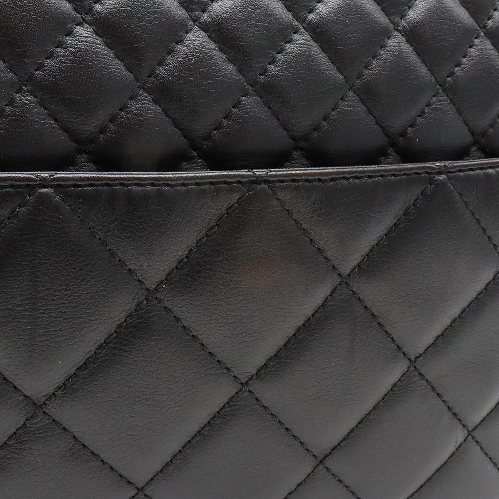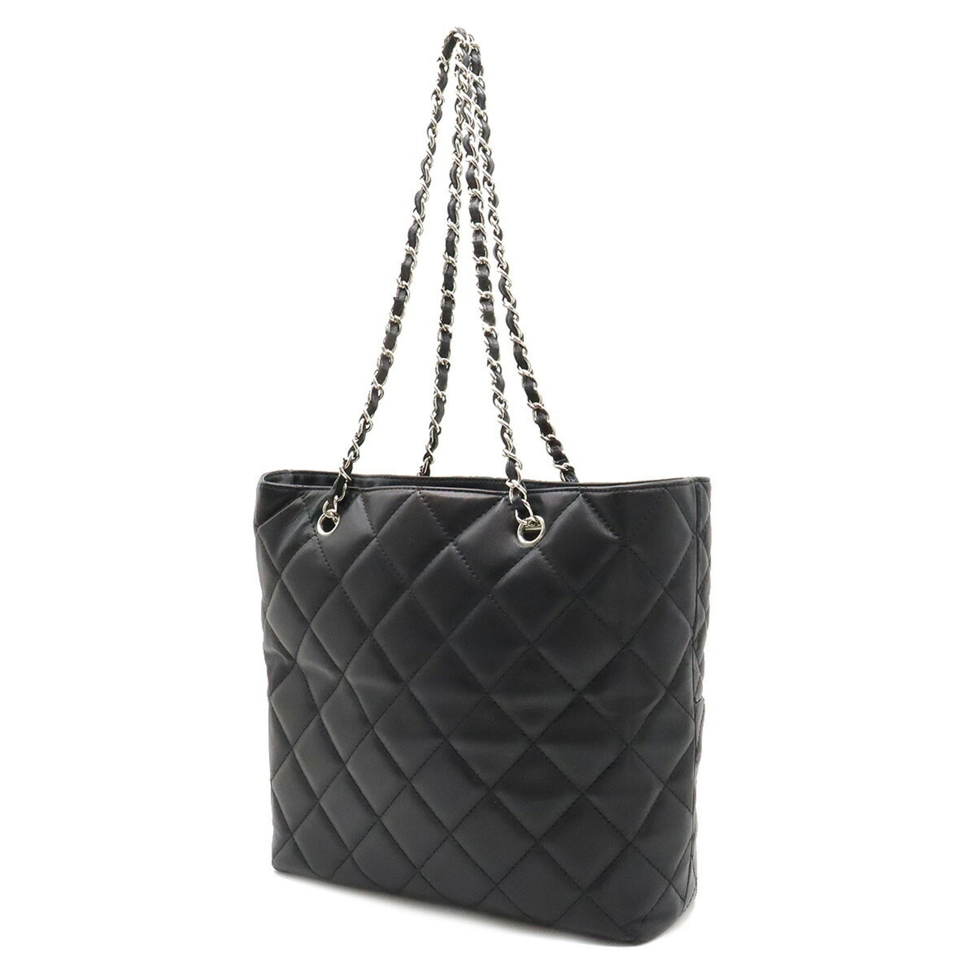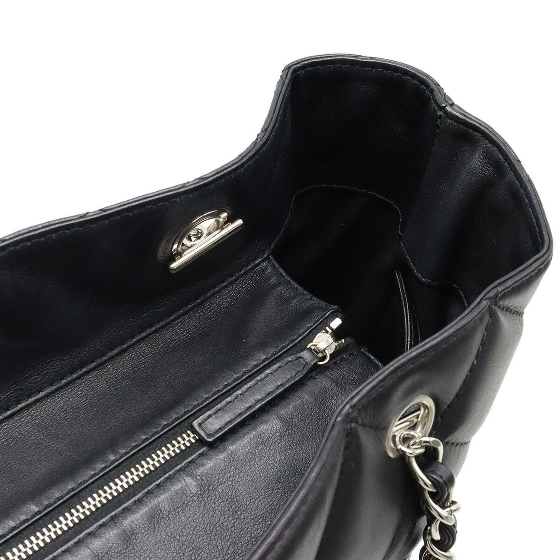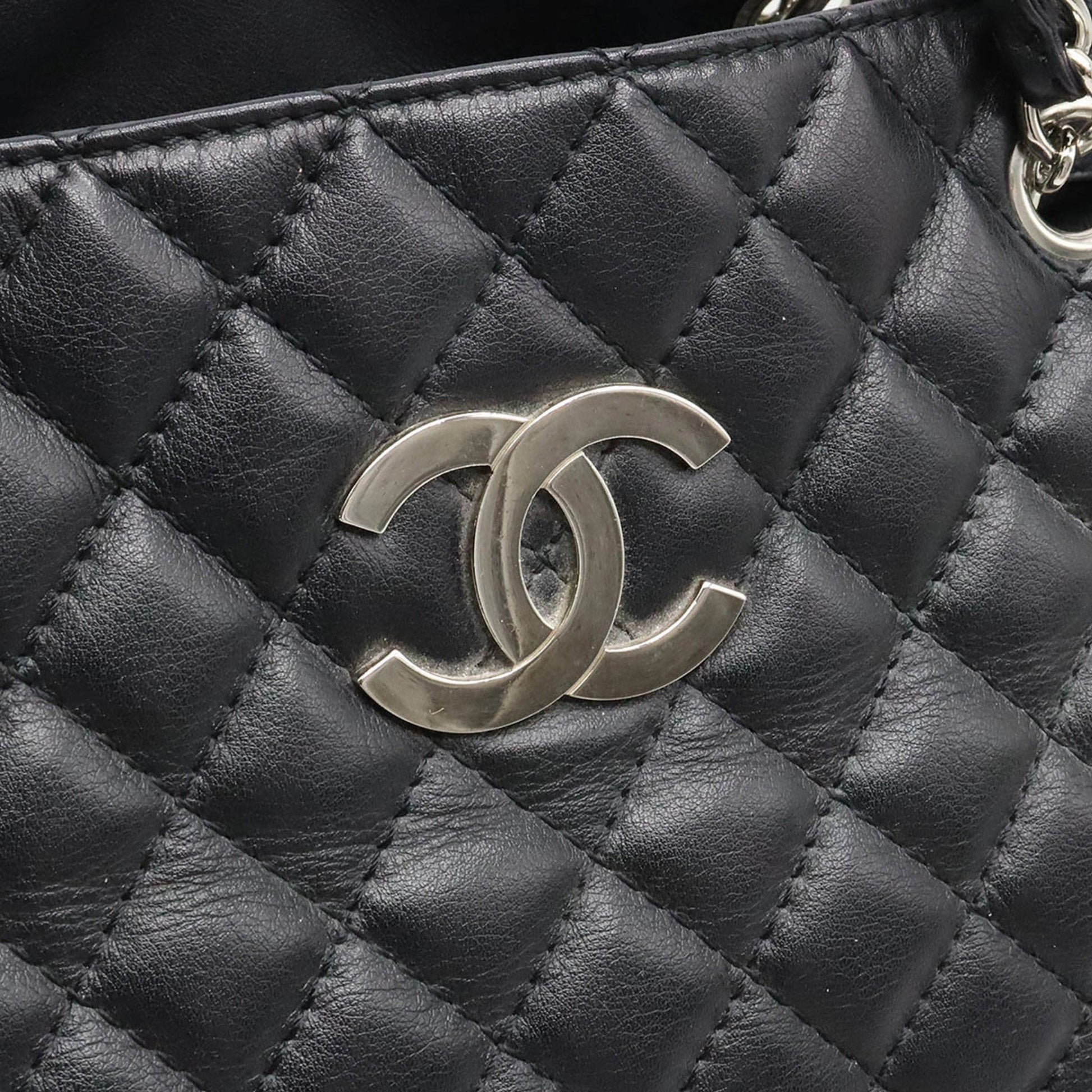 Chanel matelasse here mark chain Tote Bag shoulder leather black