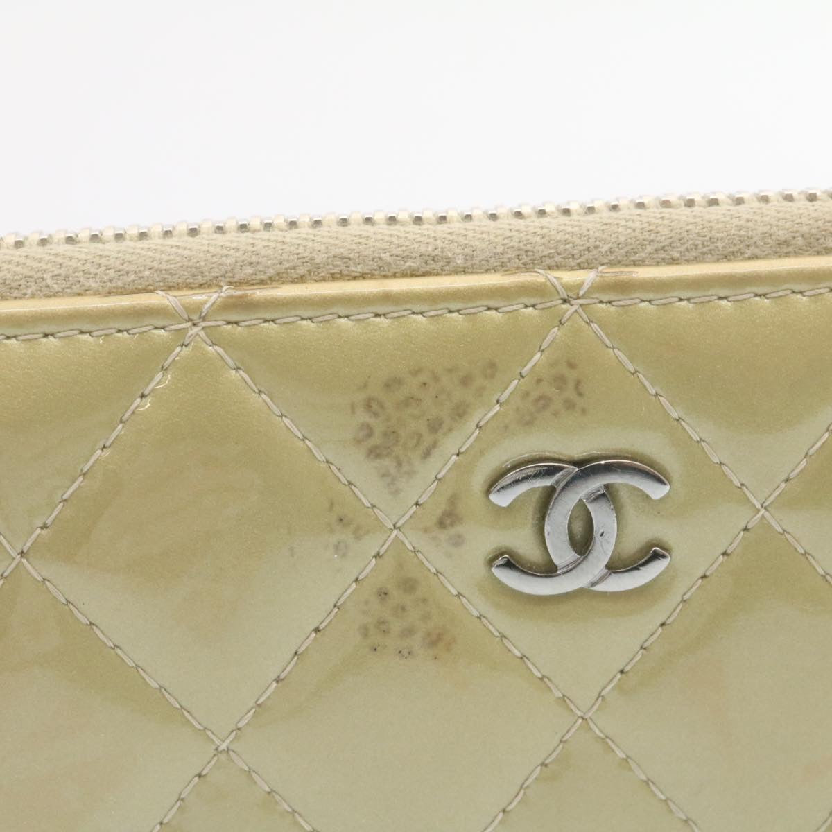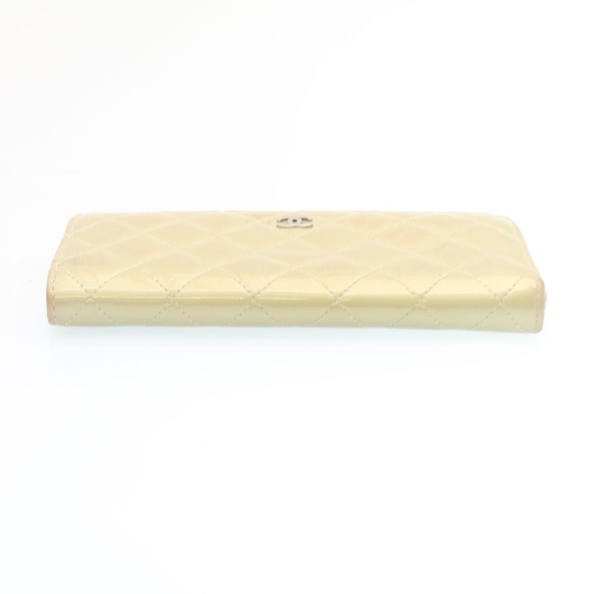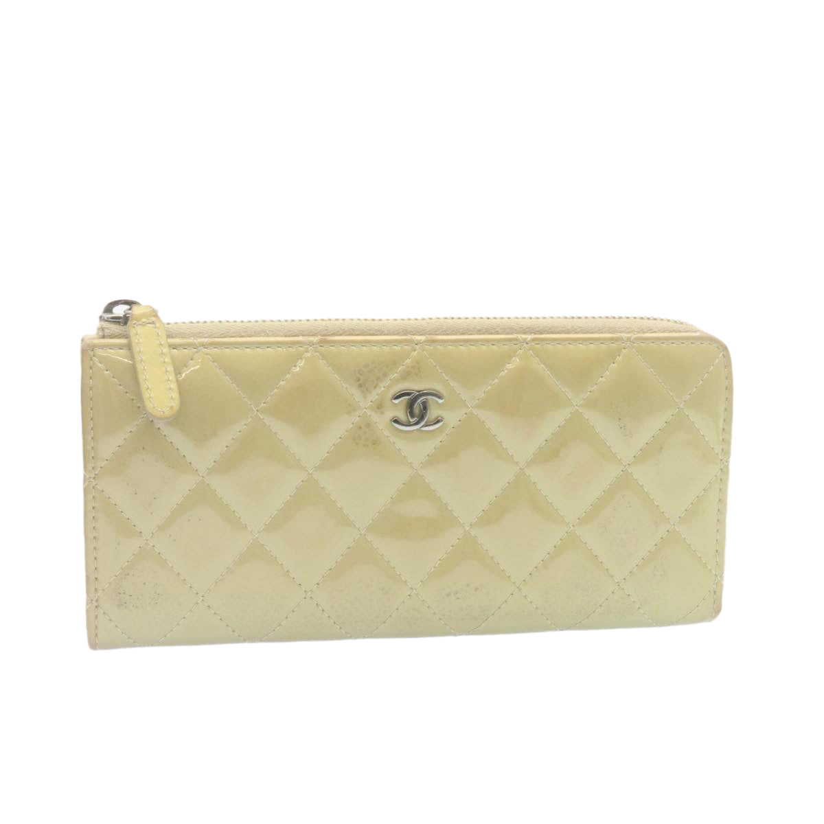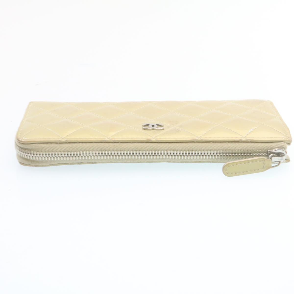 Chanel Matelasse Long Wallet Enamel Gray CC Auth 34534