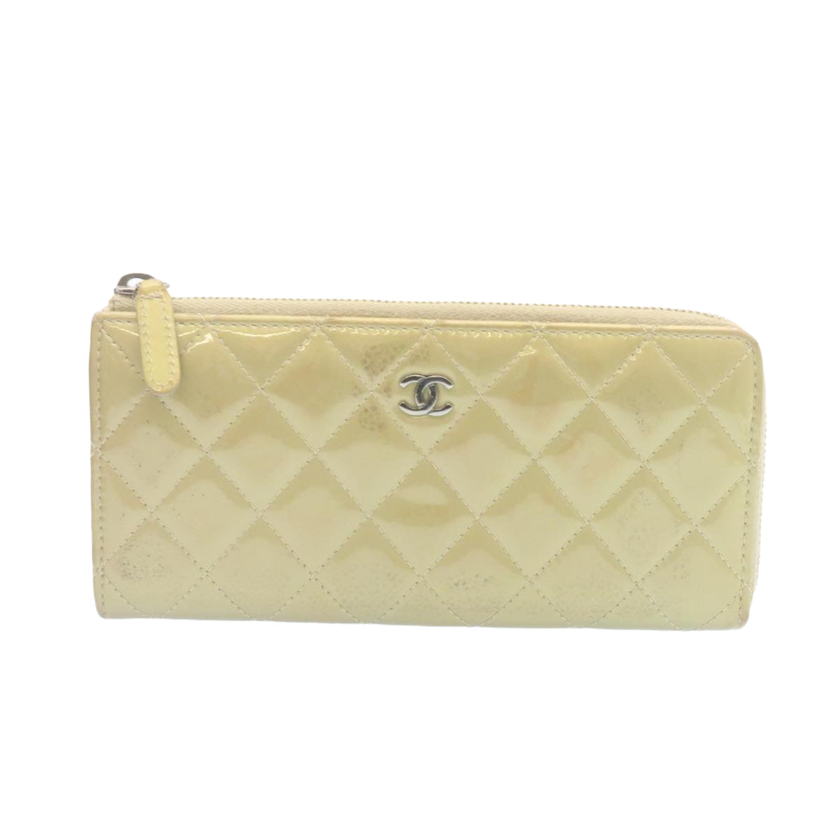 Chanel Matelasse Long Wallet Enamel Gray CC Auth 34534