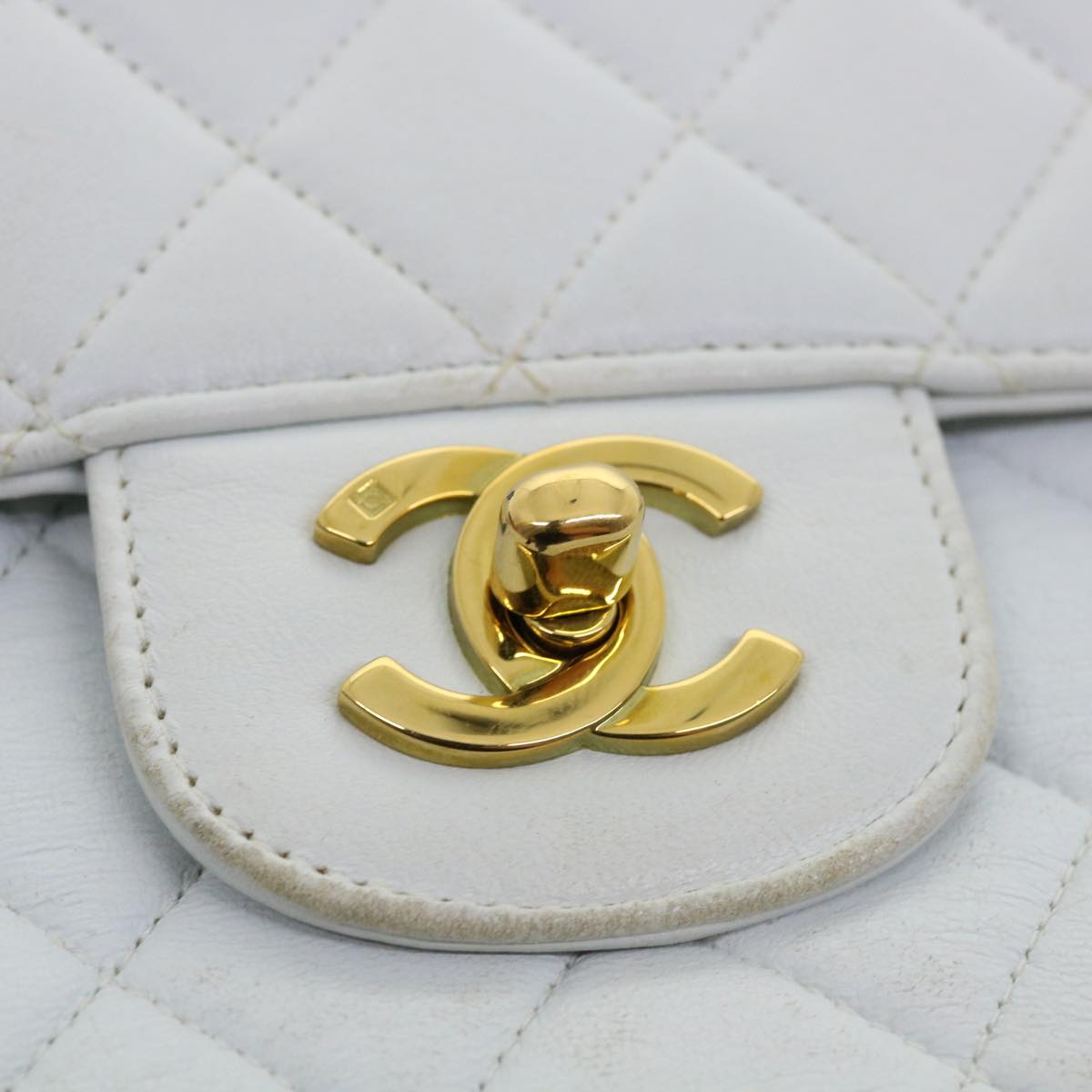 Chanel Matelasse Pair Shoulder Bag Lamb Skin White CC Auth 32416A