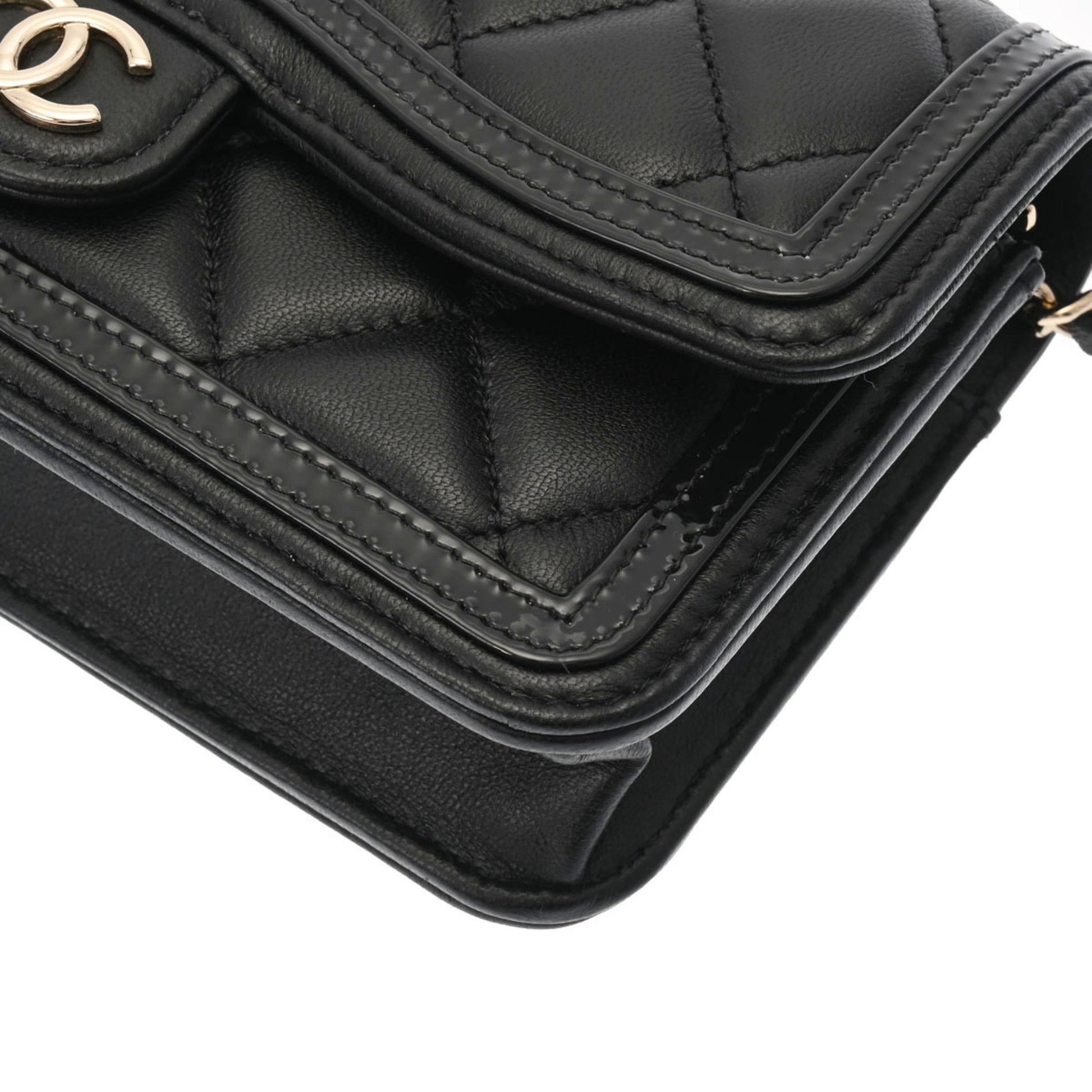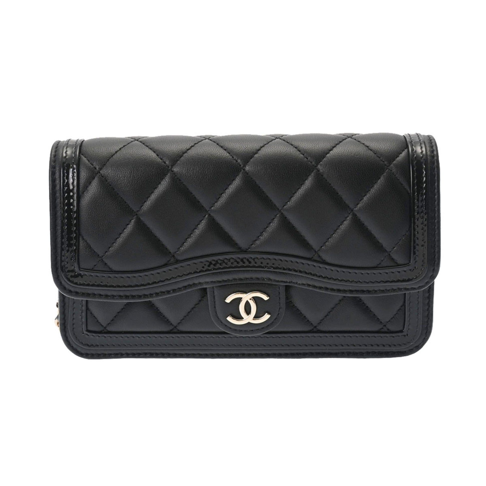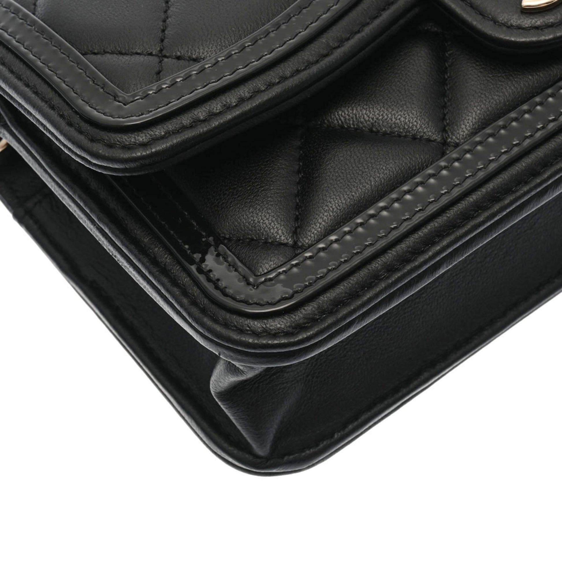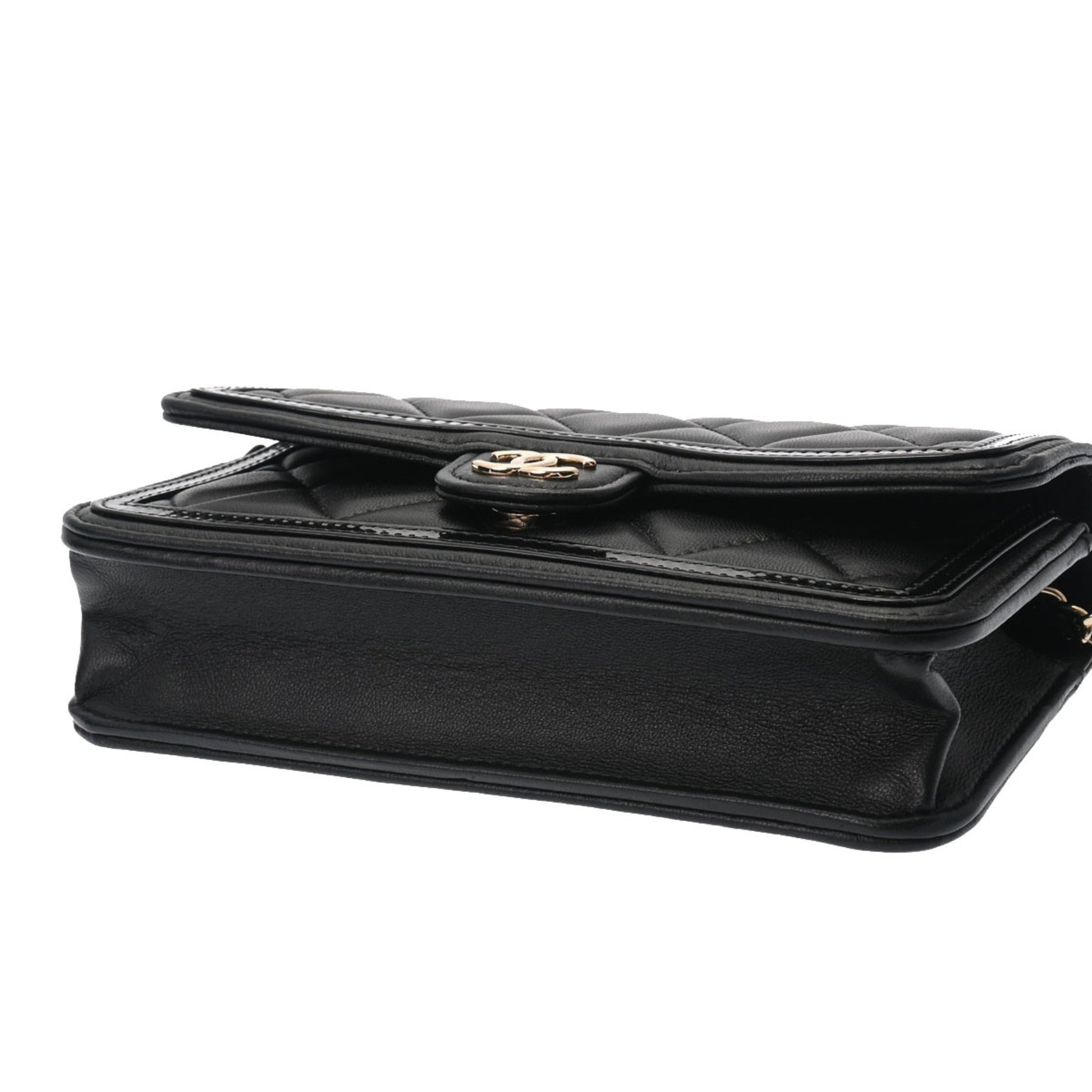 Chanel Matelasse Phone Case Black AP3559 Ladies Lambskin Enamel Shoulder Bag